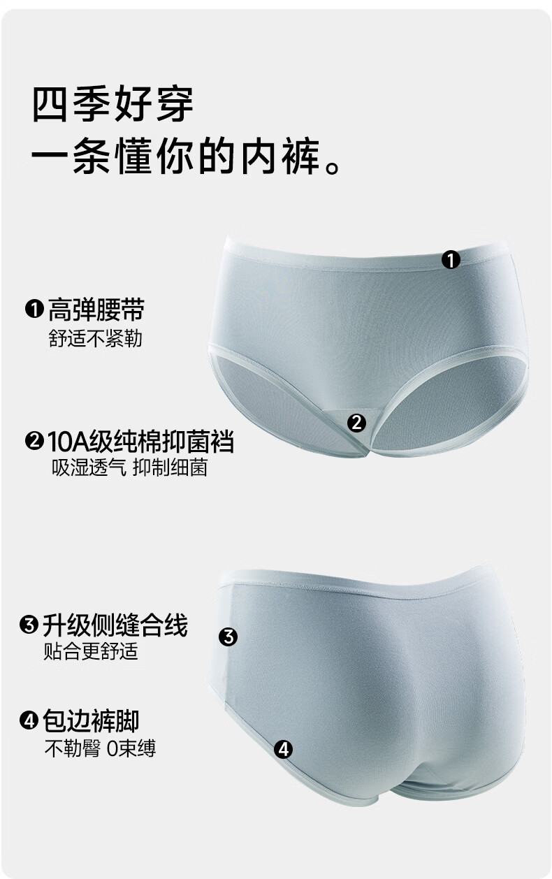 芬腾可安【10条装】女士纯棉内裤女夏季透气抗菌无痕女士纯色短裤头健康 组合1(10条装随机颜色) XL 170/95