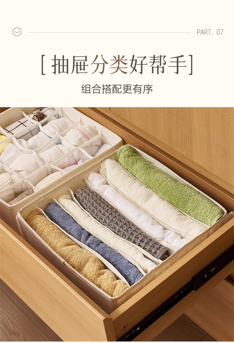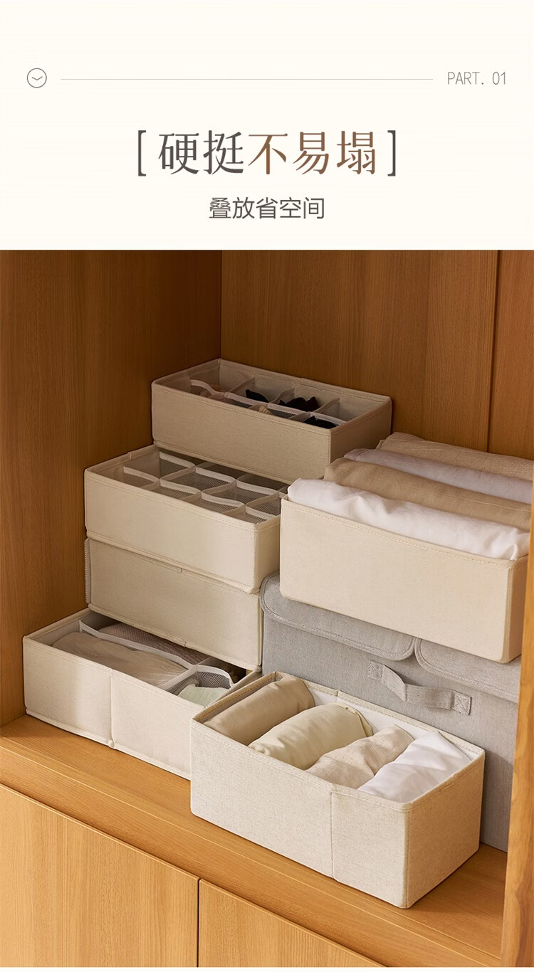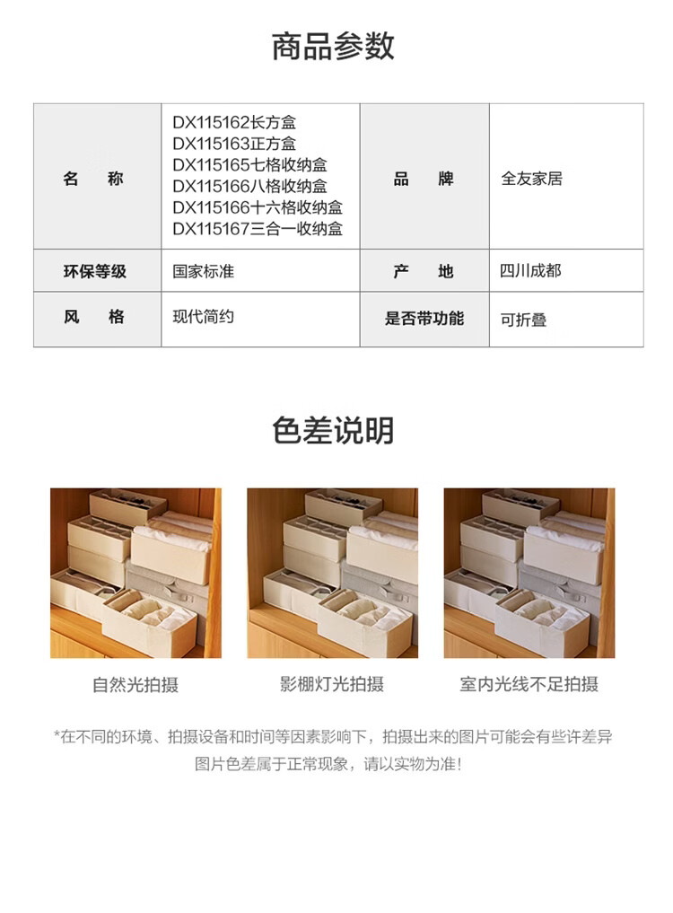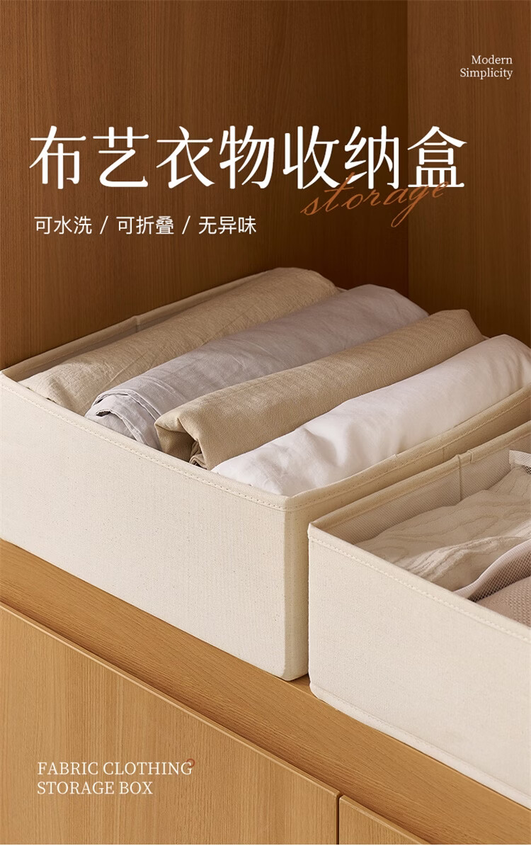 全友家居布艺收纳箱家用抽屉衣柜可折叠可水洗分隔储物整理箱防刮耐KD 【米白色 | 可水洗】长方盒