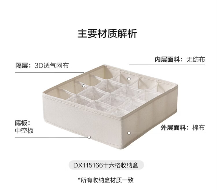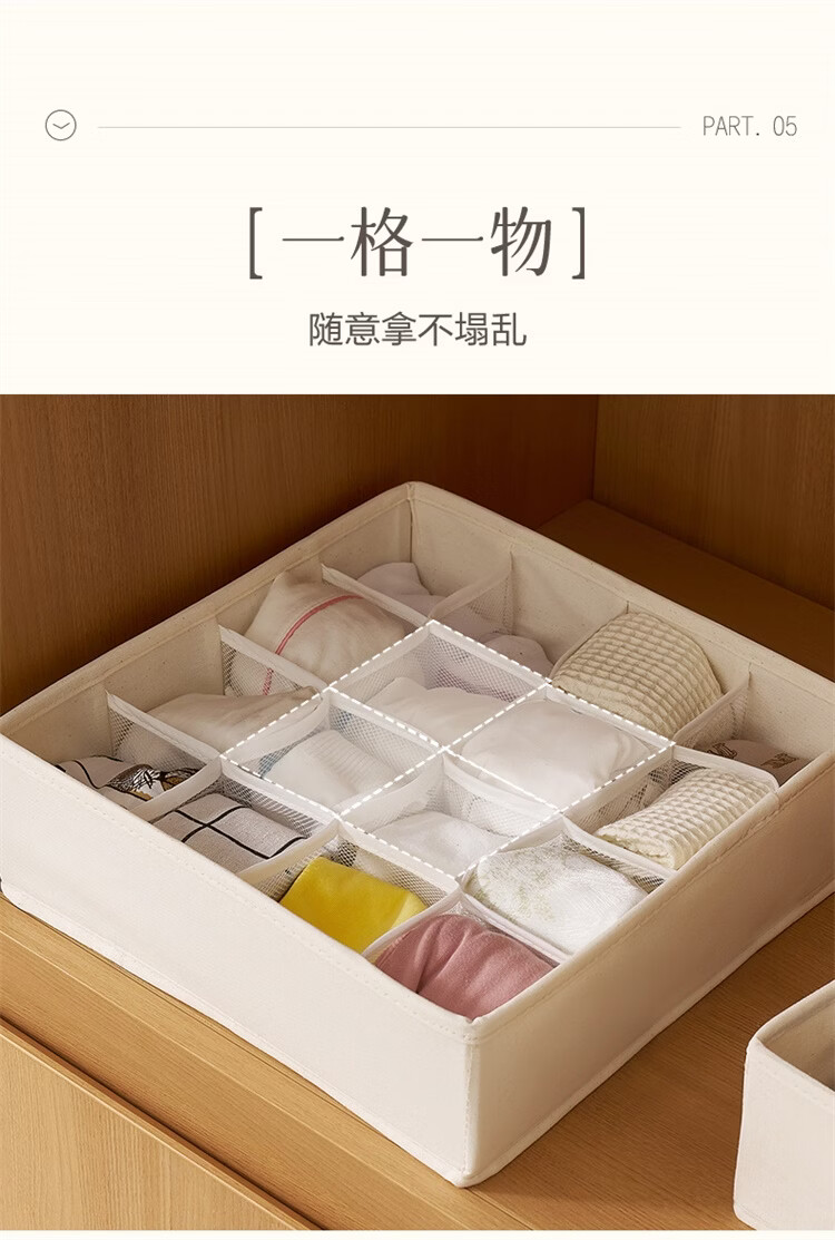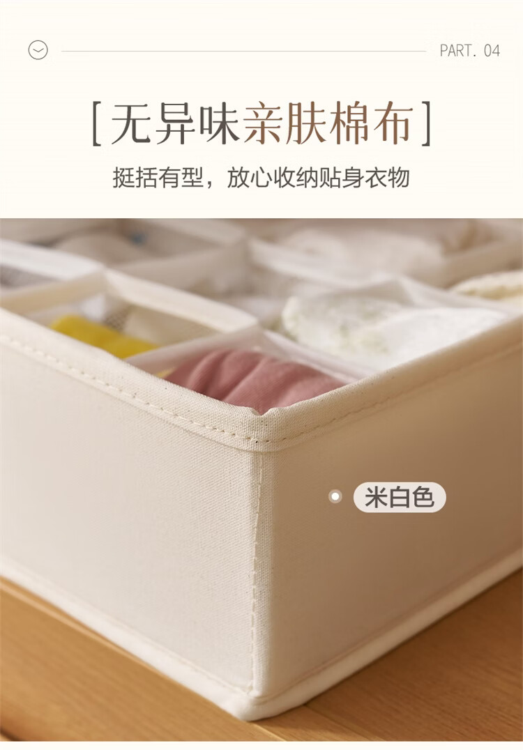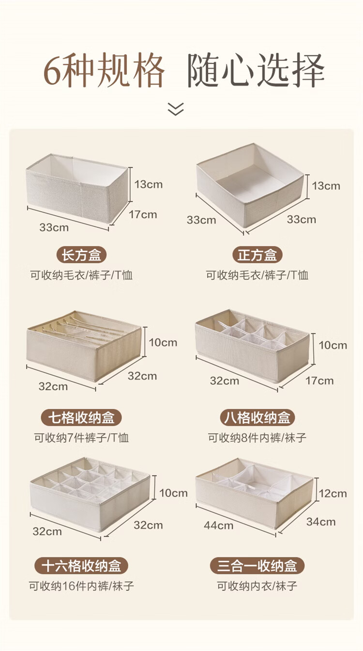 全友家居布艺收纳箱家用抽屉衣柜可折叠可水洗分隔储物整理箱防刮耐KD 【米白色 | 可水洗】长方盒