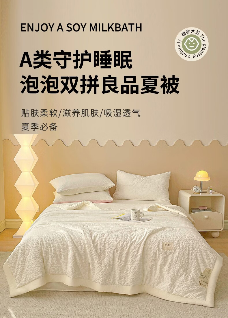 无印良品夏季被子1.5米x2米夏凉被空调被家用卧室床上四件套宿舍单人夏被 泡泡-奶绿【细腻亲肤 舒适睡眠】 150x200cm单夏被