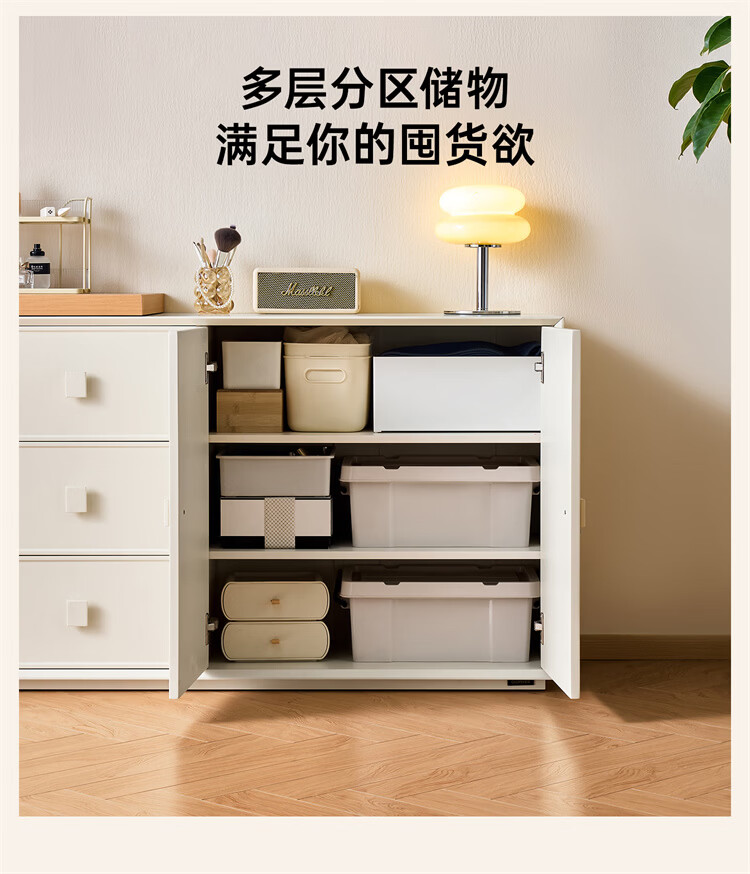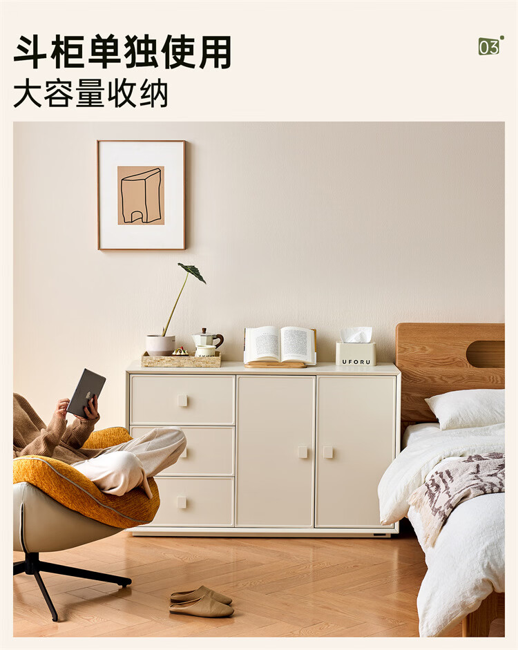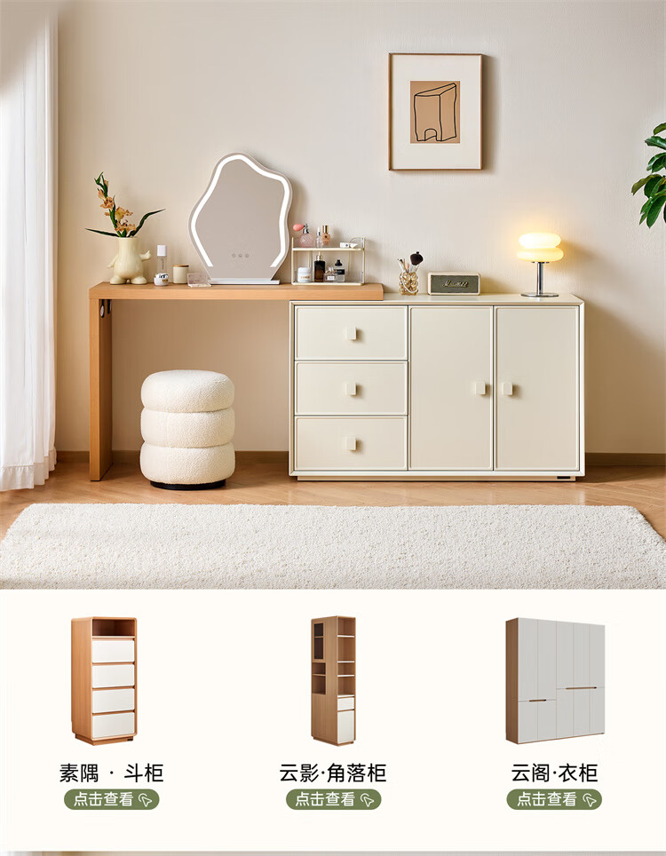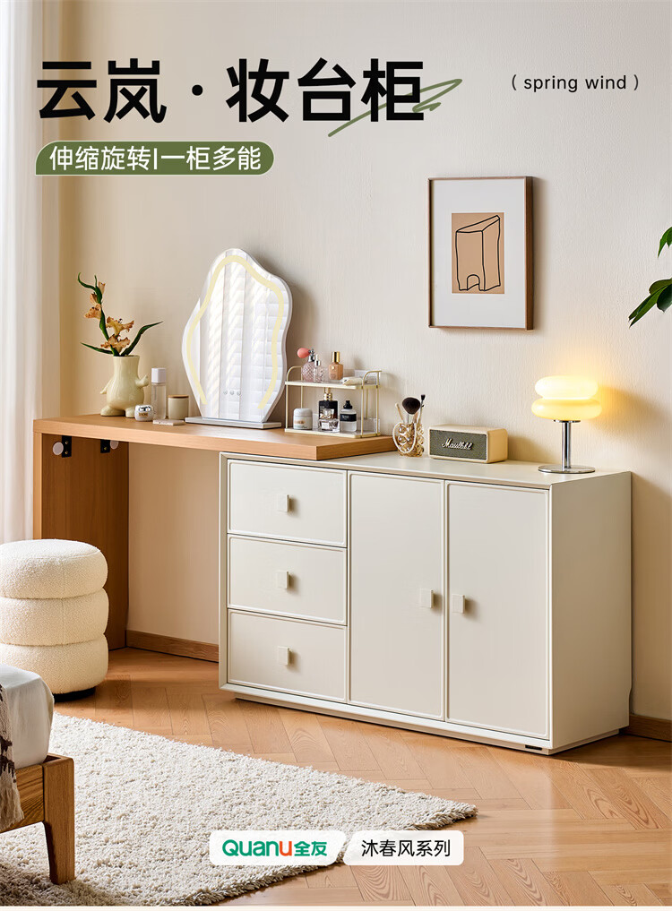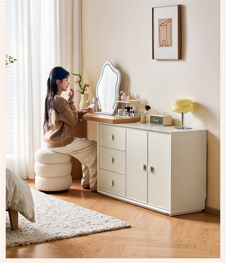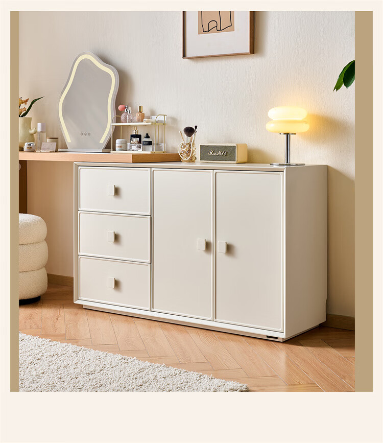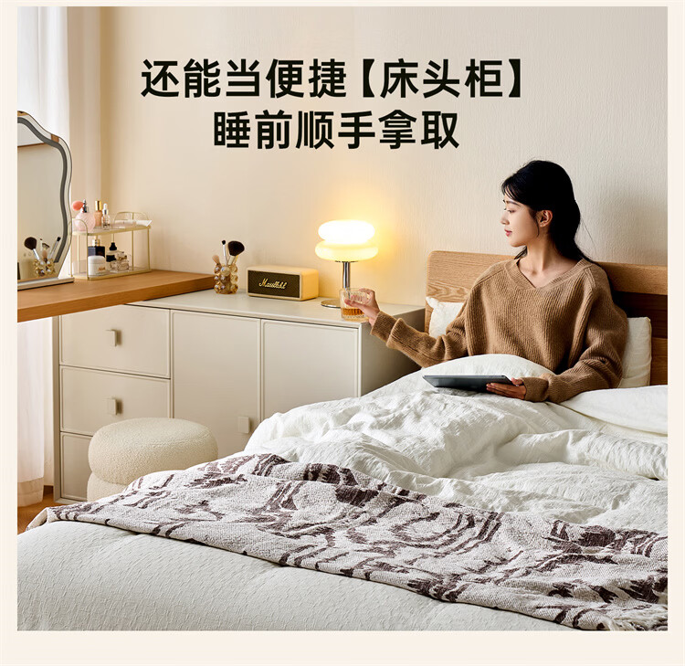 全友家居原木奶油风梳妆台家用可旋转搭台卧室收纳储物柜床头床尾柜 【奶油白】储物柜