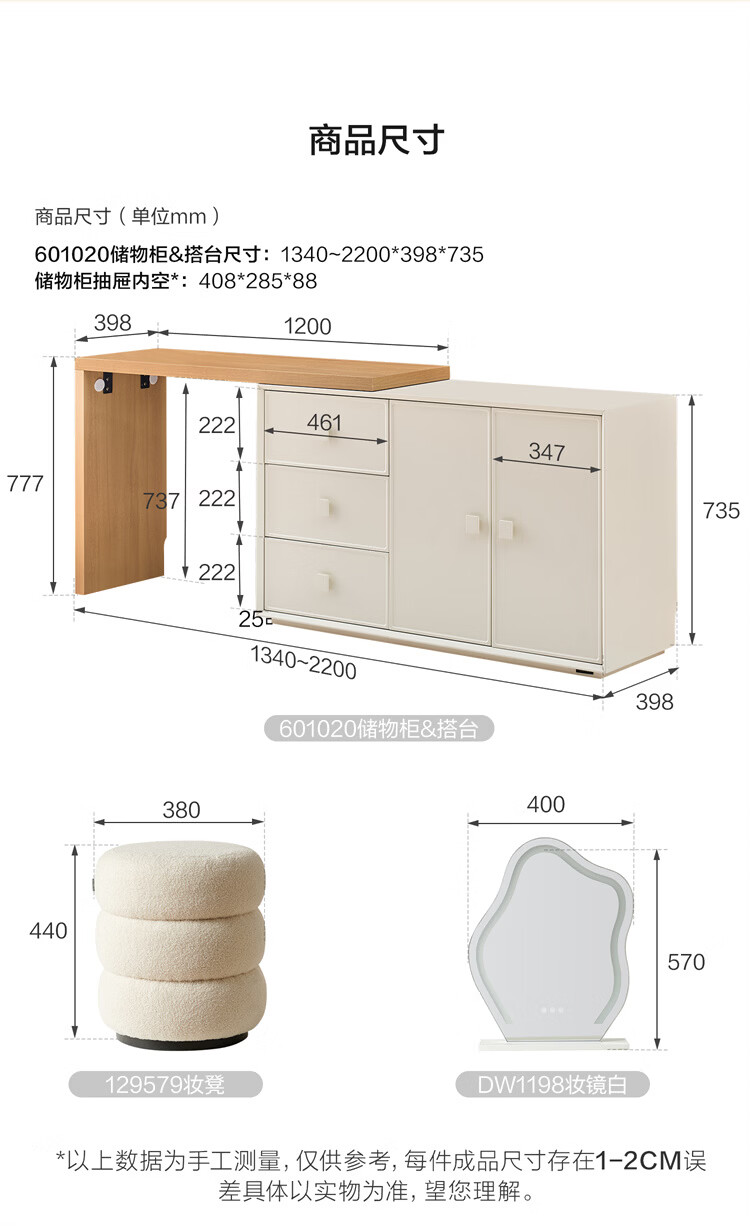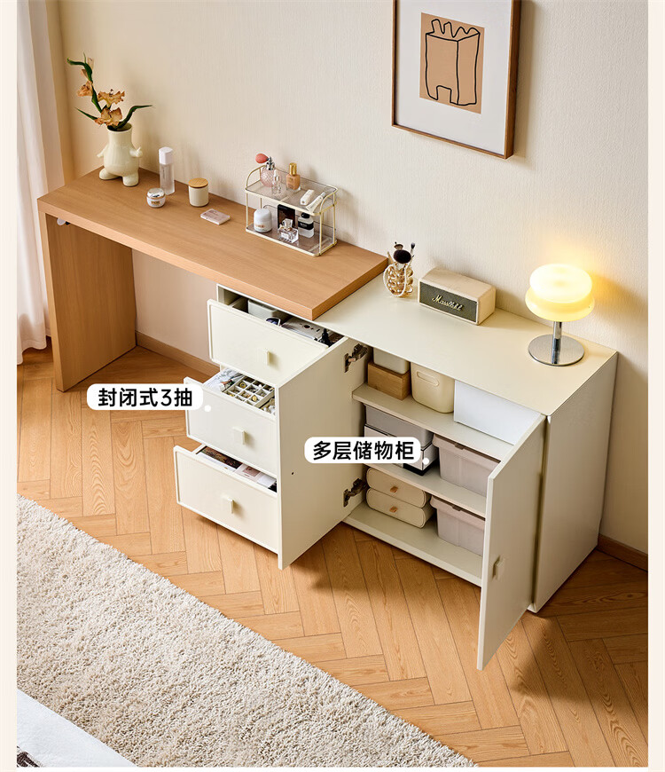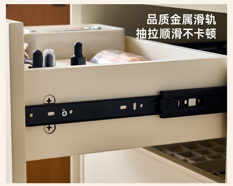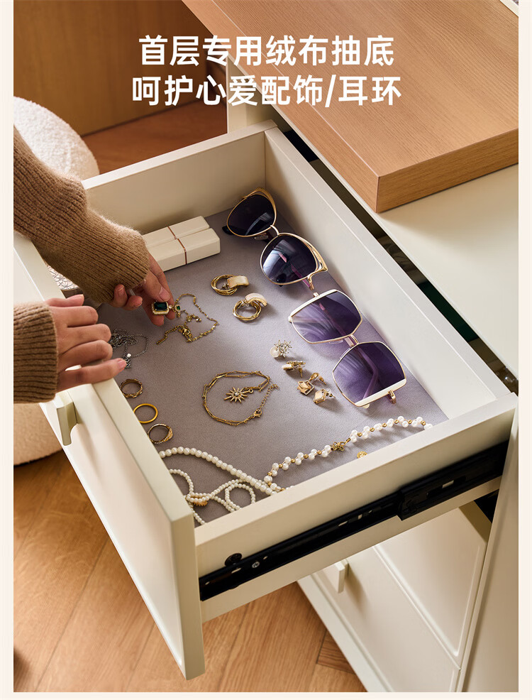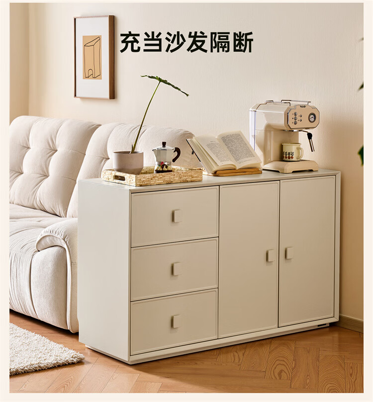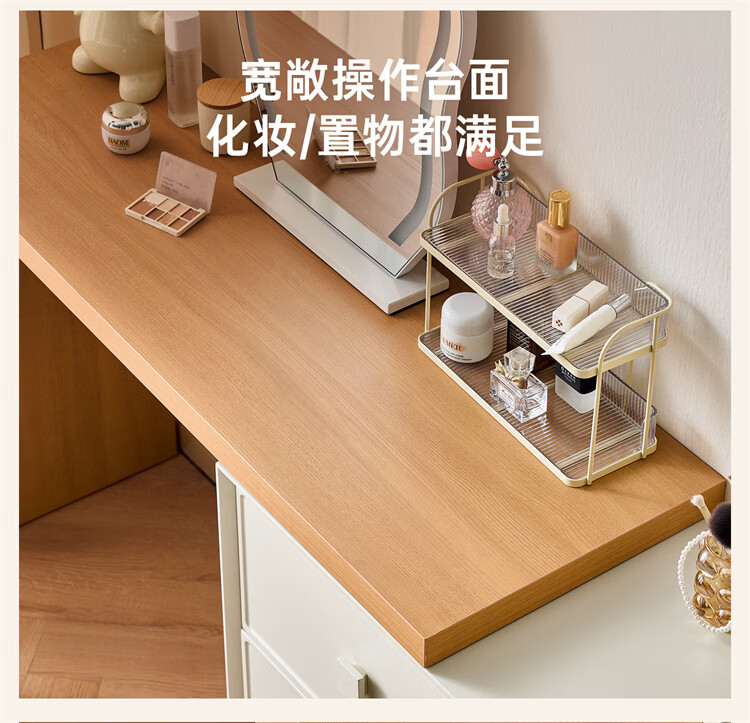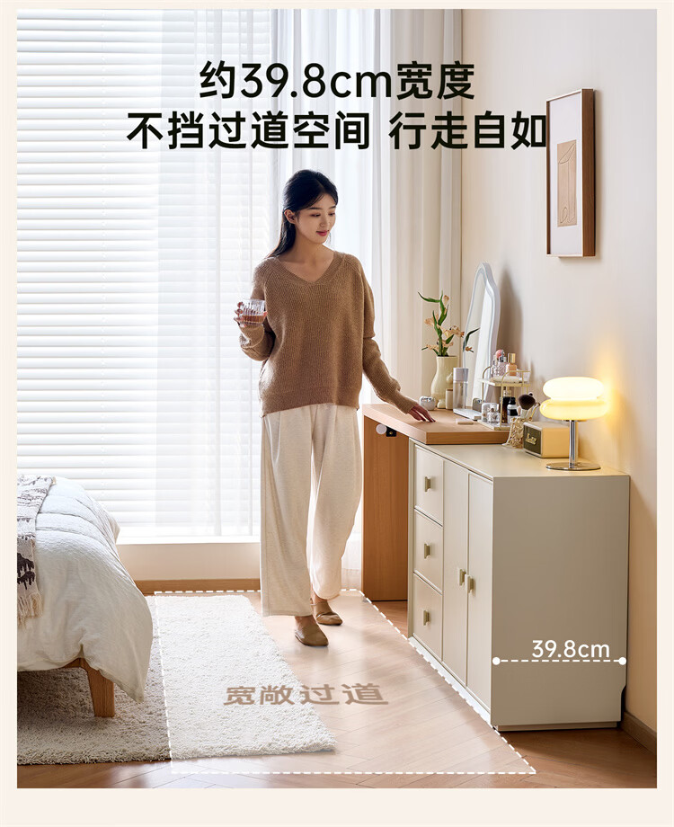 全友家居原木奶油风梳妆台家用可旋转搭台卧室收纳储物柜床头床尾柜 【奶油白】储物柜