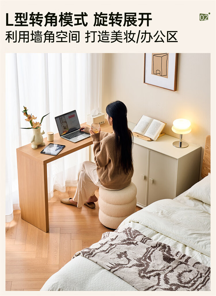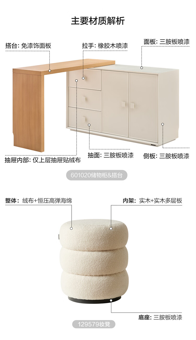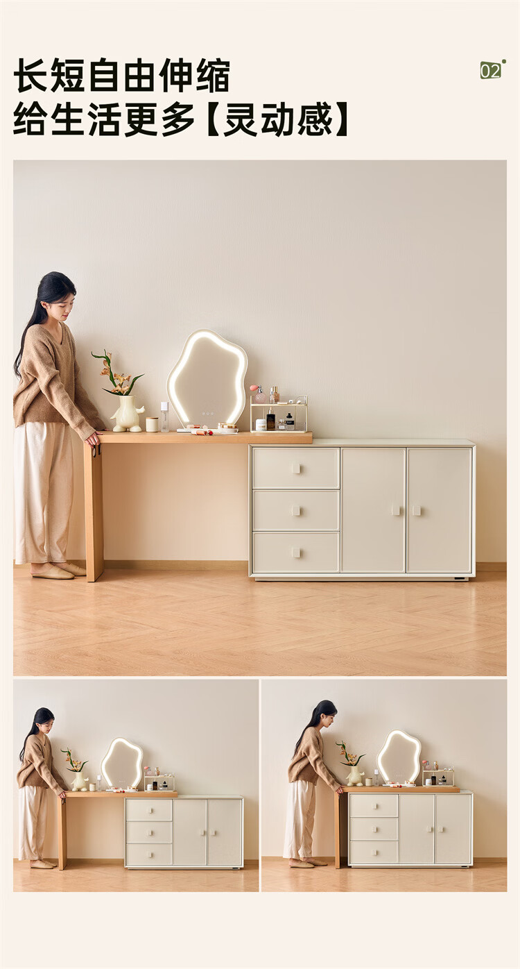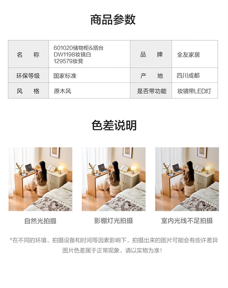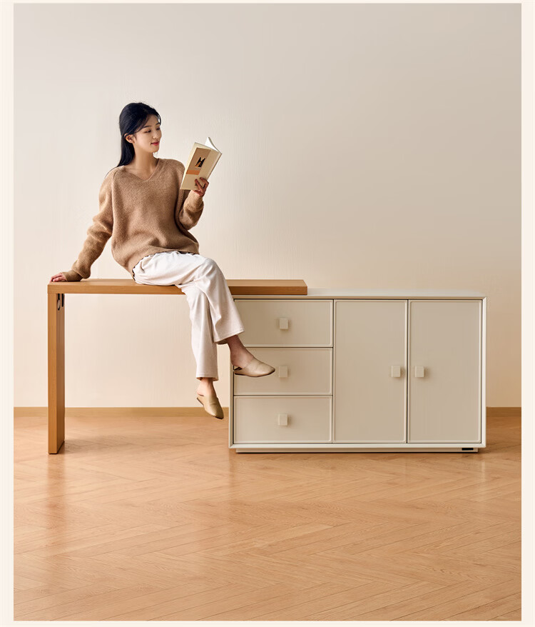 全友家居原木奶油风梳妆台家用可旋转搭台卧室收纳储物柜床头床尾柜 【奶油白】储物柜