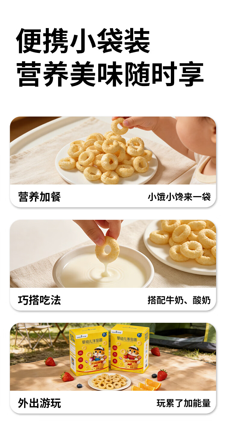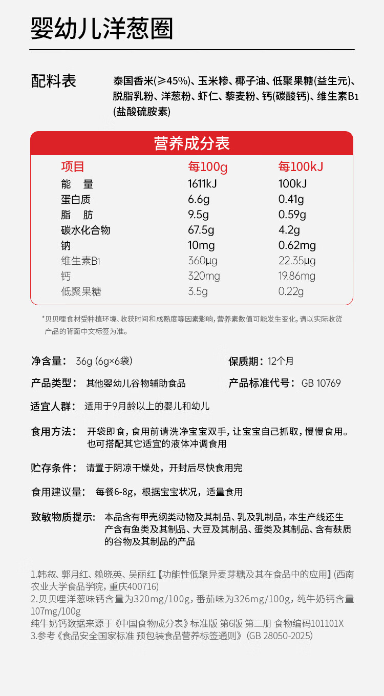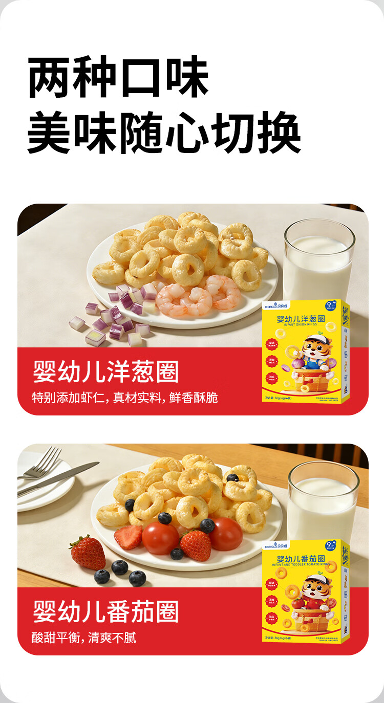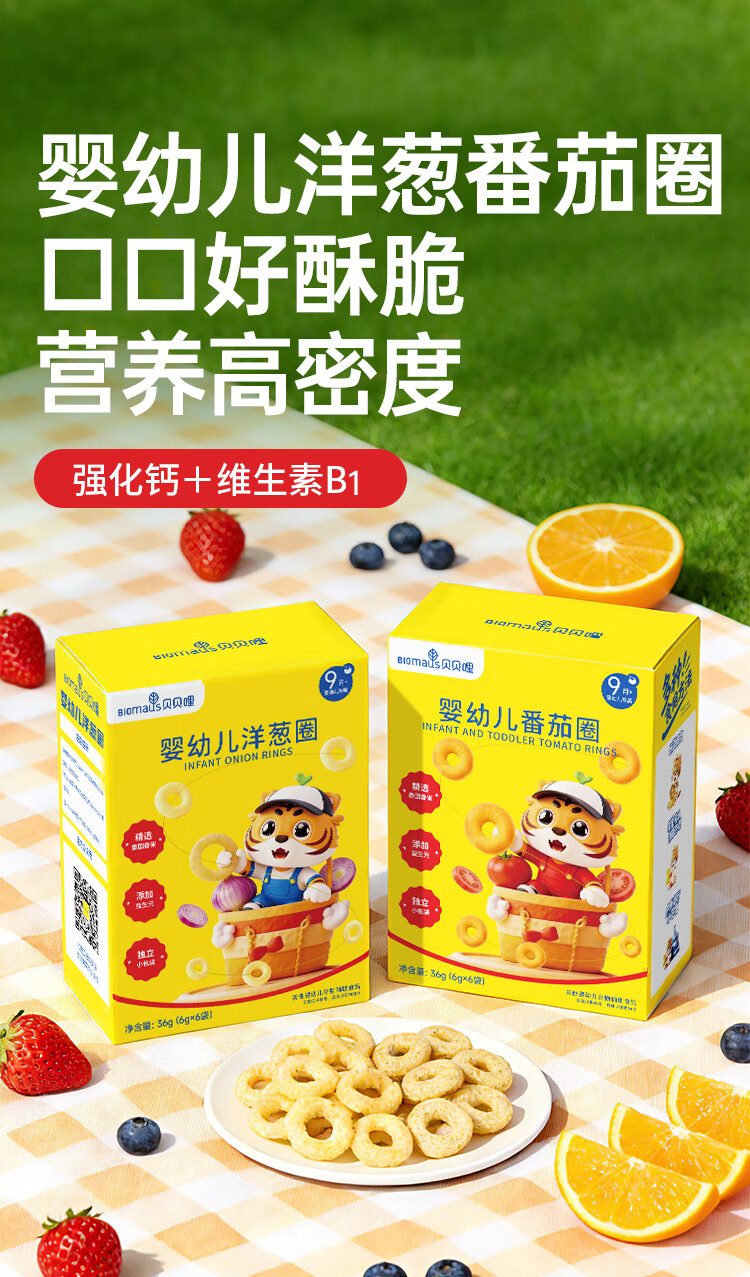 贝贝哩婴幼儿洋葱圈36g 婴儿零食宝宝泡芙圈添加益生元1-2岁儿童小零食