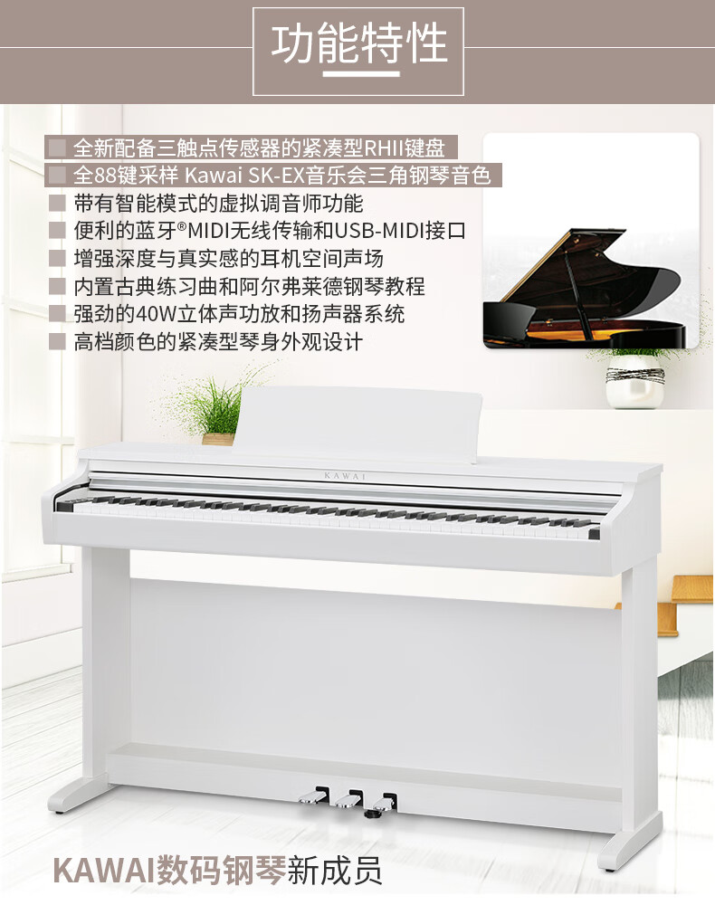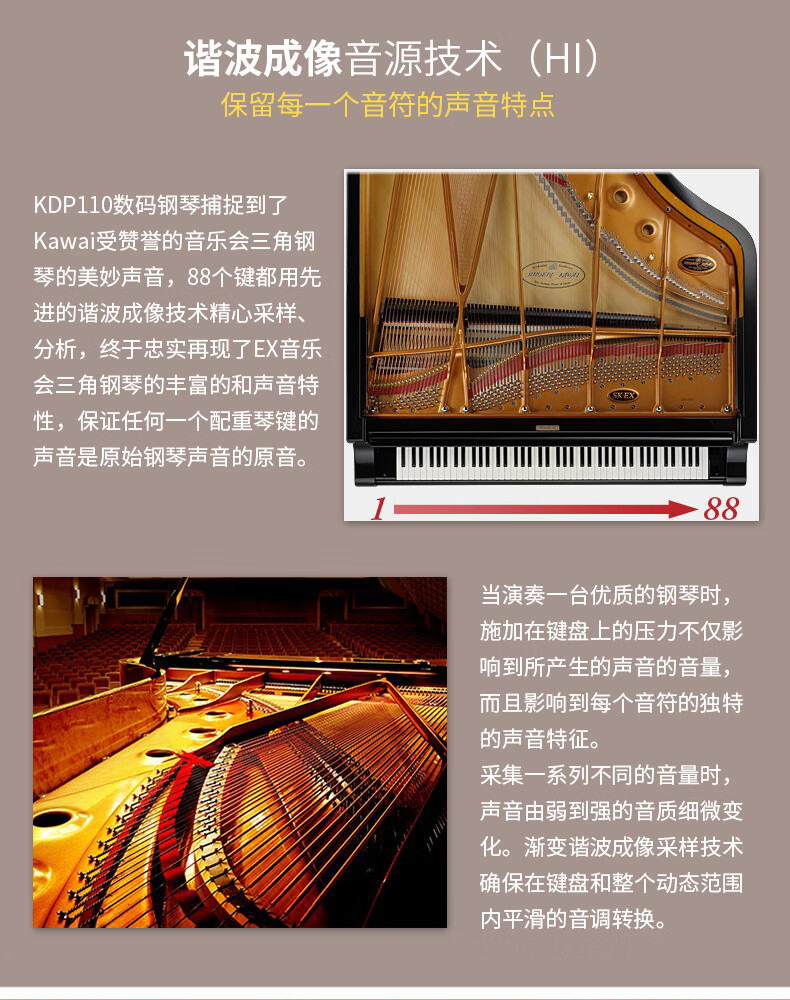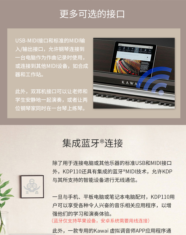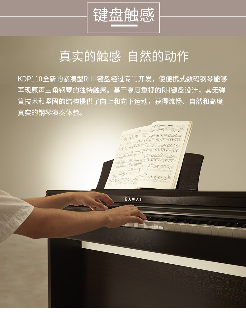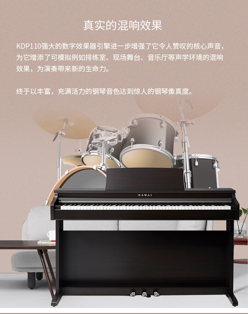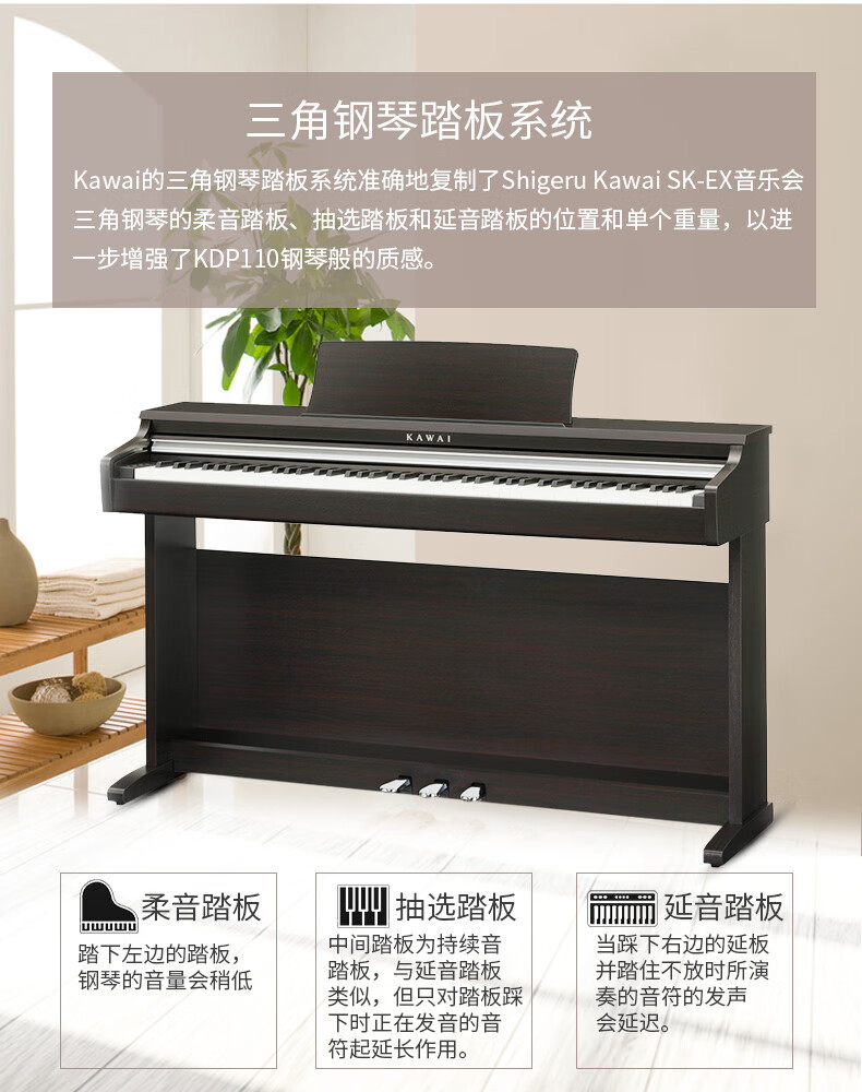 卡瓦依(KAWAI)电钢琴KDP110GR 88键重锤 电子数码钢琴成人儿童初学卡哇伊家用