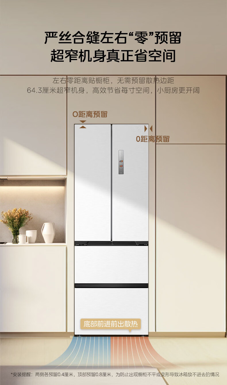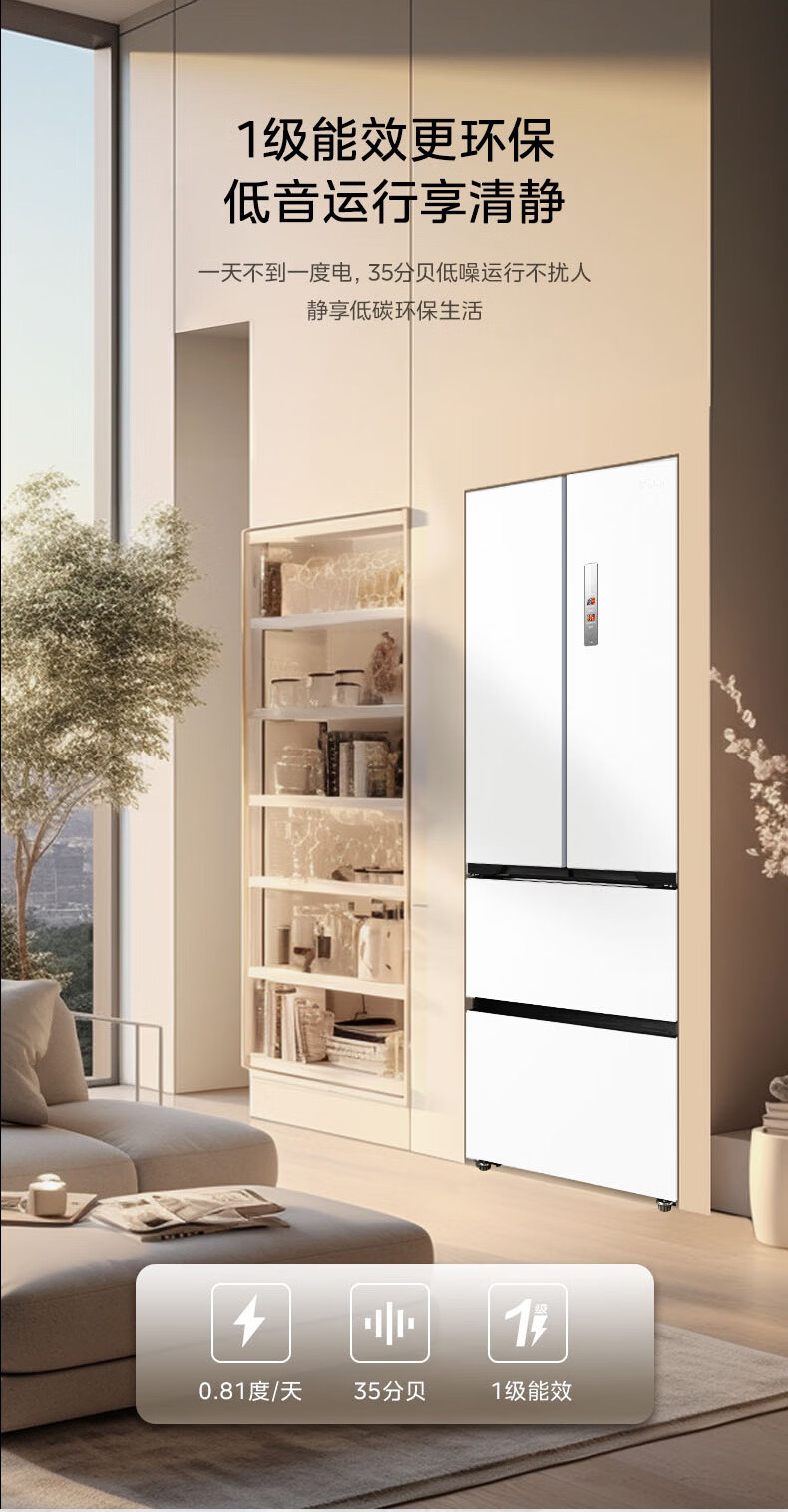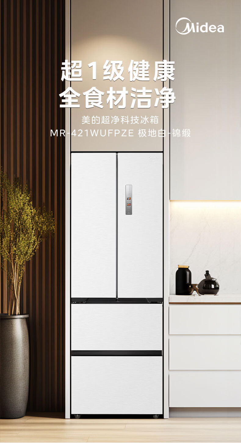 美的(Midea)400L法式多门冰箱超薄零嵌入式小户型除菌净味一级能效风冷无霜以旧换新白色MR-421WUFPZE国家补贴