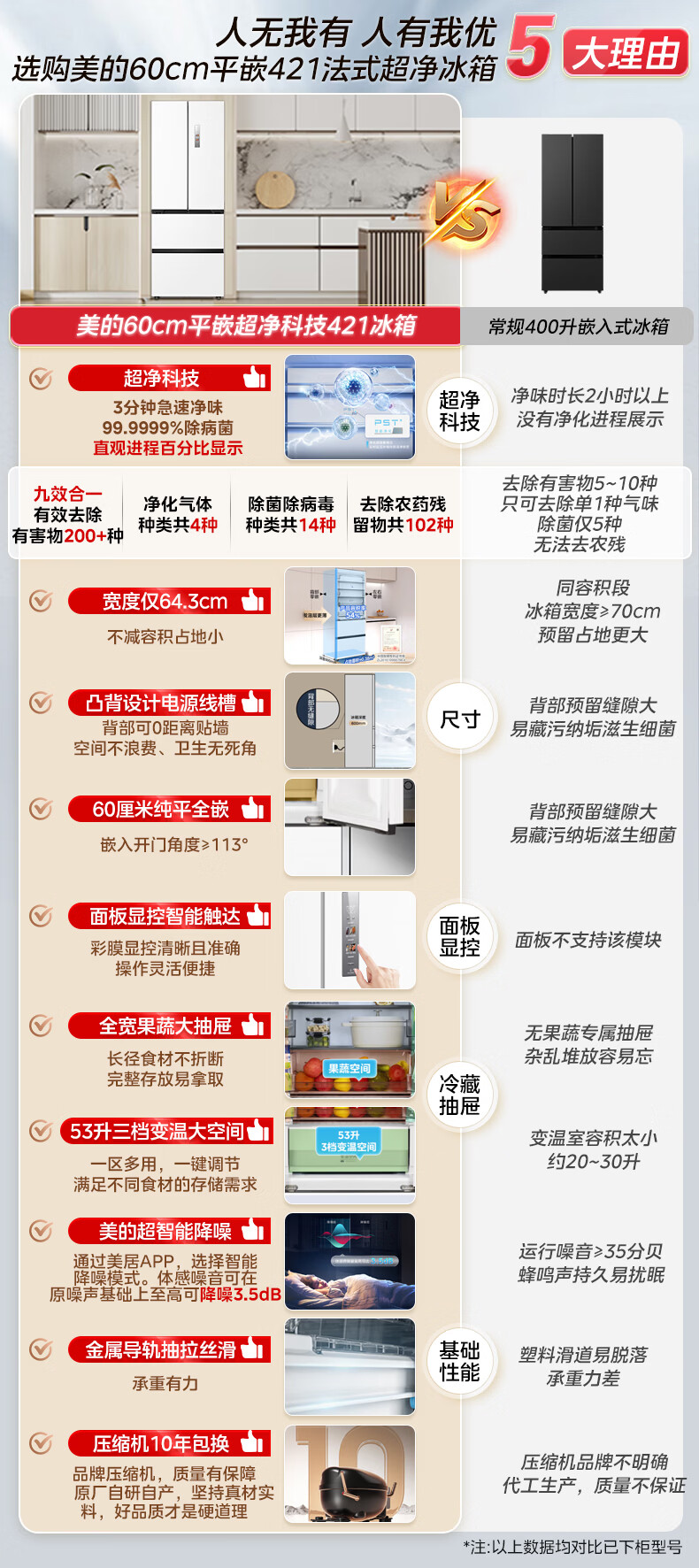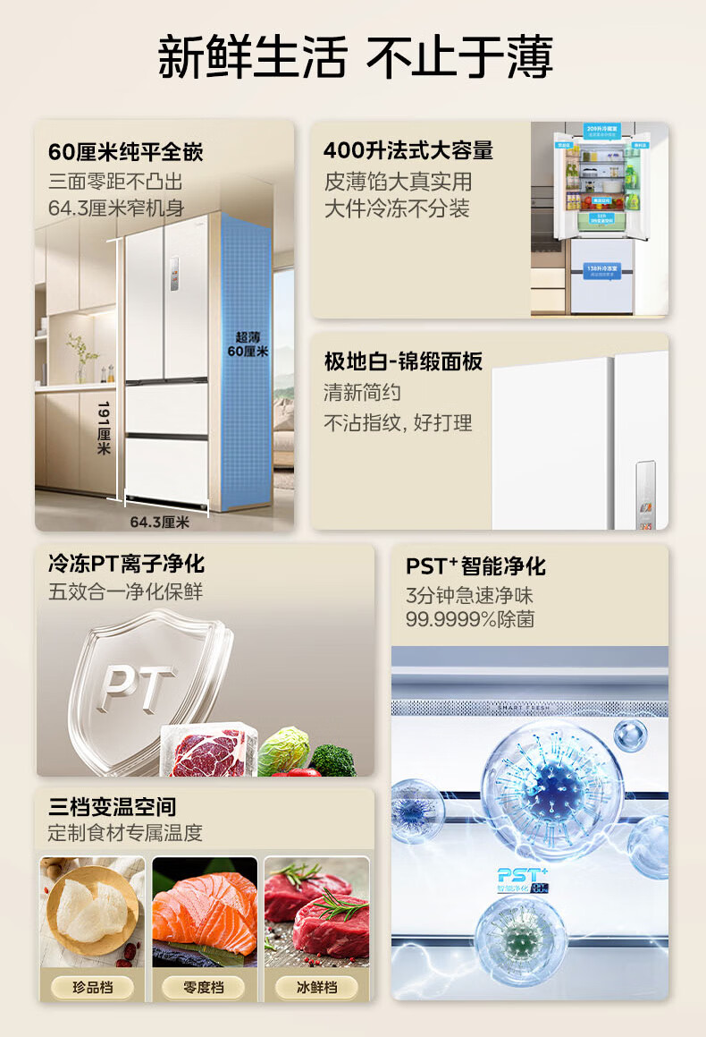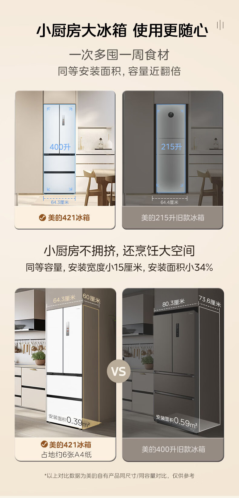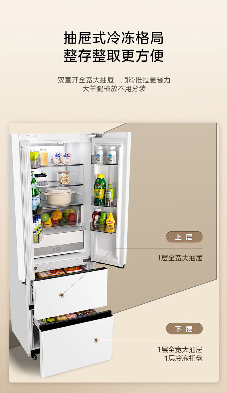 美的(Midea)400L法式多门冰箱超薄零嵌入式小户型除菌净味一级能效风冷无霜以旧换新白色MR-421WUFPZE国家补贴