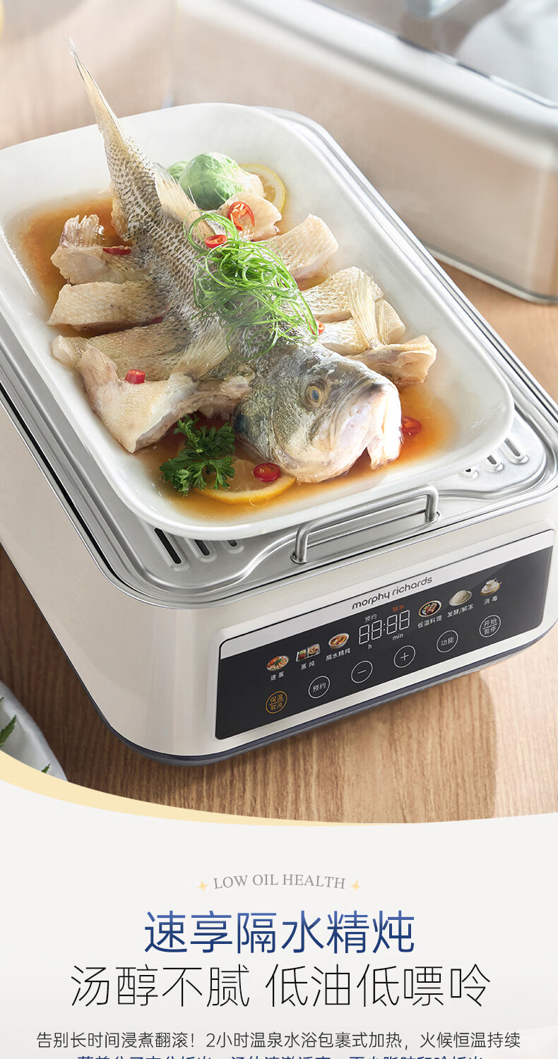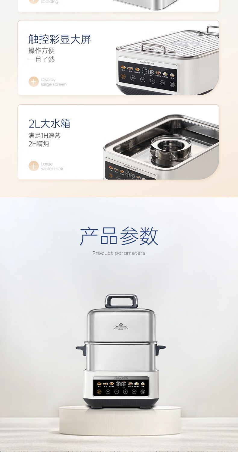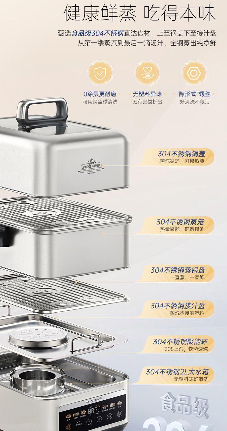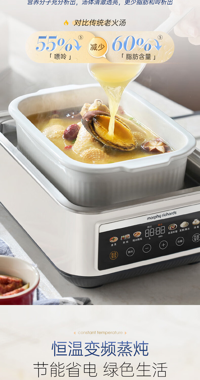 摩飞电器(Morphyrichards)电蒸锅 0涂层全不锈钢家用3-4人炖蒸一体蒸炖锅速蒸锅多功能锅 大容量隔水炖盅蒸汽锅电炖锅MR1188
