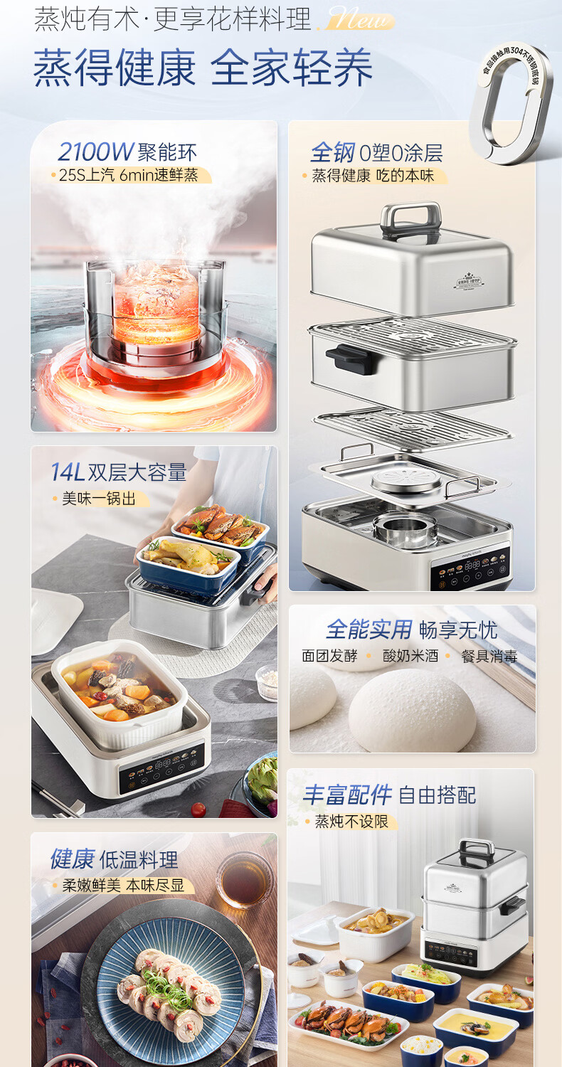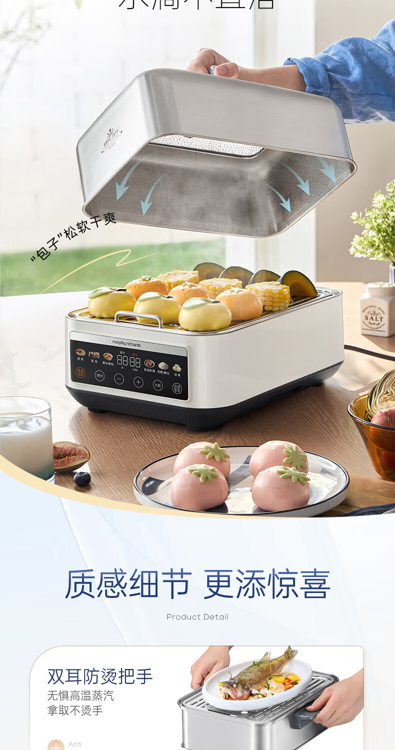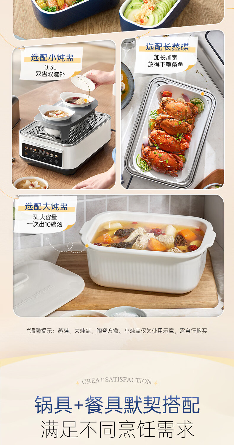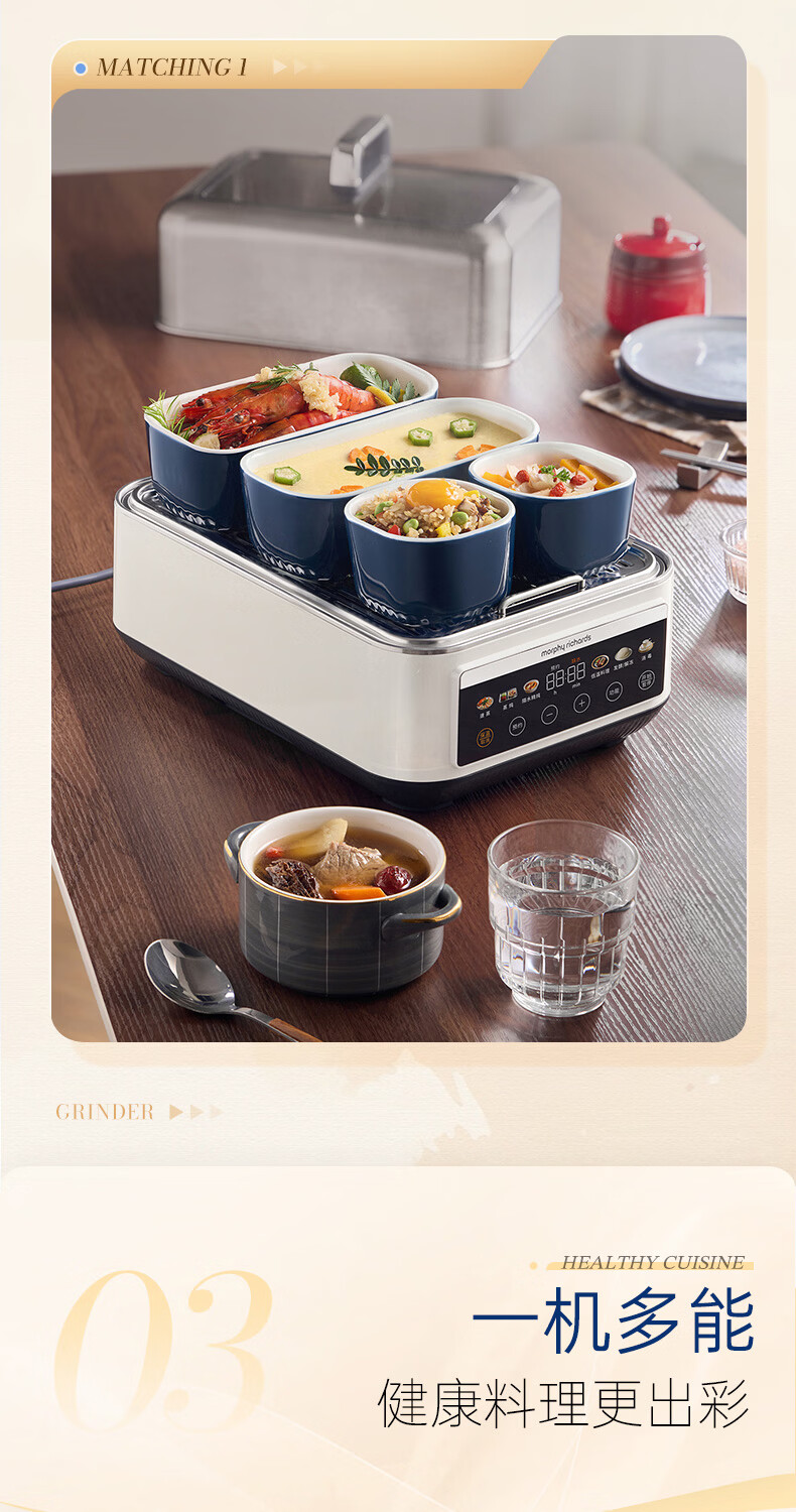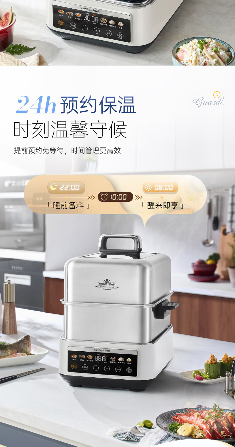 摩飞电器(Morphyrichards)电蒸锅 0涂层全不锈钢家用3-4人炖蒸一体蒸炖锅速蒸锅多功能锅 大容量隔水炖盅蒸汽锅电炖锅MR1188
