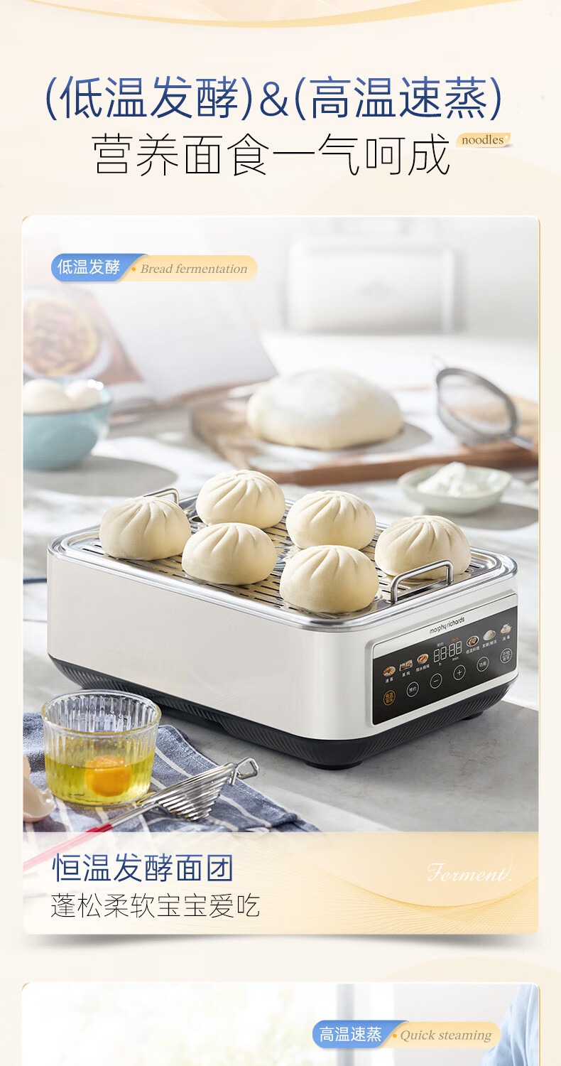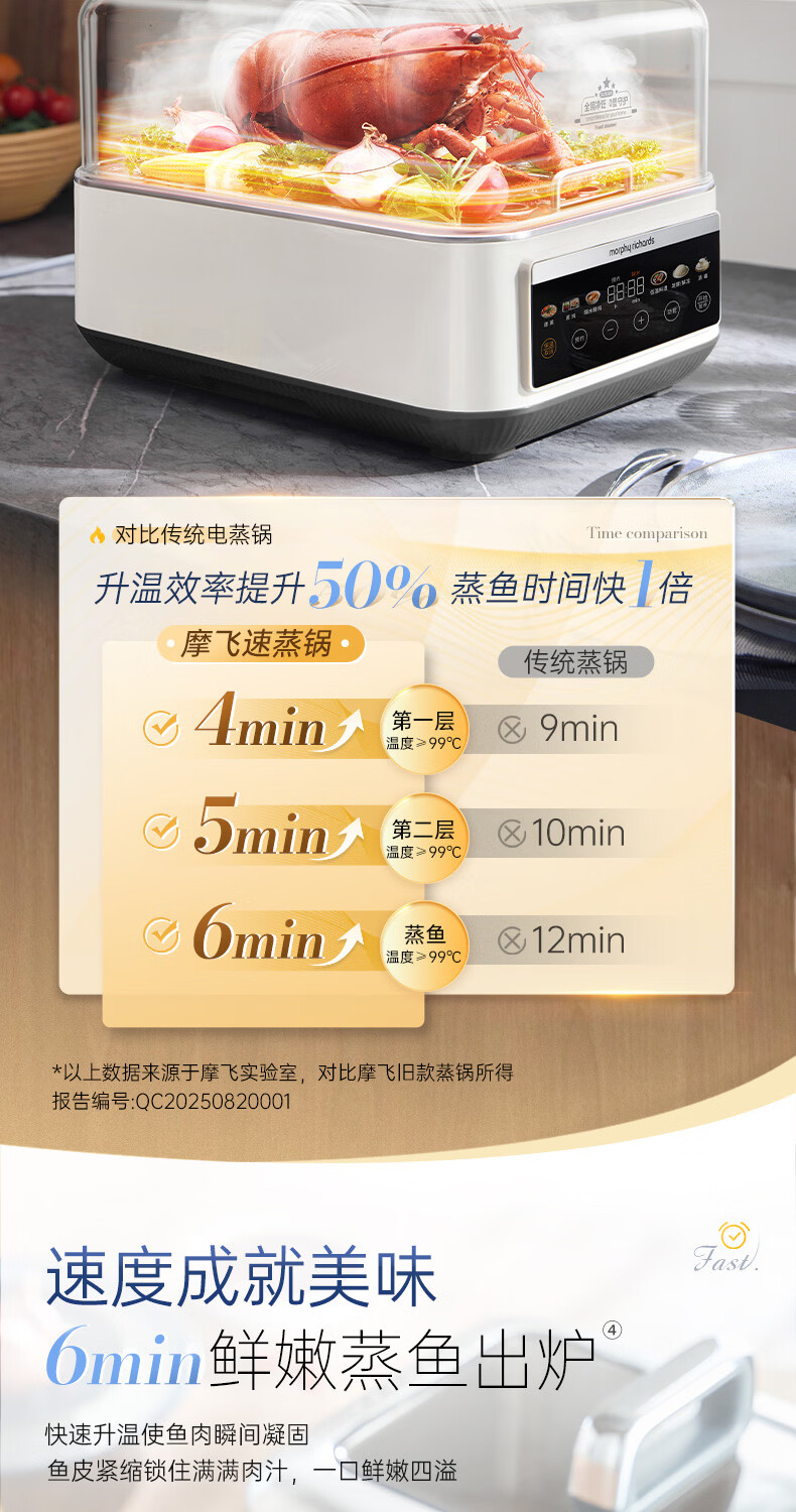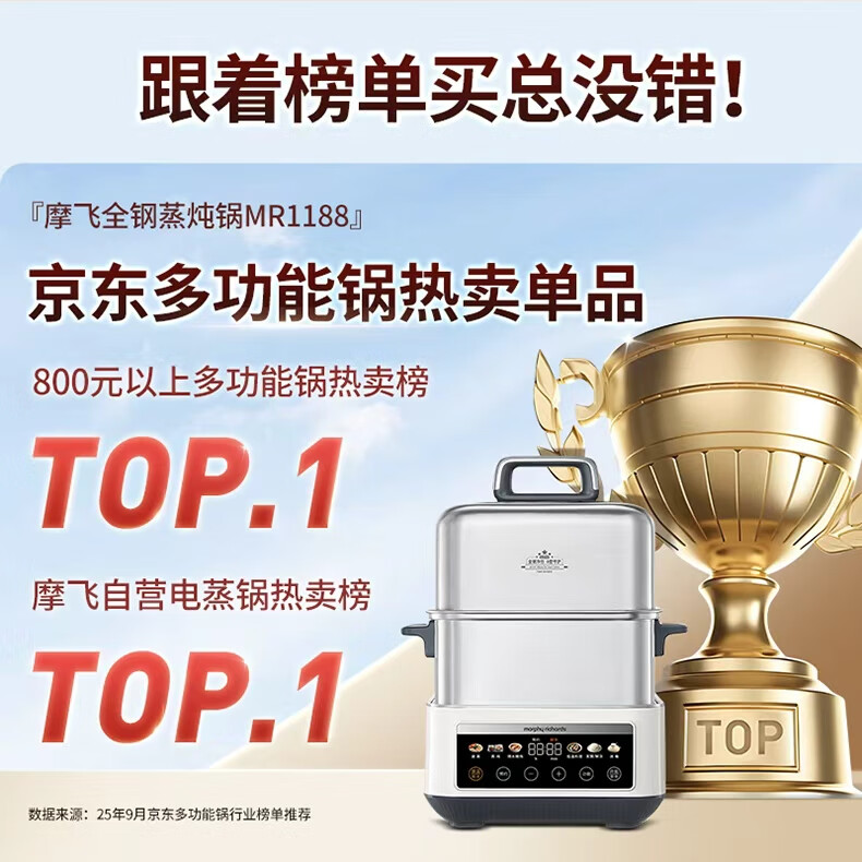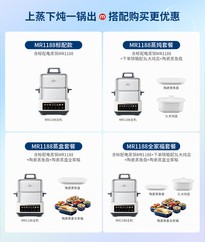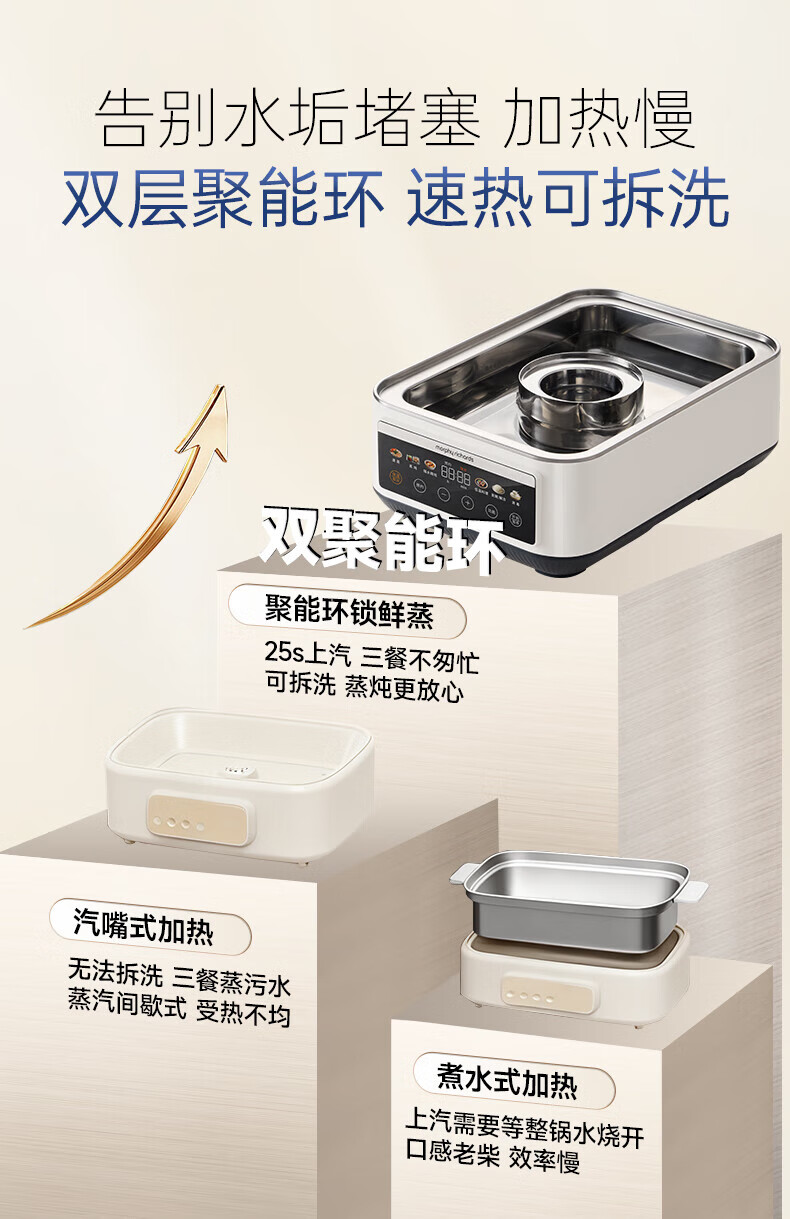摩飞电器(Morphyrichards)电蒸锅 0涂层全不锈钢家用3-4人炖蒸一体蒸炖锅速蒸锅多功能锅 大容量隔水炖盅蒸汽锅电炖锅MR1188