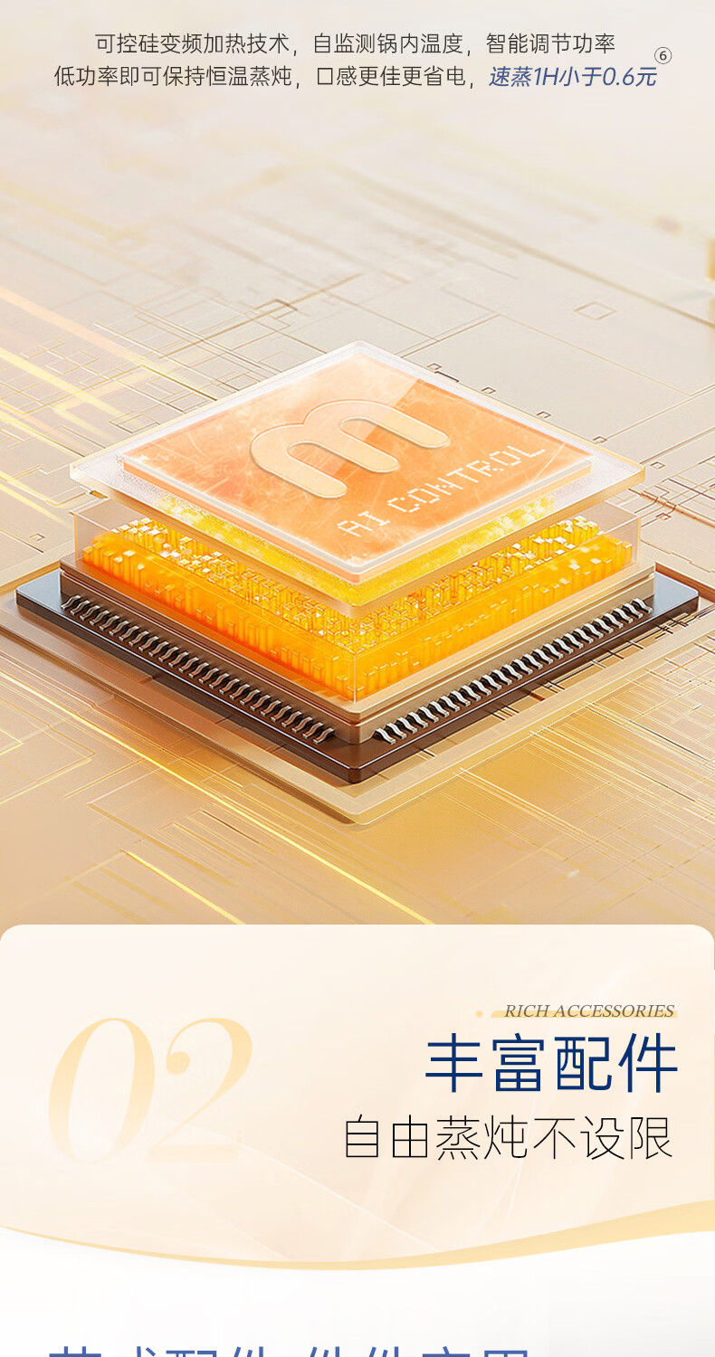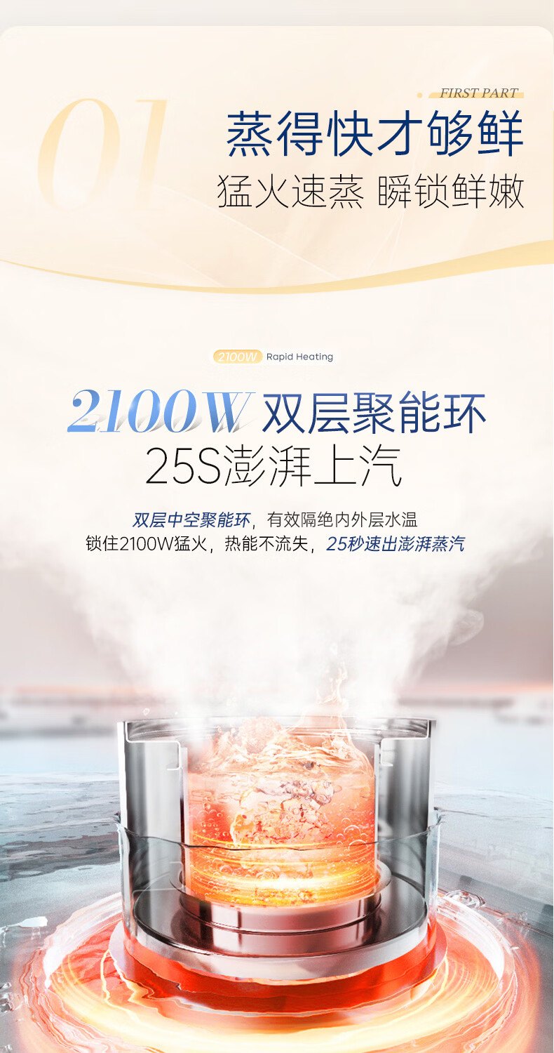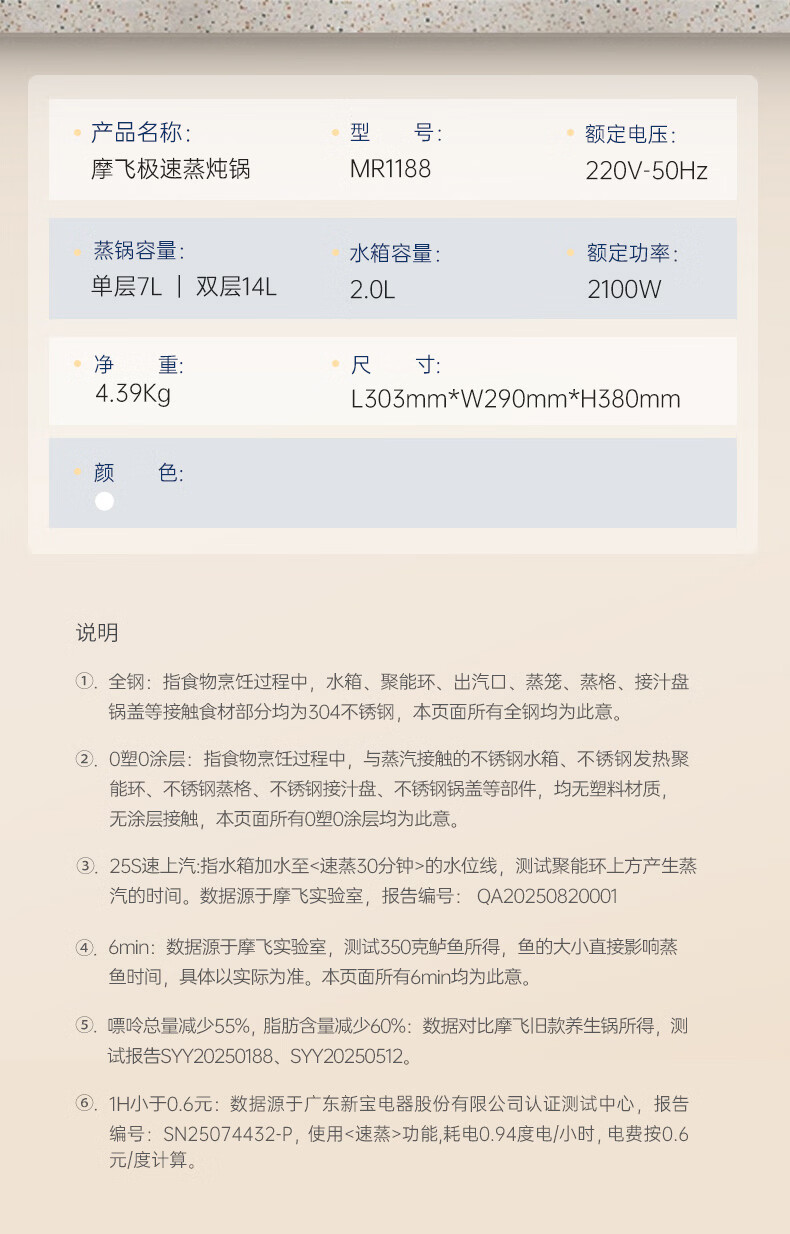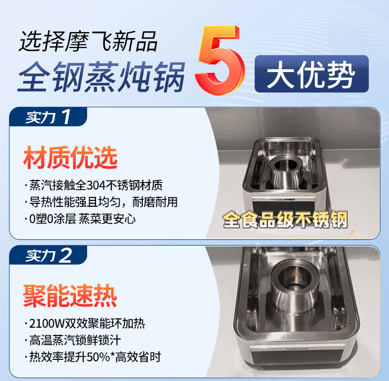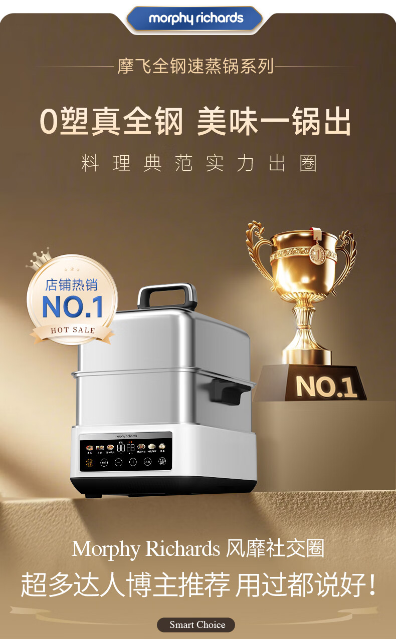 摩飞电器(Morphyrichards)电蒸锅 0涂层全不锈钢家用3-4人炖蒸一体蒸炖锅速蒸锅多功能锅 大容量隔水炖盅蒸汽锅电炖锅MR1188