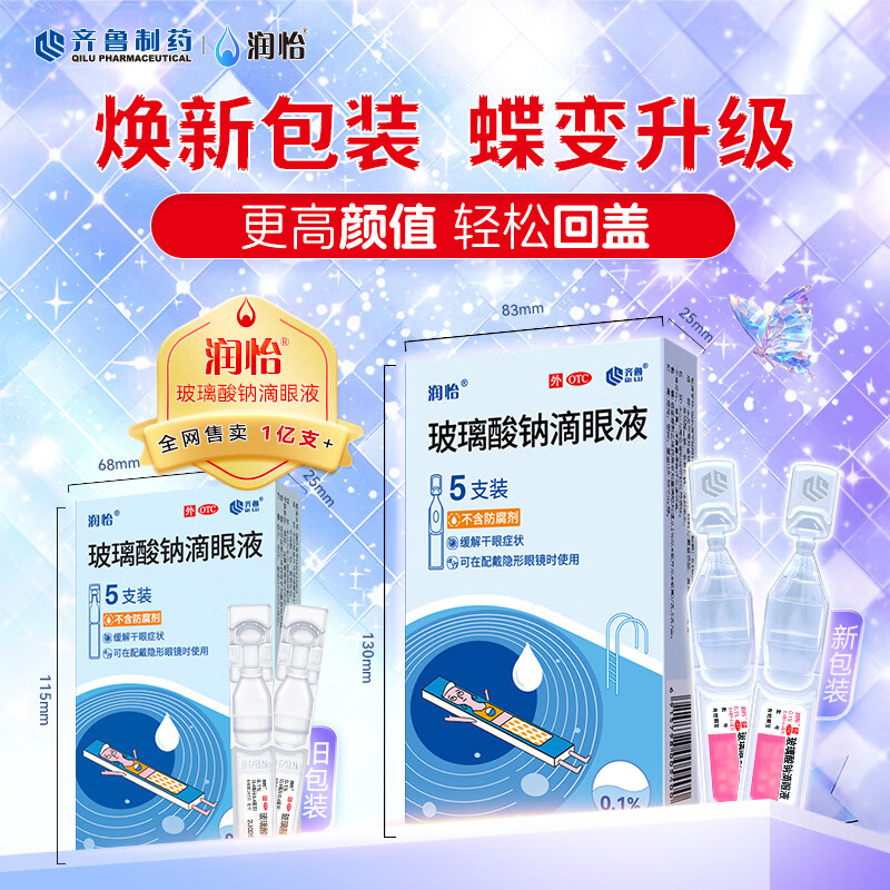 润怡 玻璃酸钠滴眼液 0.1%(0.4ml:0.4mg)*5支 人工泪液 缓解干眼 隐形眼镜适用