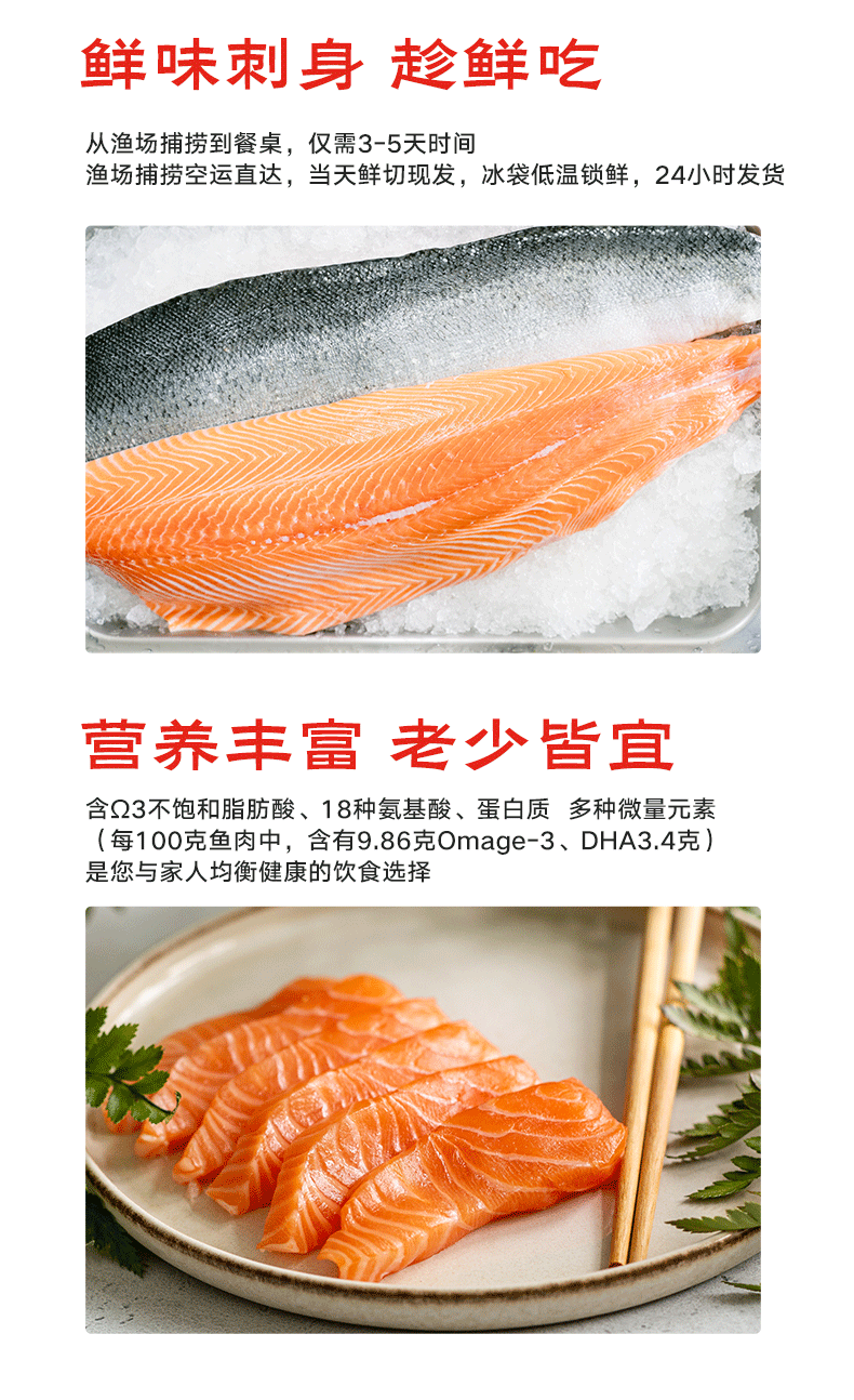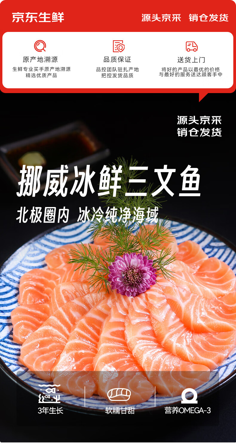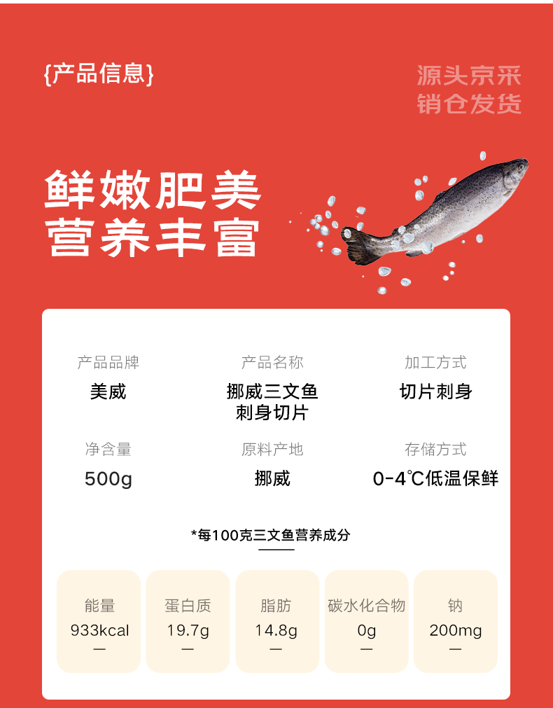 美威【冰鲜】挪威三文鱼刺身切片净重1斤 可生食 生鱼片 源头直发包邮