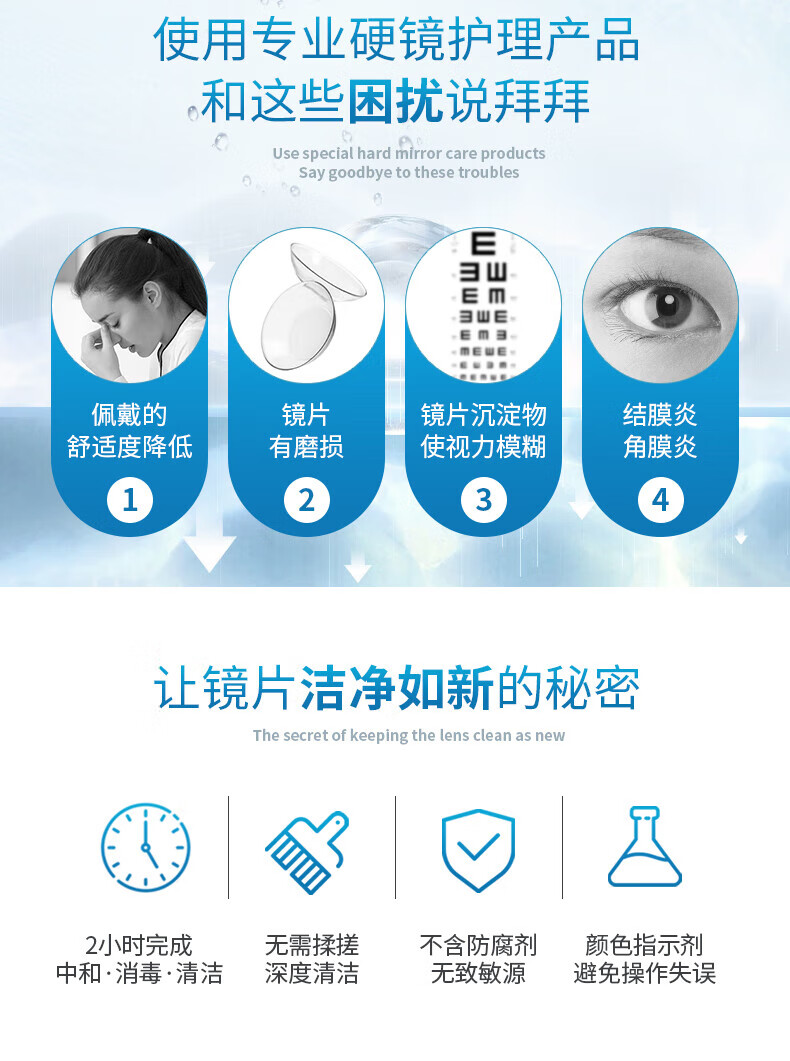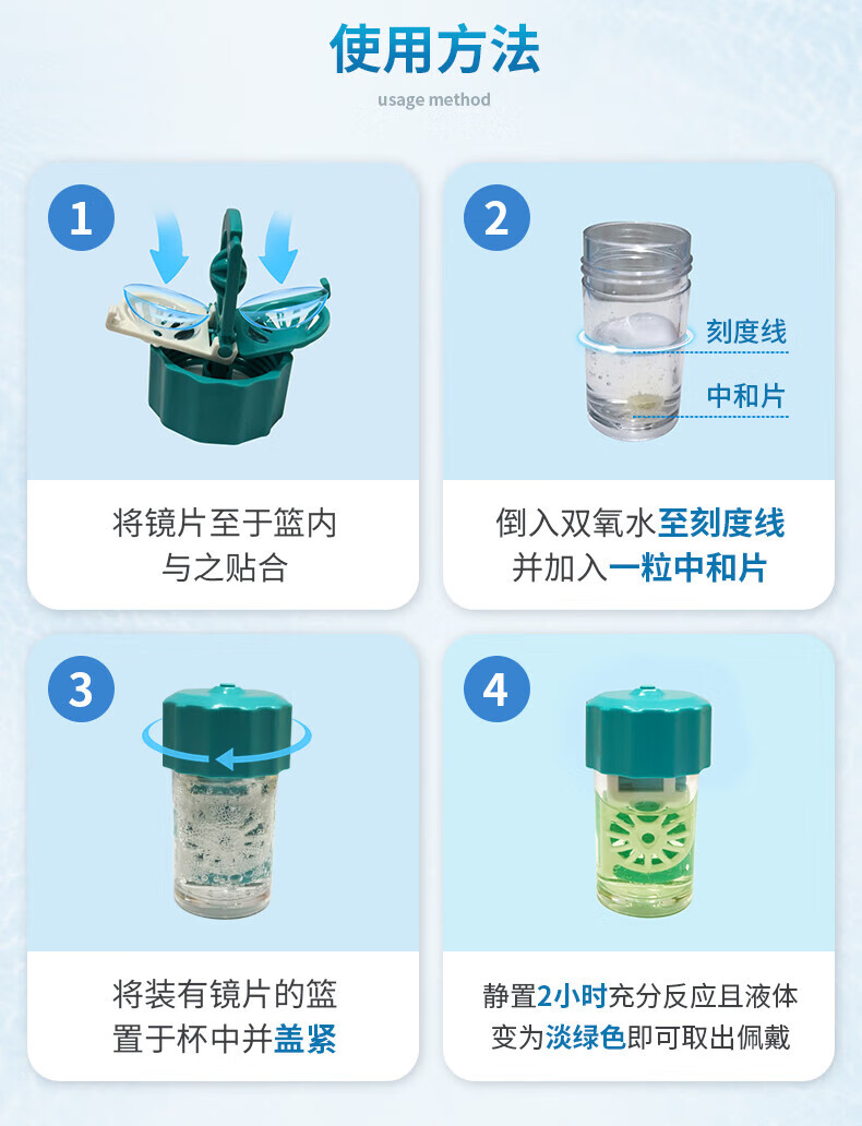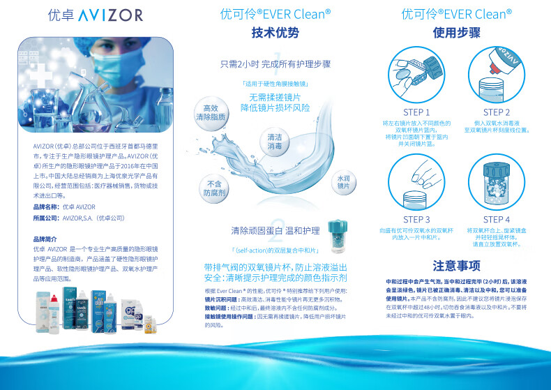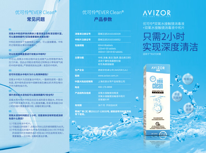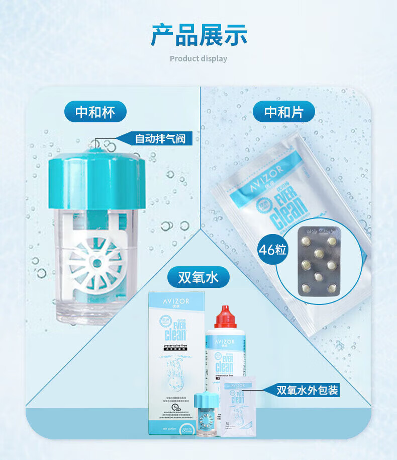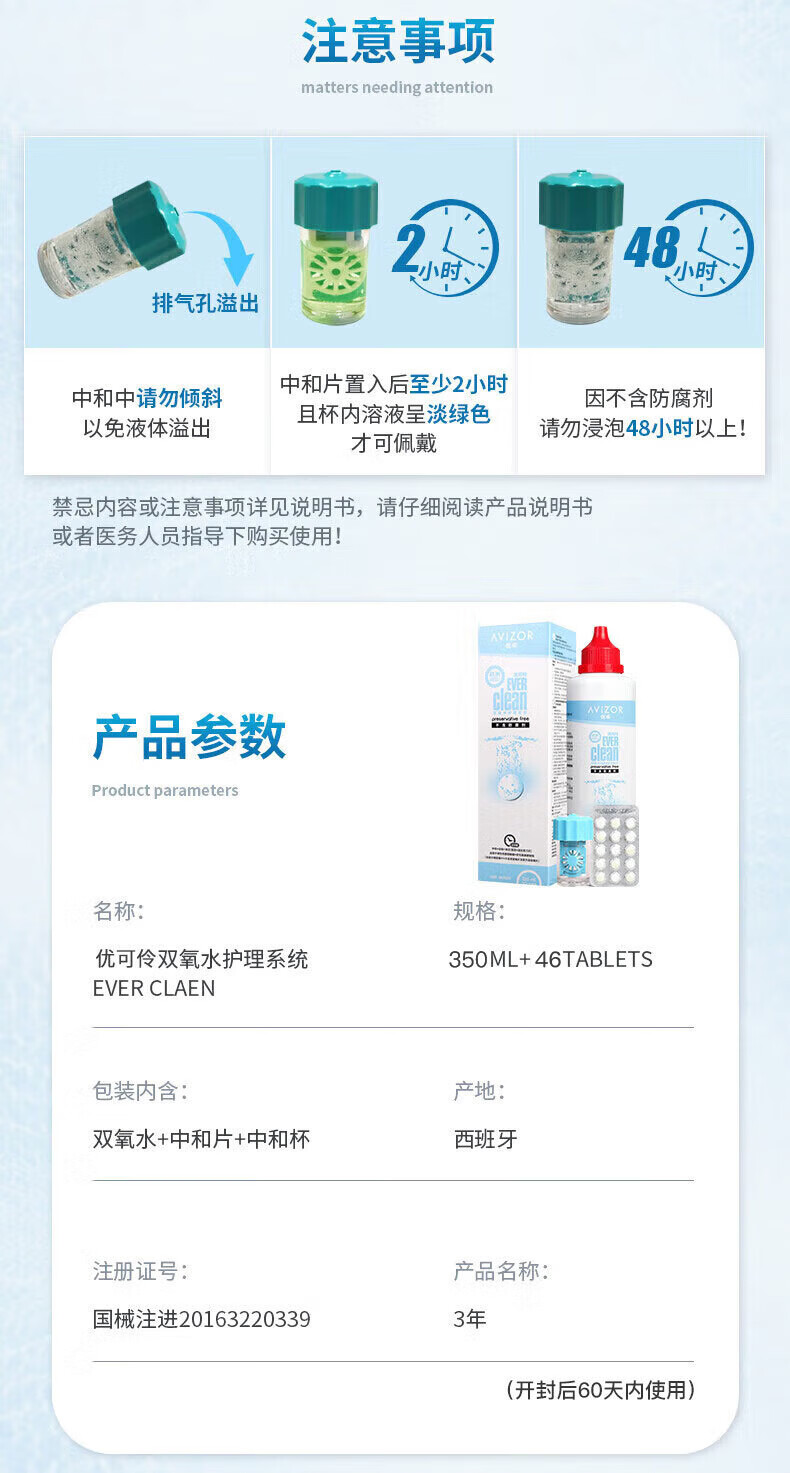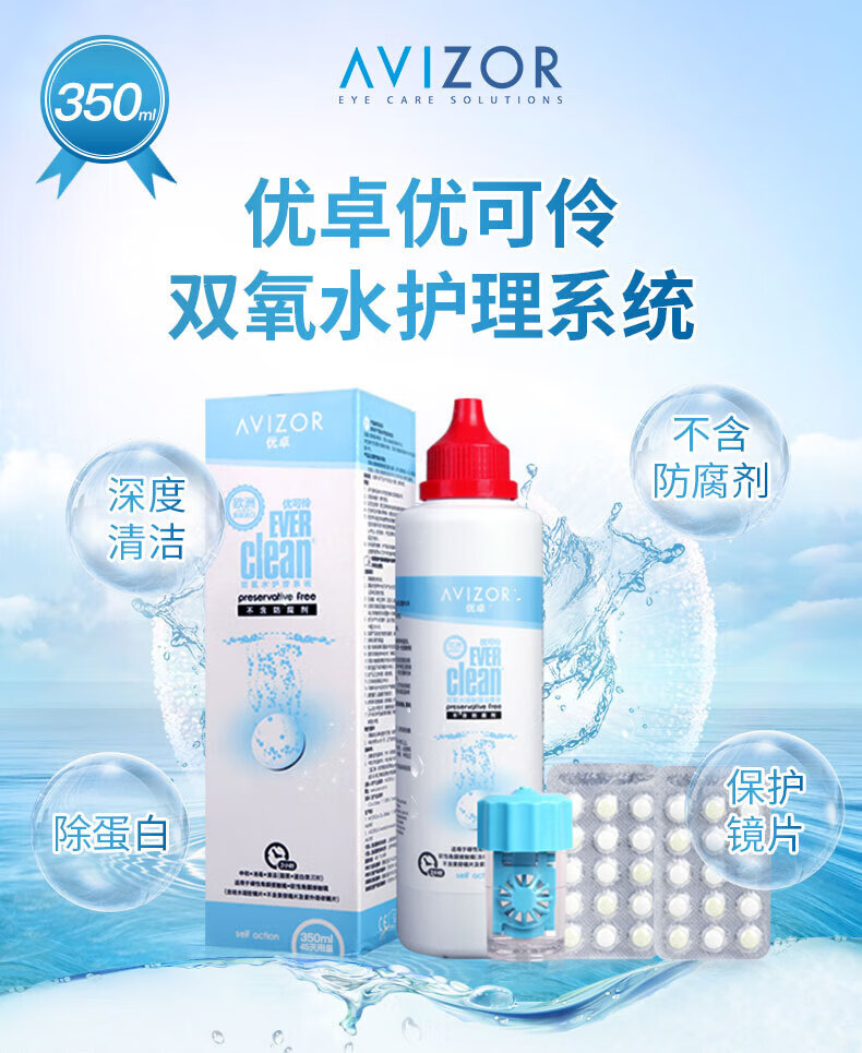 优卓(AVIZOR)优可伶双氧水接触镜消毒液/中和片 硬性角膜接触镜护理液350ml