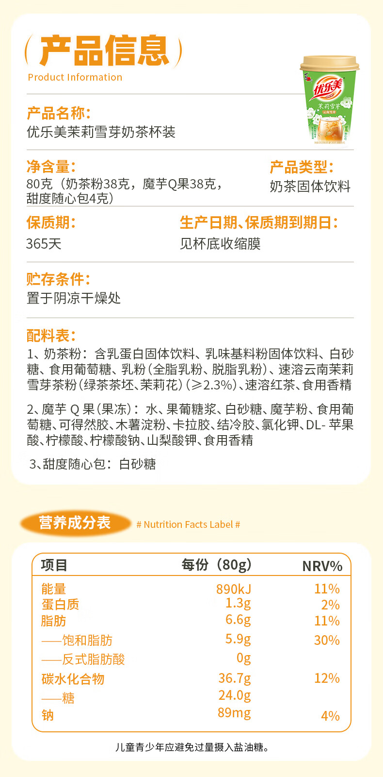 优乐美奶茶茉莉雪芽80克*2杯+金贵乌龙80克*1杯 花香奶茶下午茶早餐代餐