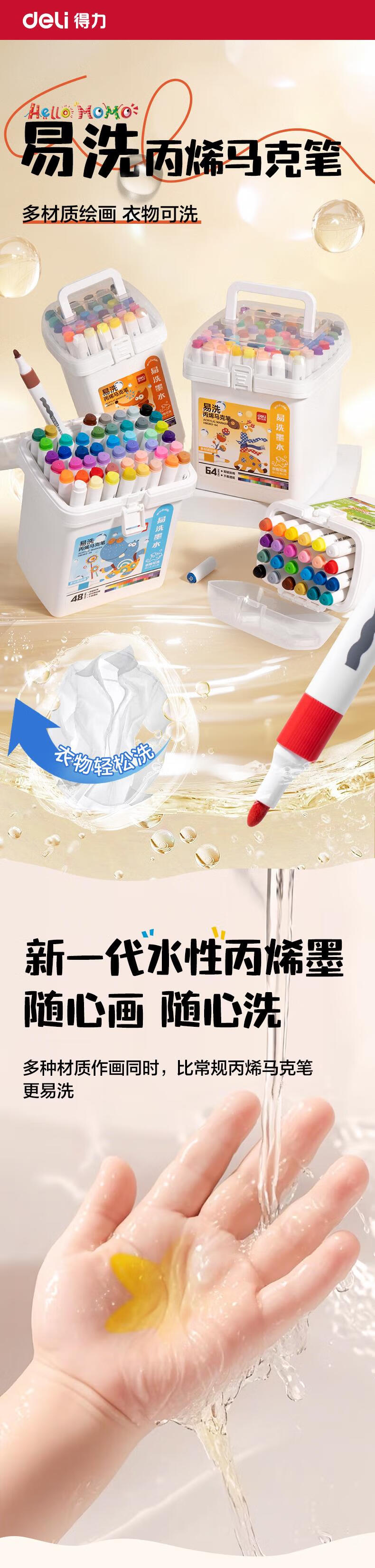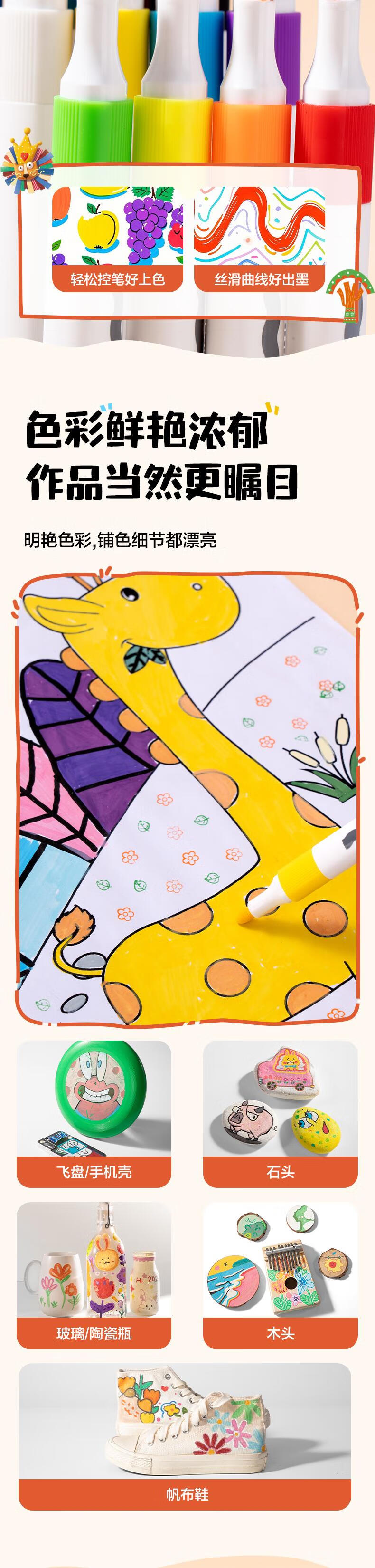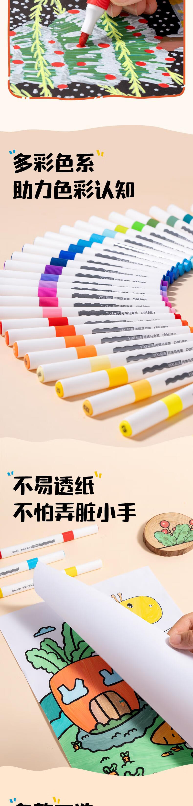 得力(deli)24色儿童学生易洗丙烯马克笔三角杆水彩笔生日礼物防水手绘荧光记号笔元旦涂鸦HM363-24美育