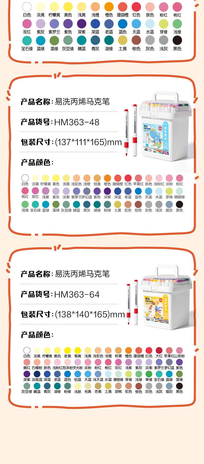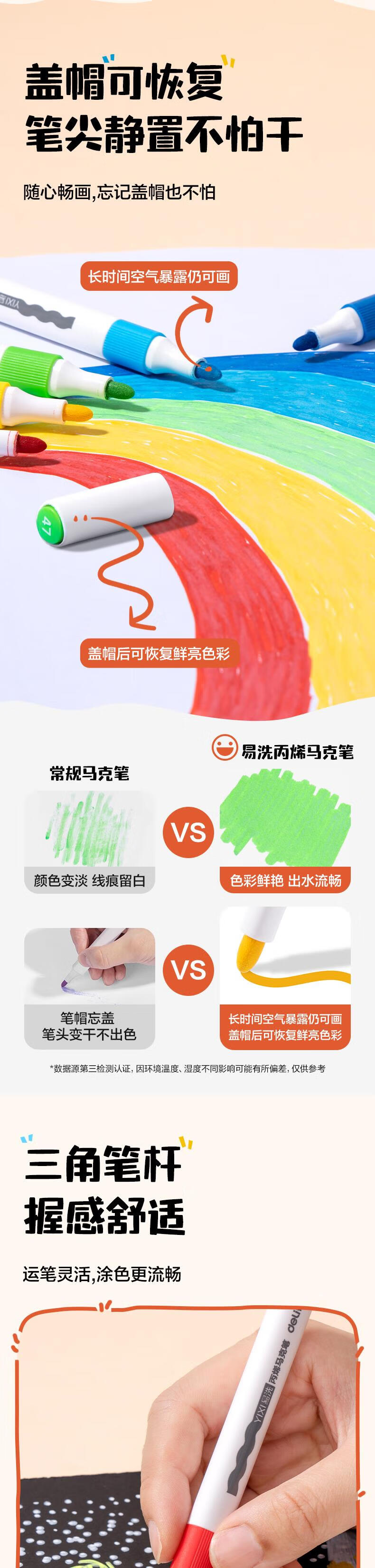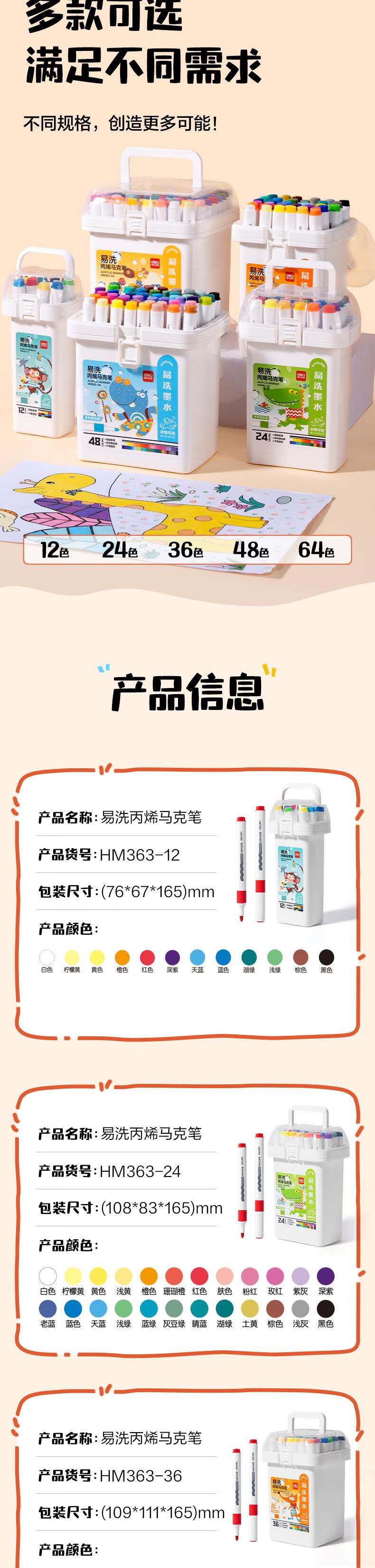 得力(deli)24色儿童学生易洗丙烯马克笔三角杆水彩笔生日礼物防水手绘荧光记号笔元旦涂鸦HM363-24美育