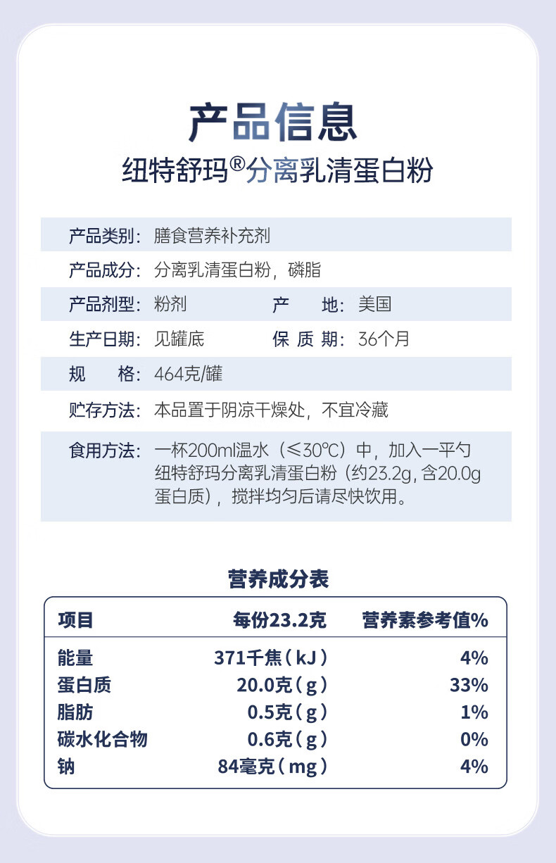 纽特舒玛分离乳清蛋白粉464g*2罐 送礼礼盒术后恢复营养礼品进口