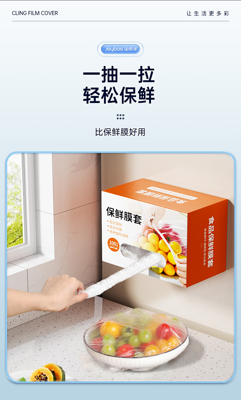 佳帮手一次性保鲜膜套保鲜罩食品级保鲜袋家用剩菜套碗盘碟罩盒装100只