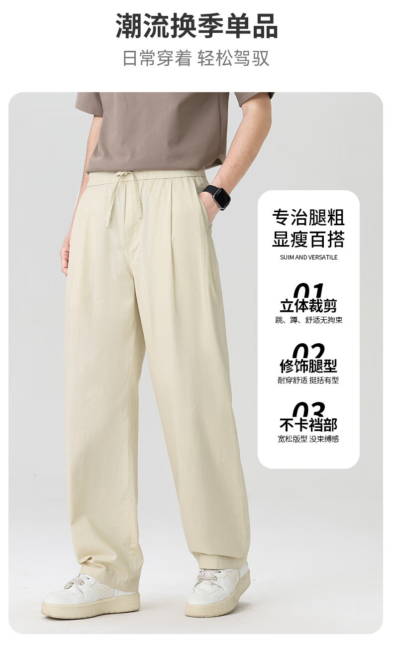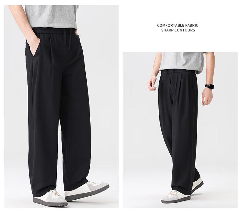 SHANSHAN杉杉【纯棉】直筒裤子男春秋男士休闲日常通勤透气 黑色 M /170