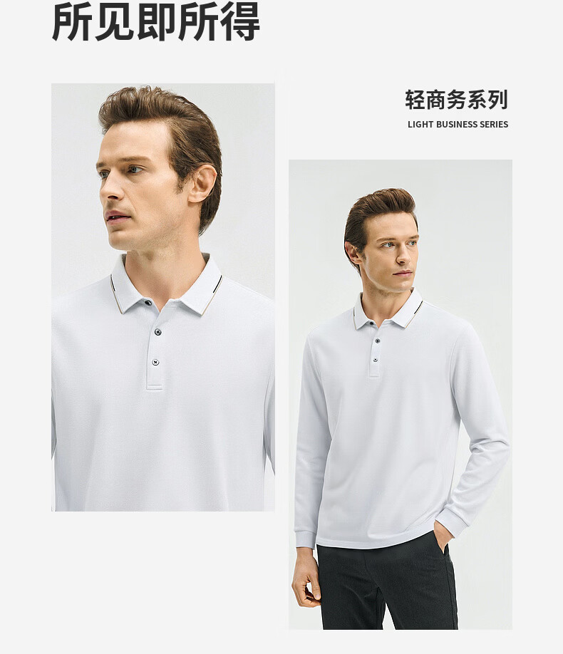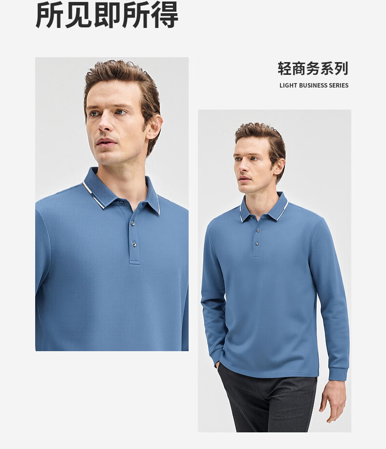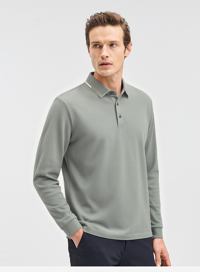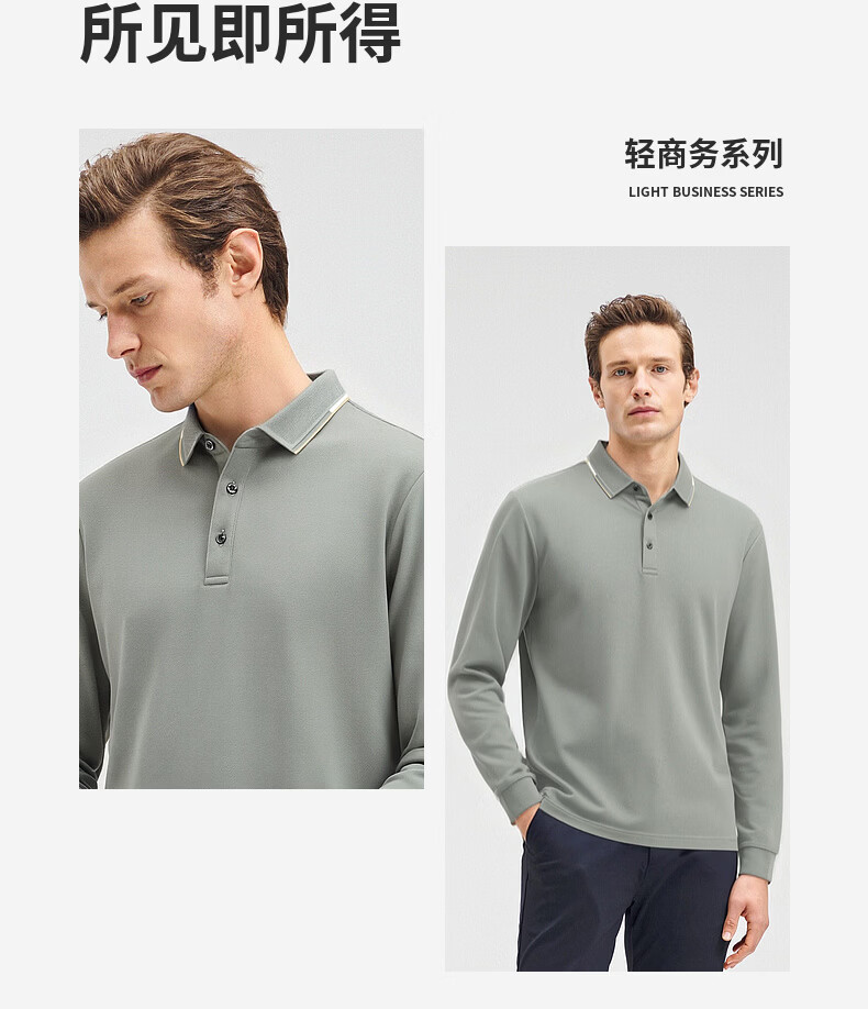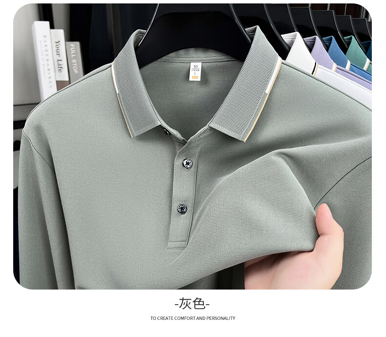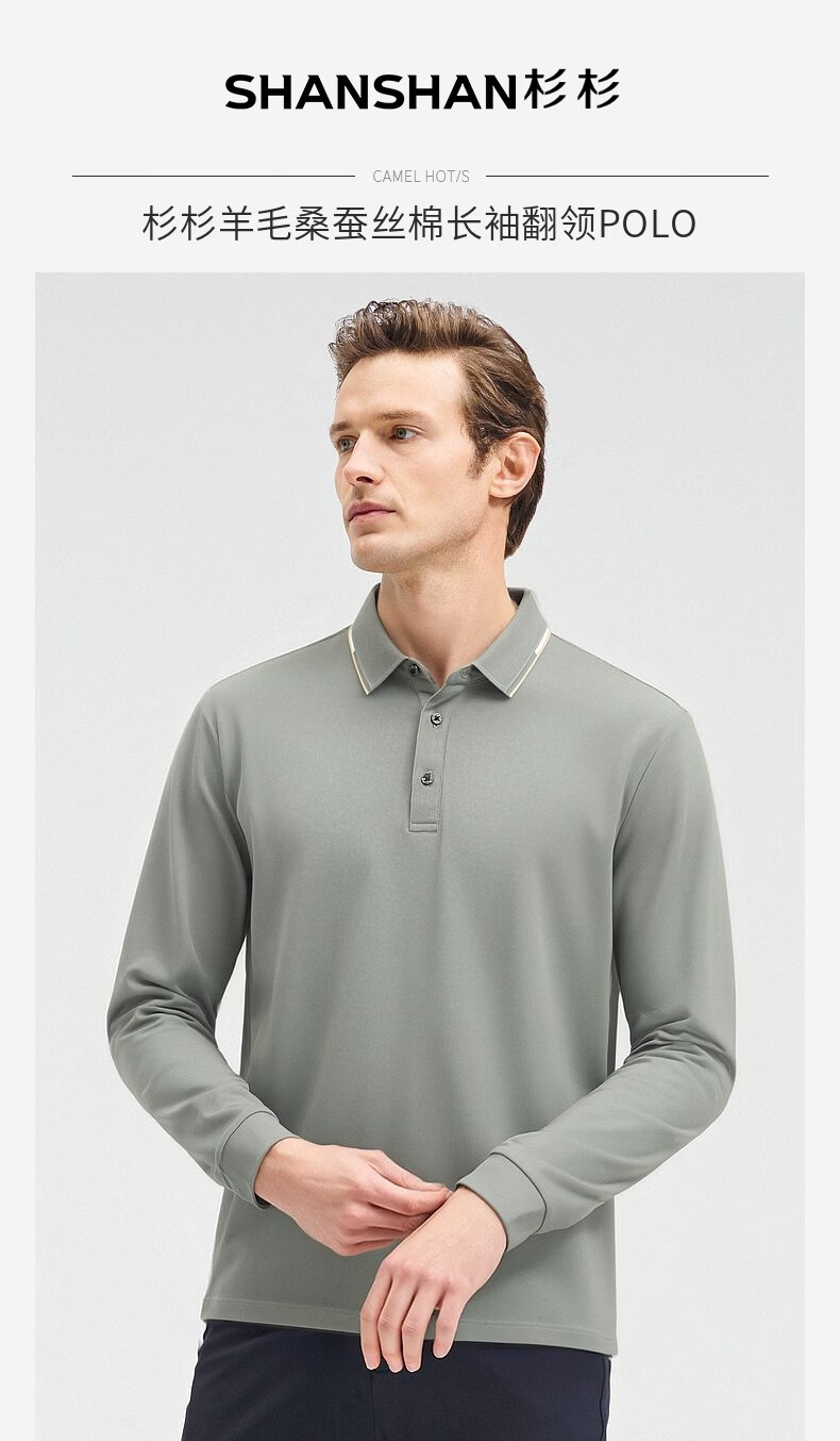 SHANSHAN杉杉【含棉】长袖t恤男翻领POLO衫纯色商务休闲轻奢春秋新款 灰色 M /170