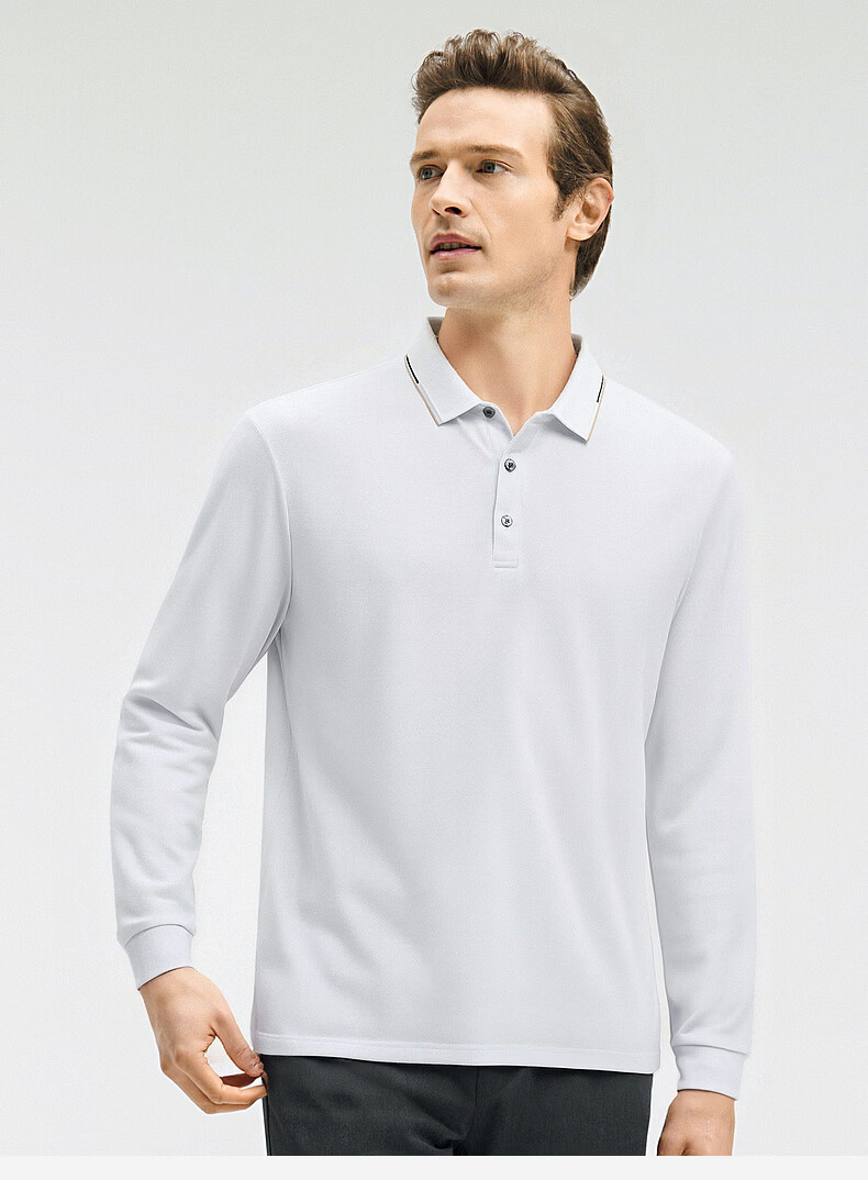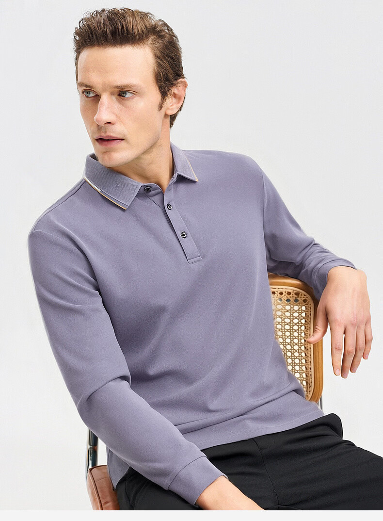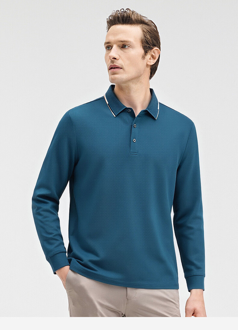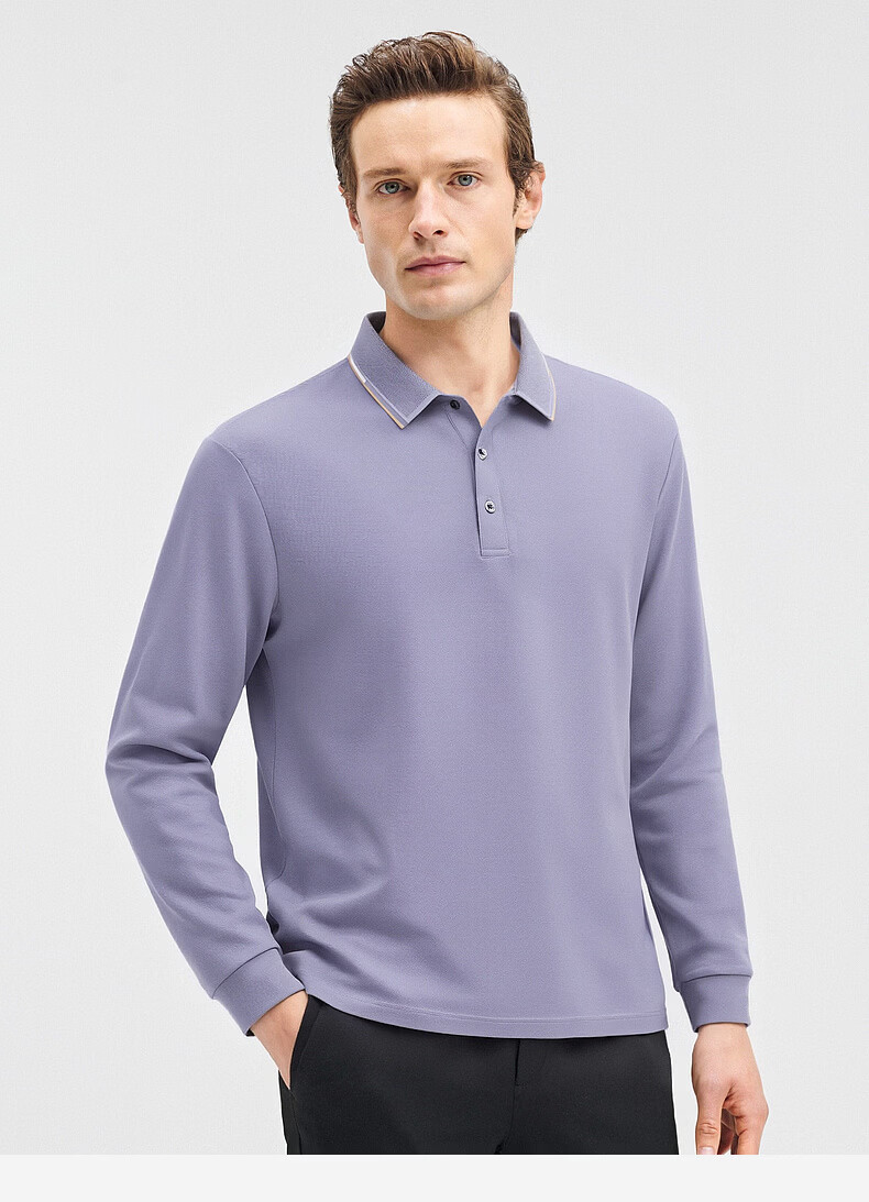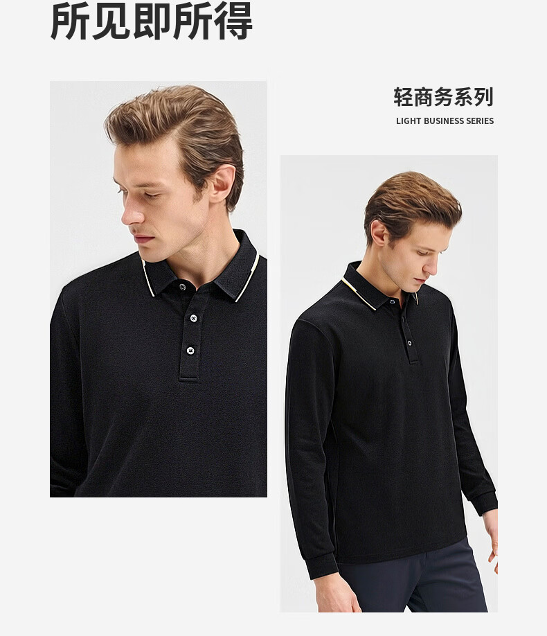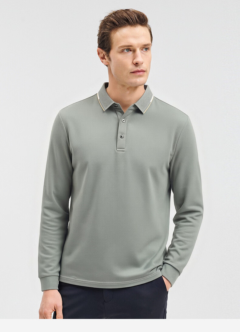 SHANSHAN杉杉【含棉】长袖t恤男翻领POLO衫纯色商务休闲轻奢春秋新款 灰色 M /170