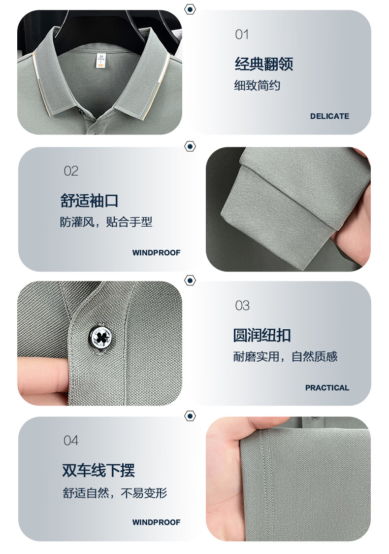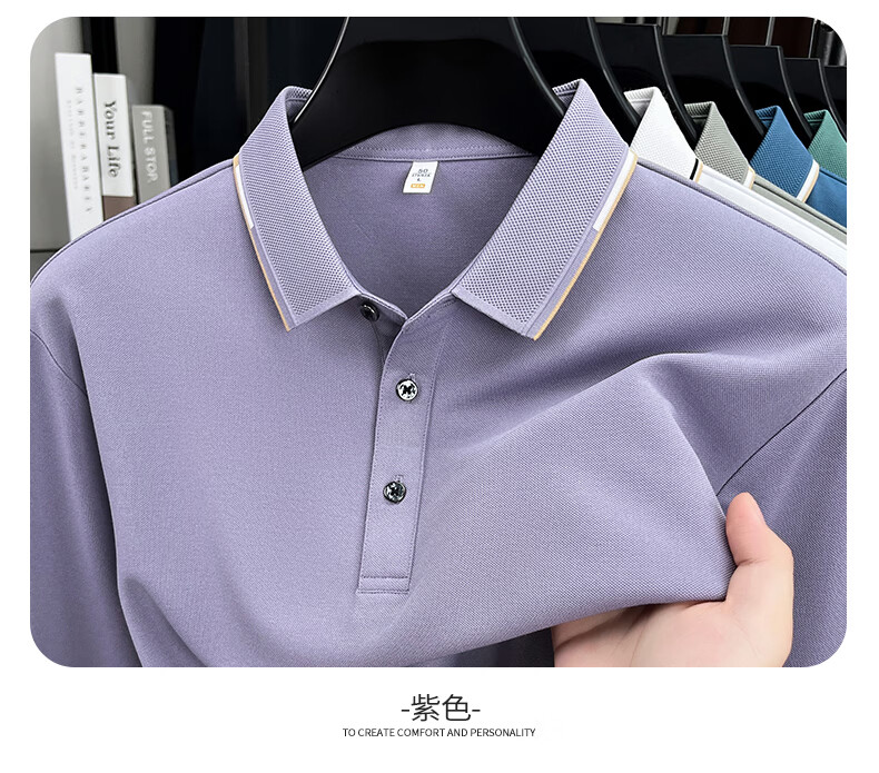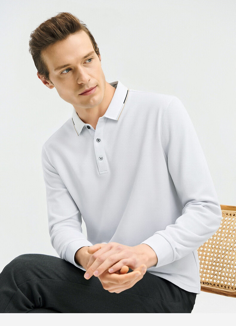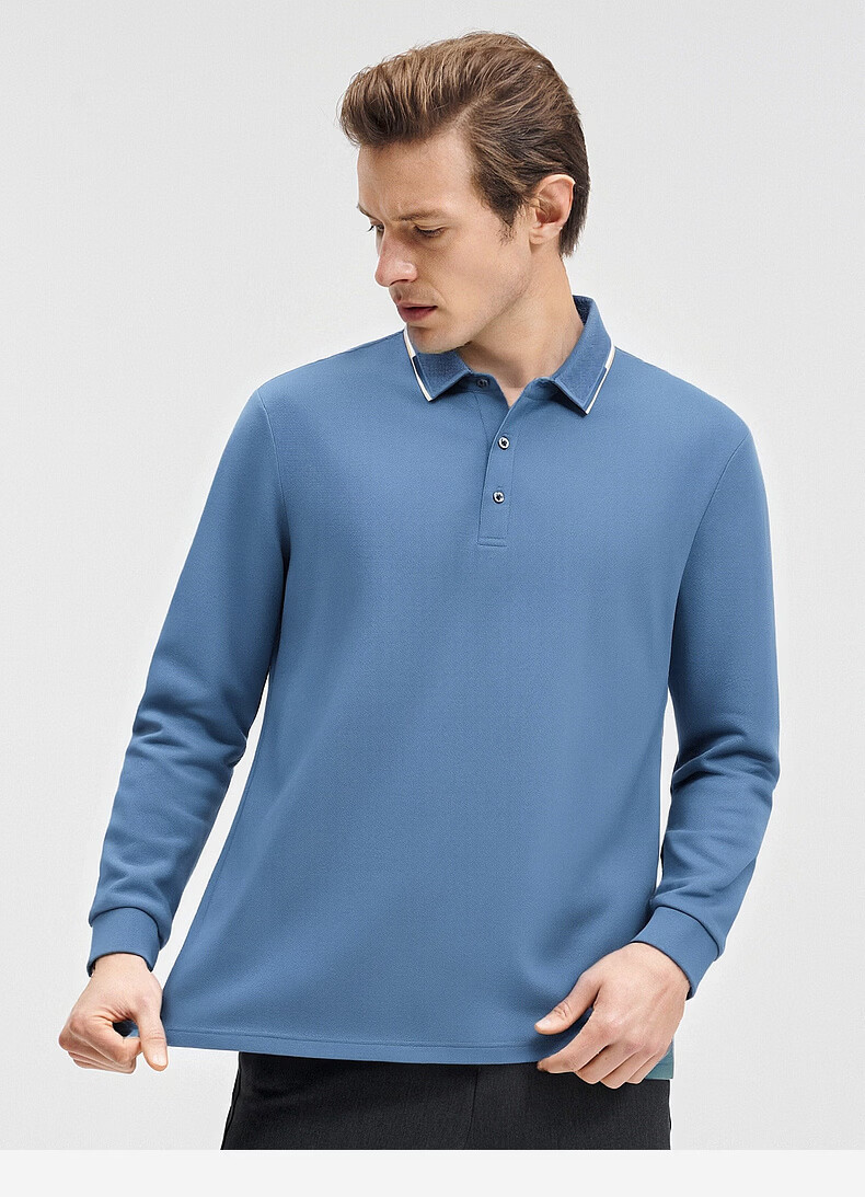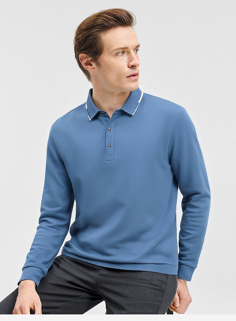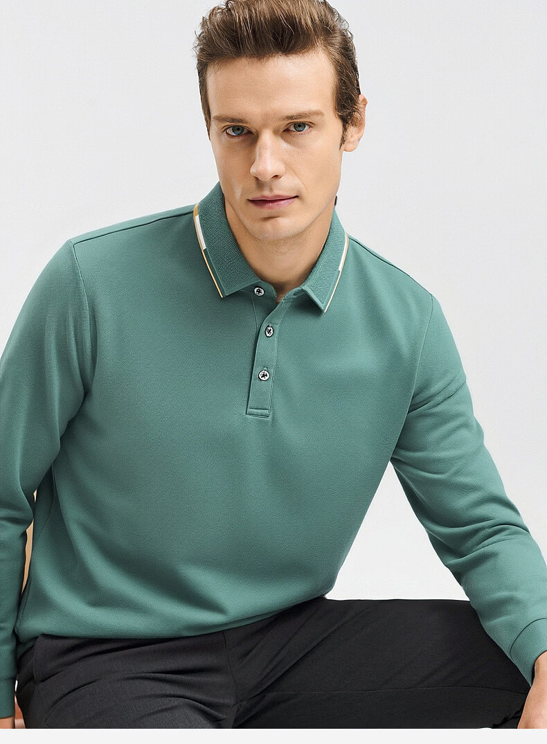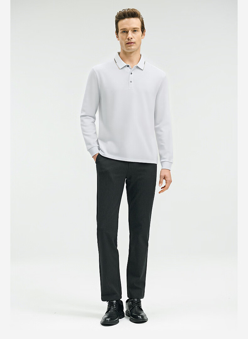 SHANSHAN杉杉【含棉】长袖t恤男翻领POLO衫纯色商务休闲轻奢春秋新款 灰色 M /170