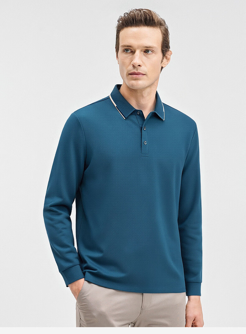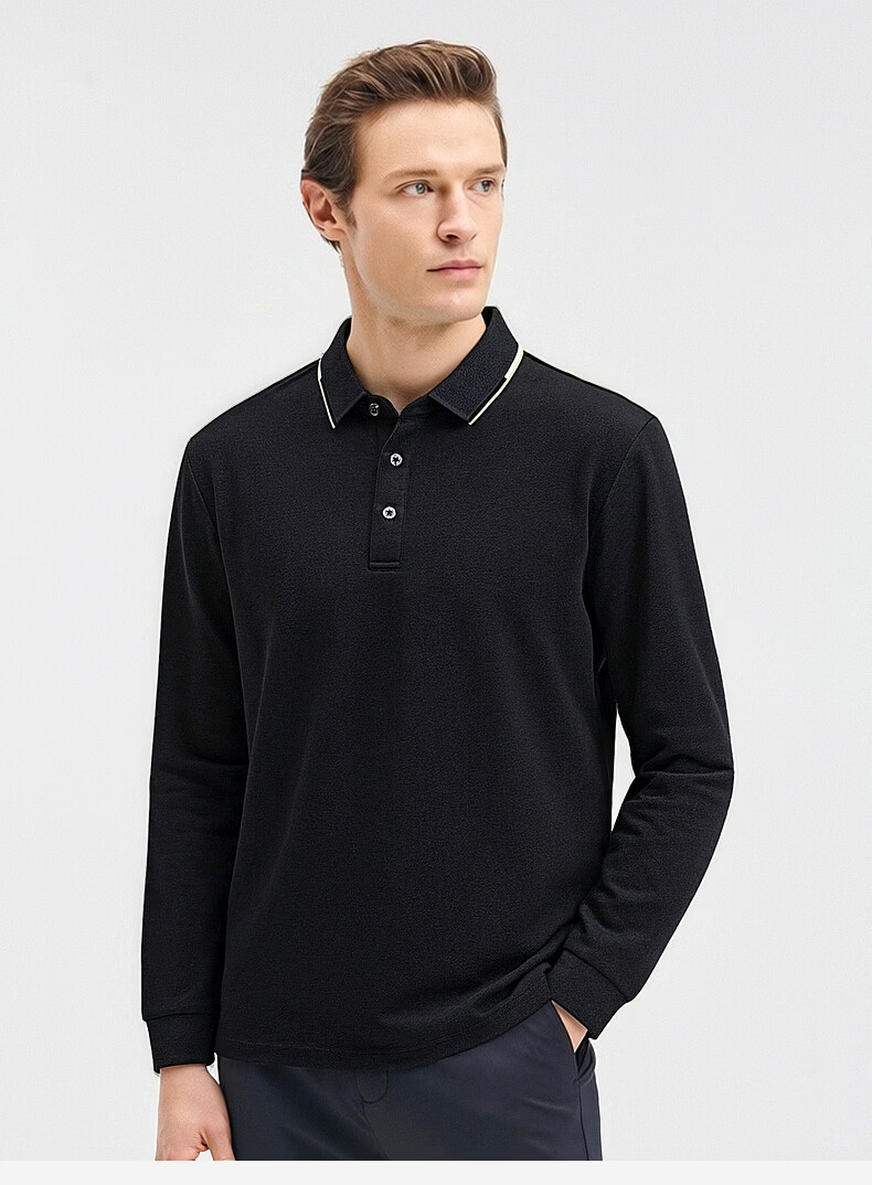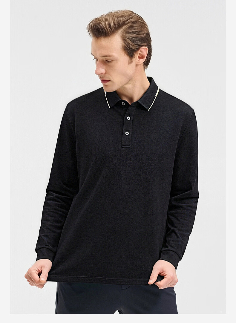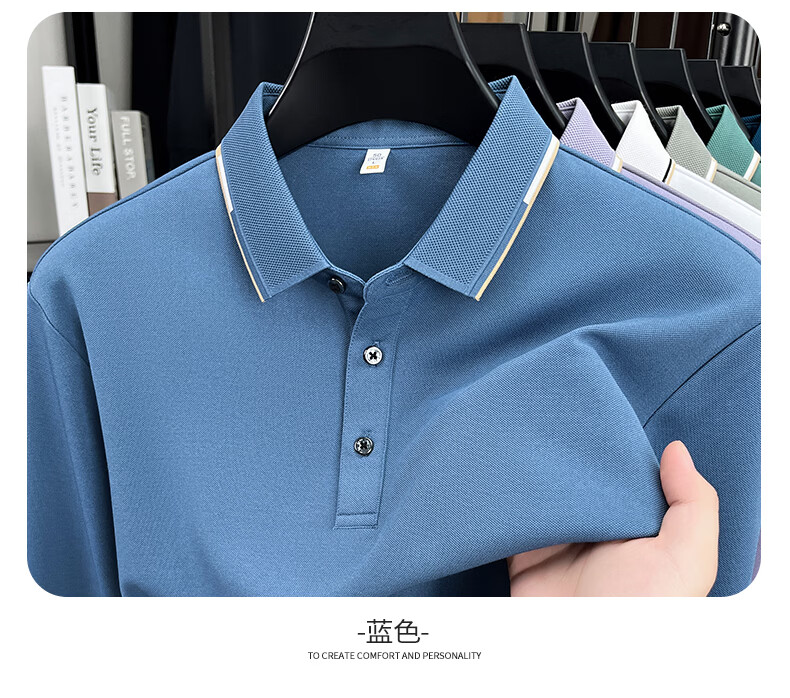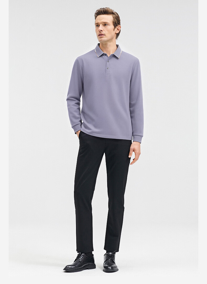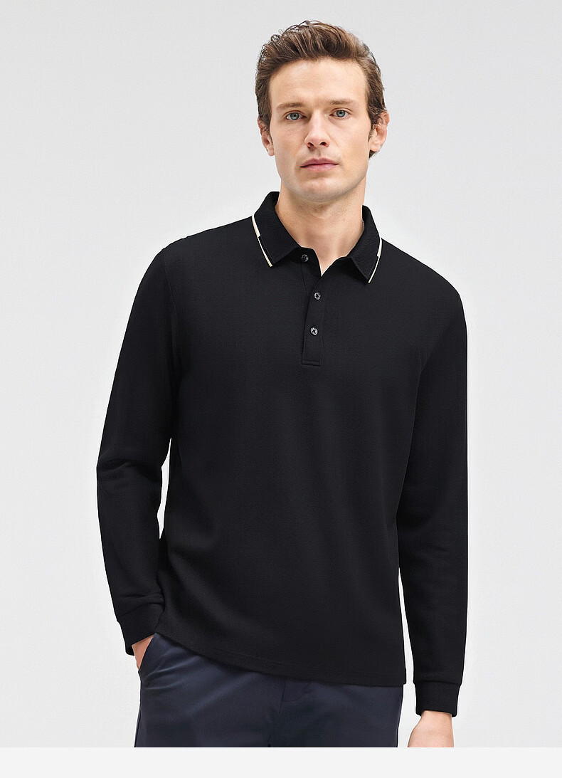SHANSHAN杉杉【含棉】长袖t恤男翻领POLO衫纯色商务休闲轻奢春秋新款 灰色 M /170