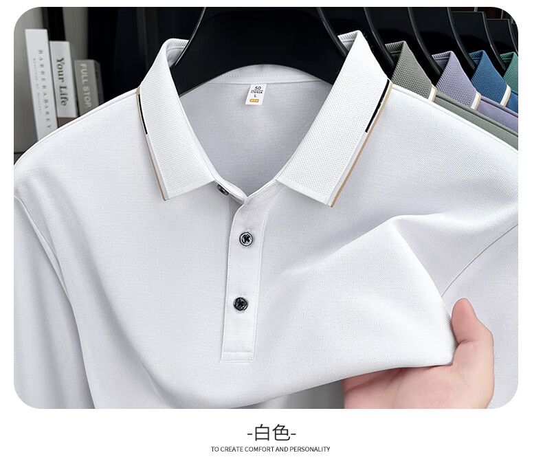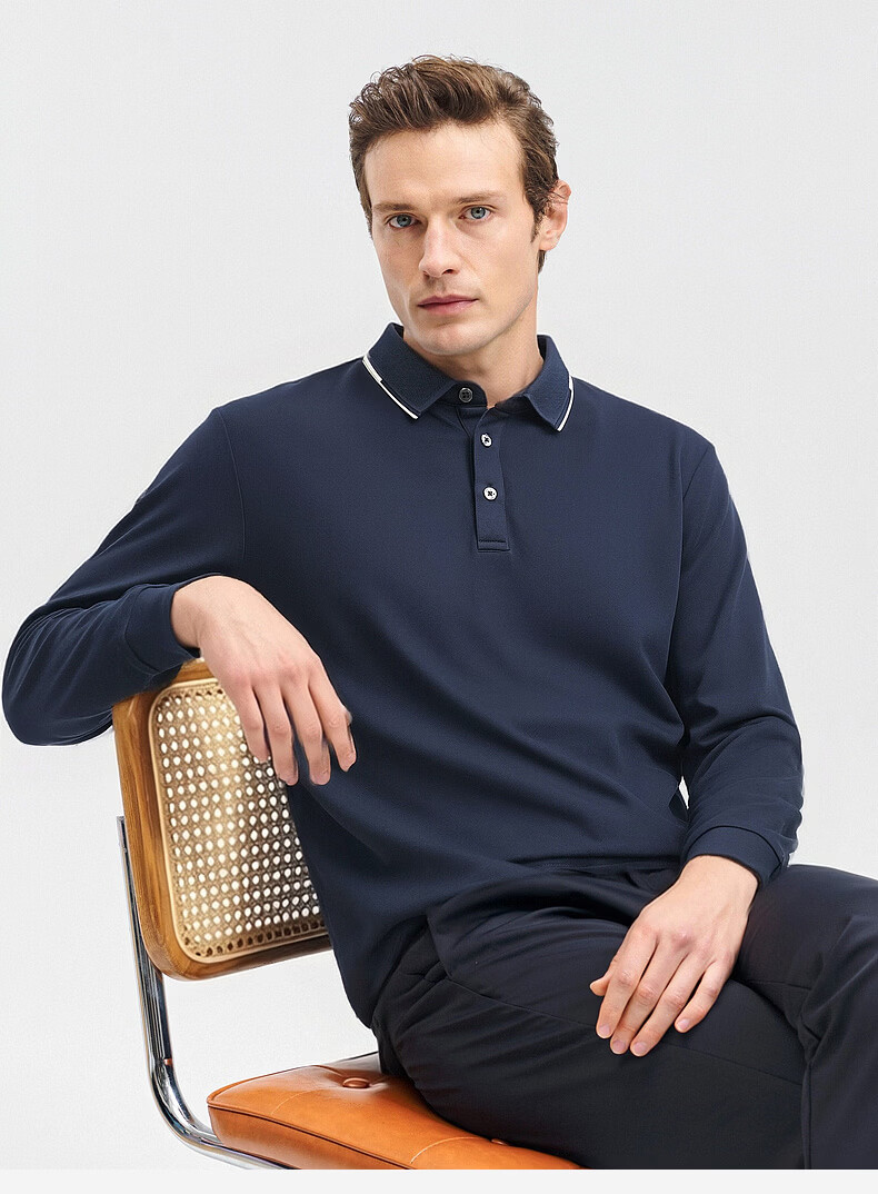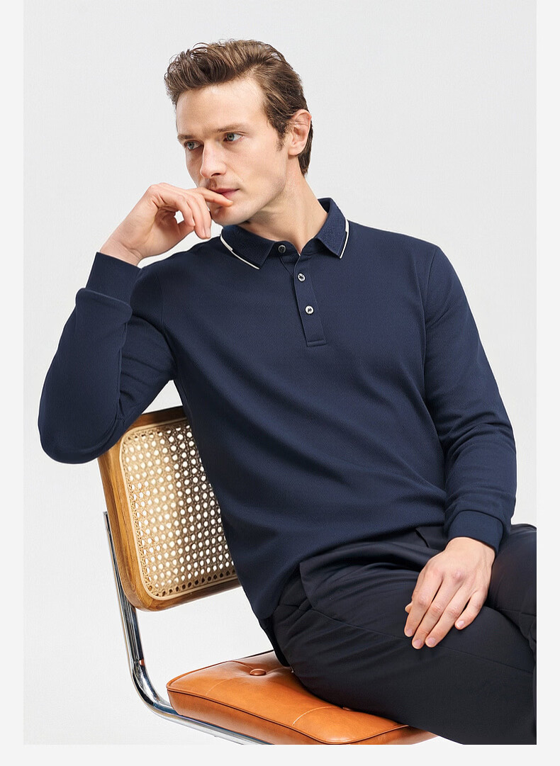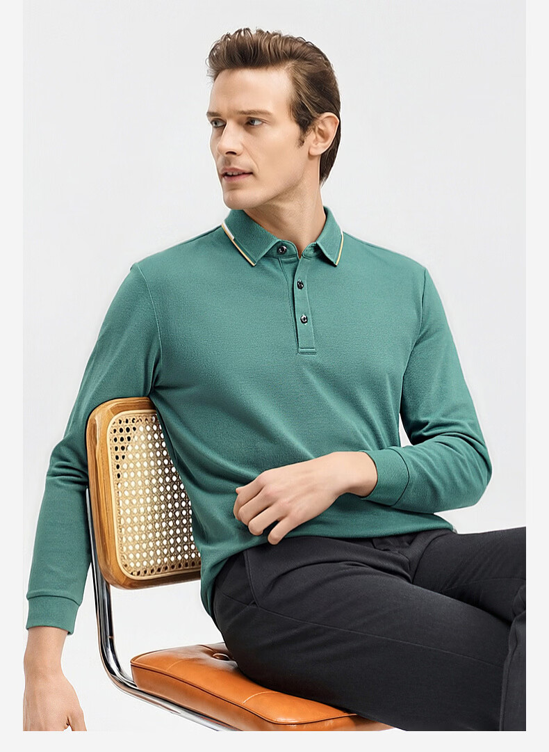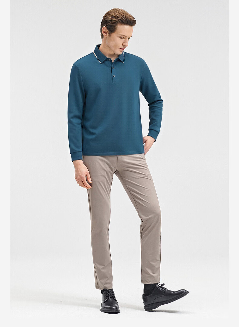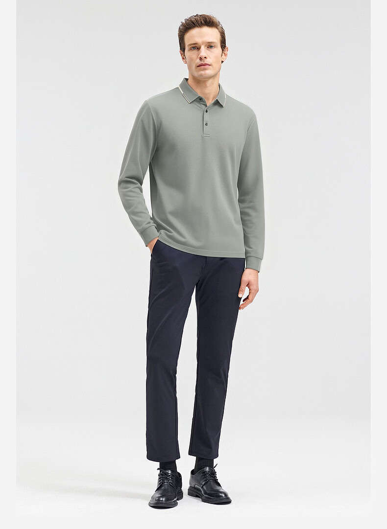 SHANSHAN杉杉【含棉】长袖t恤男翻领POLO衫纯色商务休闲轻奢春秋新款 灰色 M /170
