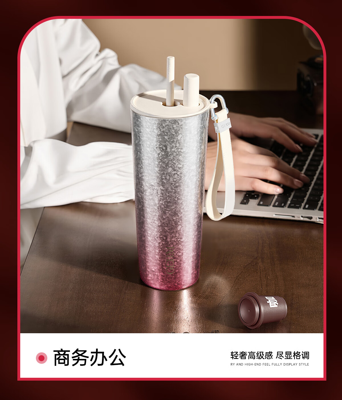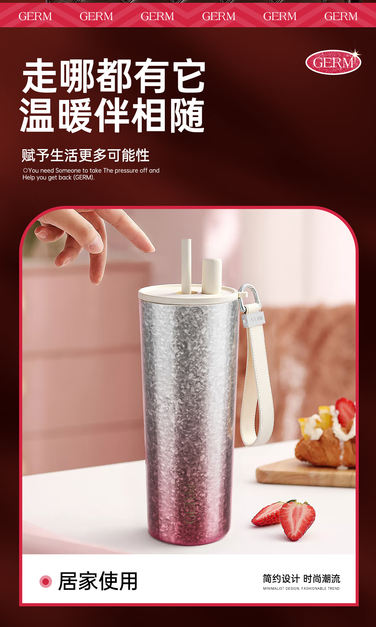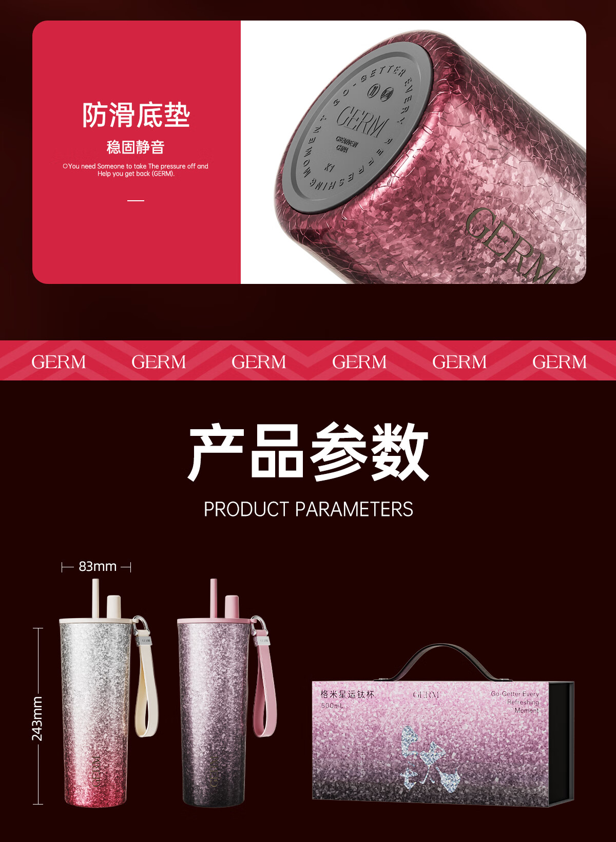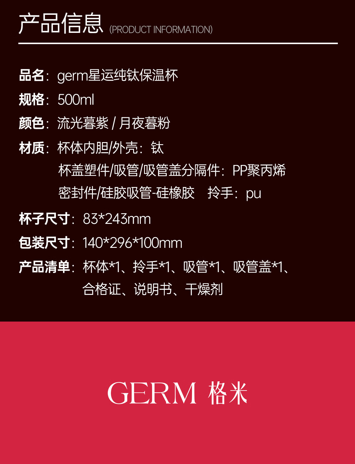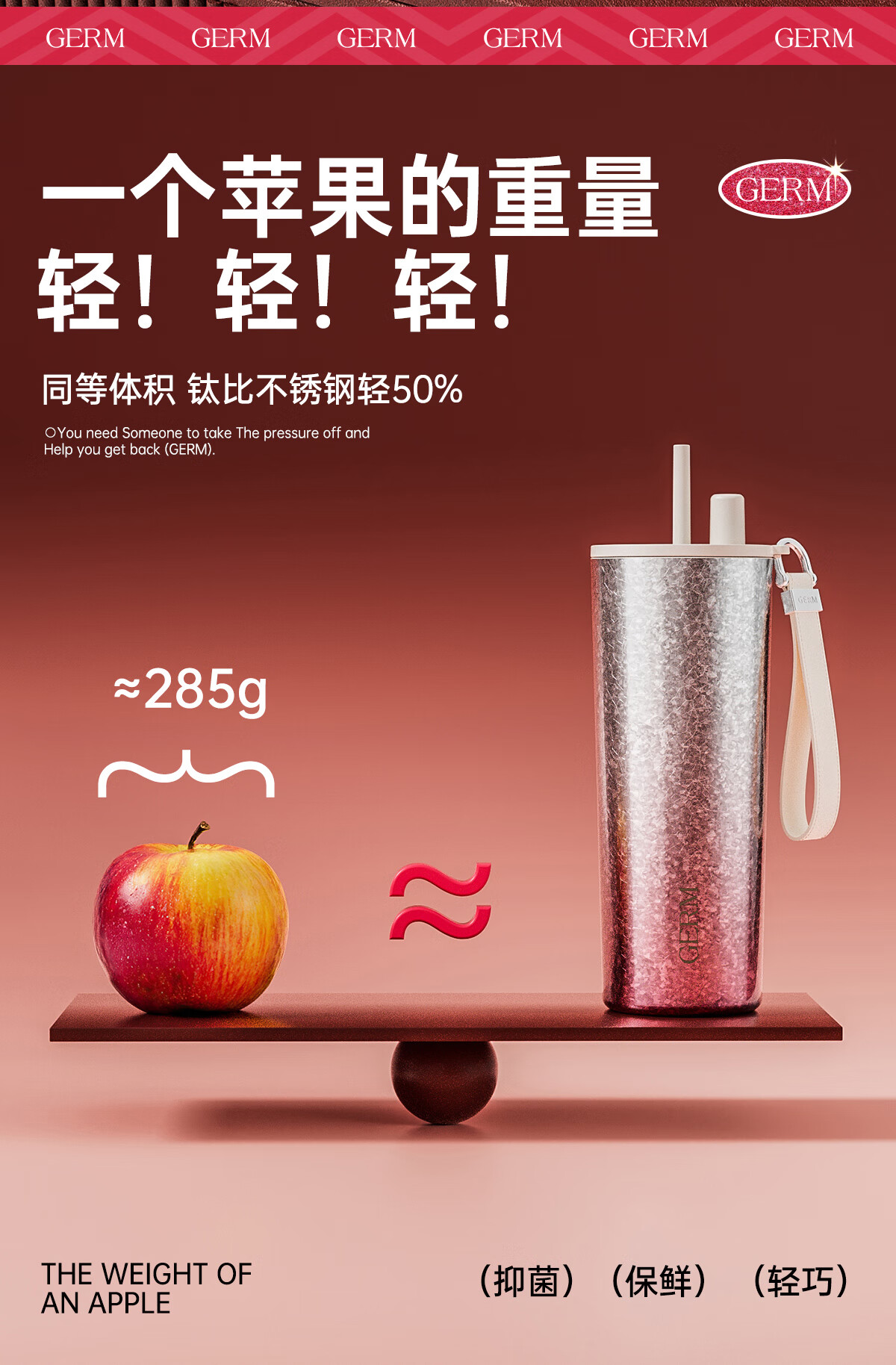 格米(germ)星运双层纯钛吸管保温杯高颜值水杯女士礼物水壶大容量车载杯子 星运钛杯礼盒【月夜暮粉】500ML