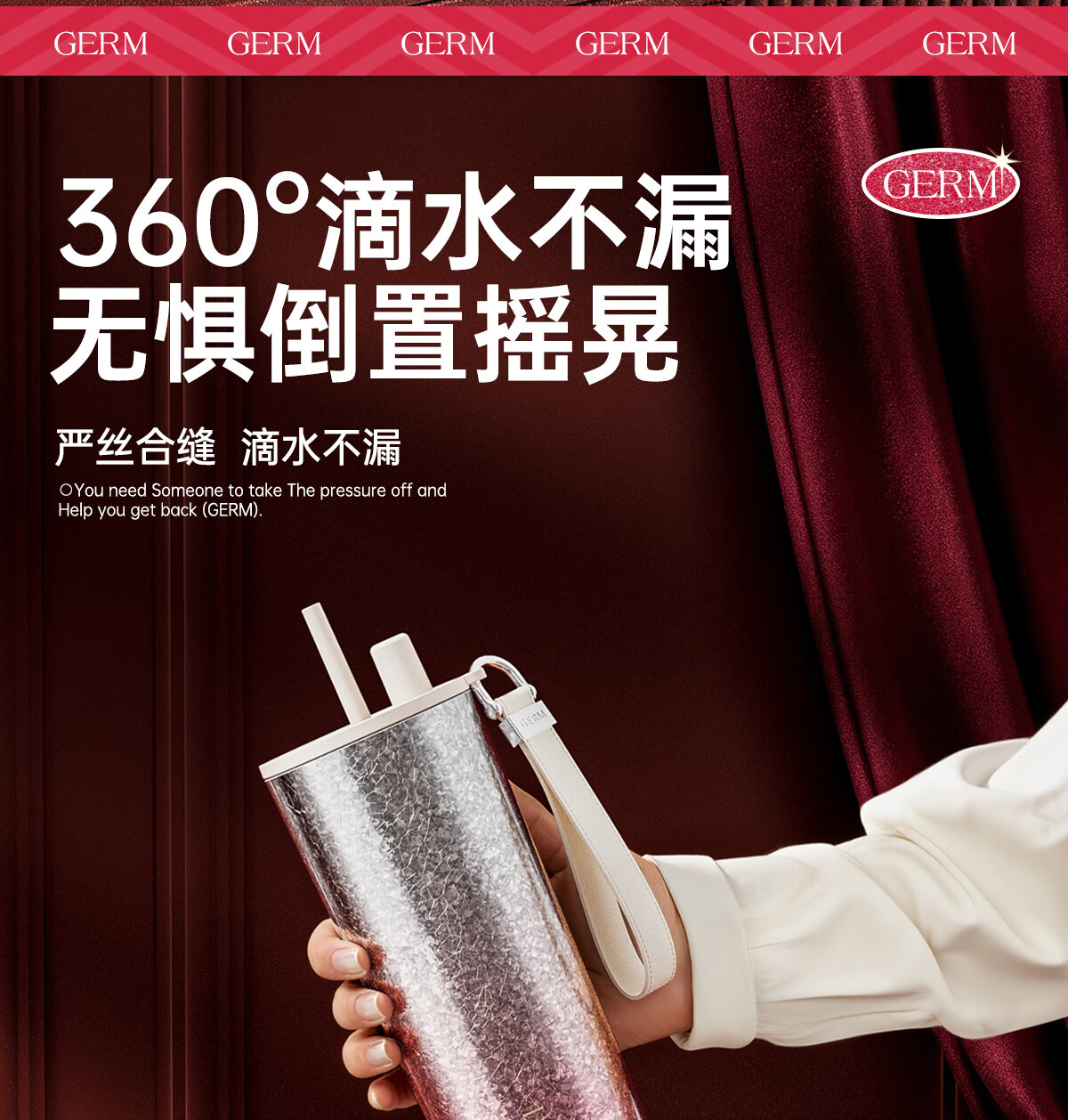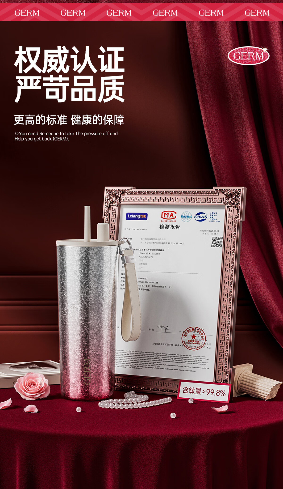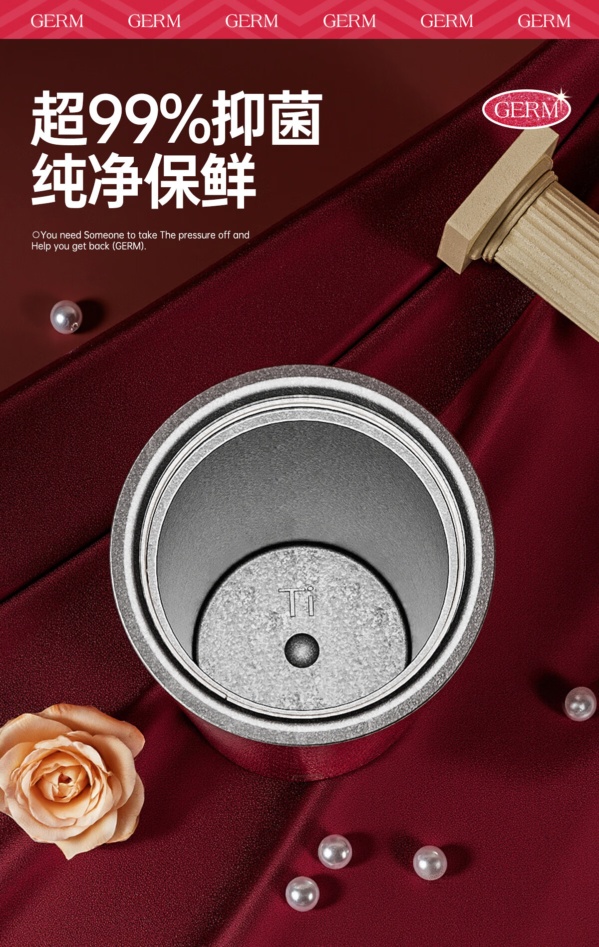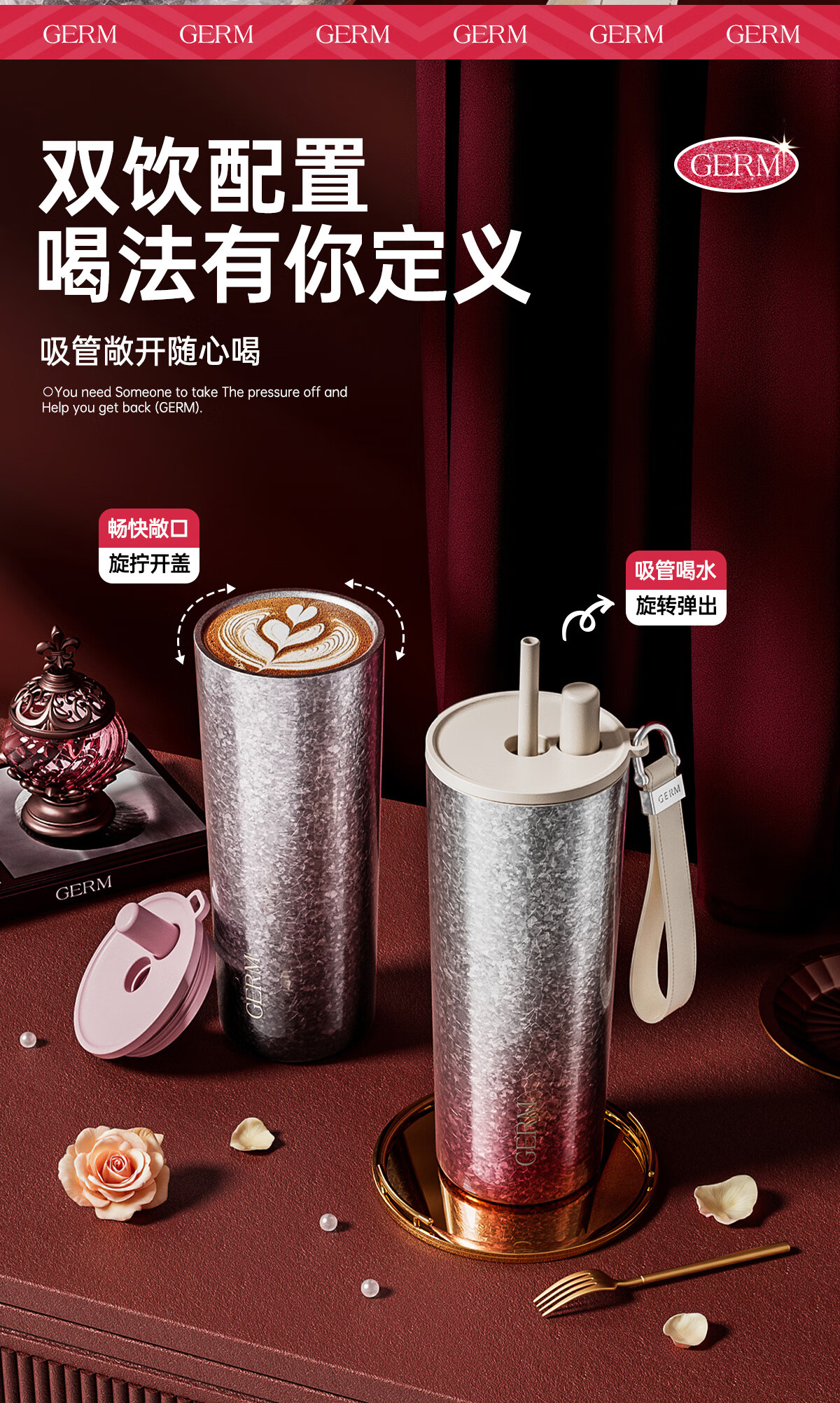 格米(germ)星运双层纯钛吸管保温杯高颜值水杯女士礼物水壶大容量车载杯子 星运钛杯礼盒【月夜暮粉】500ML