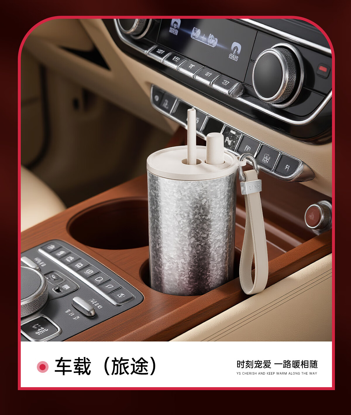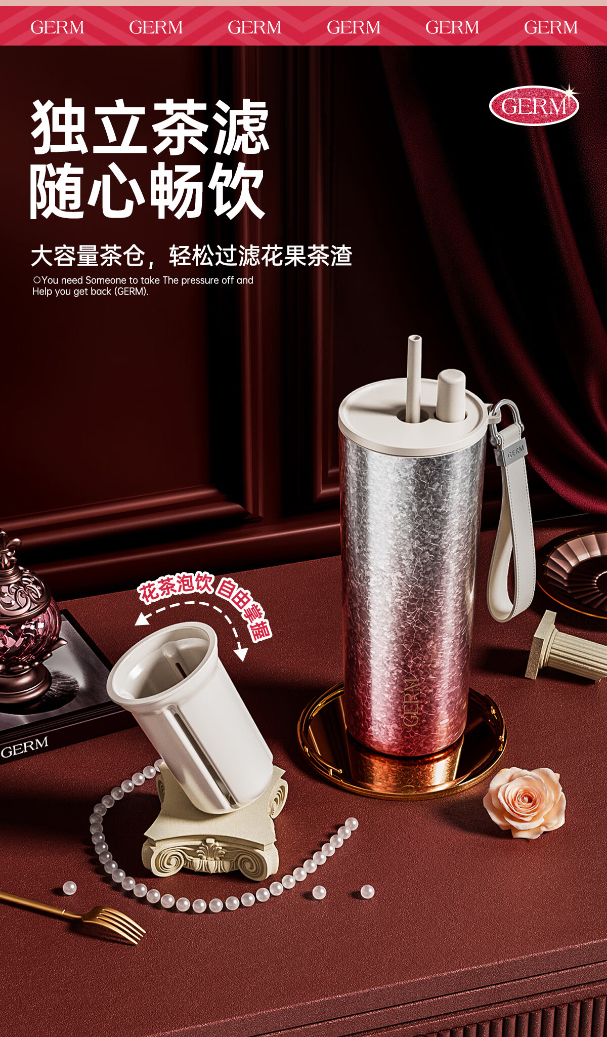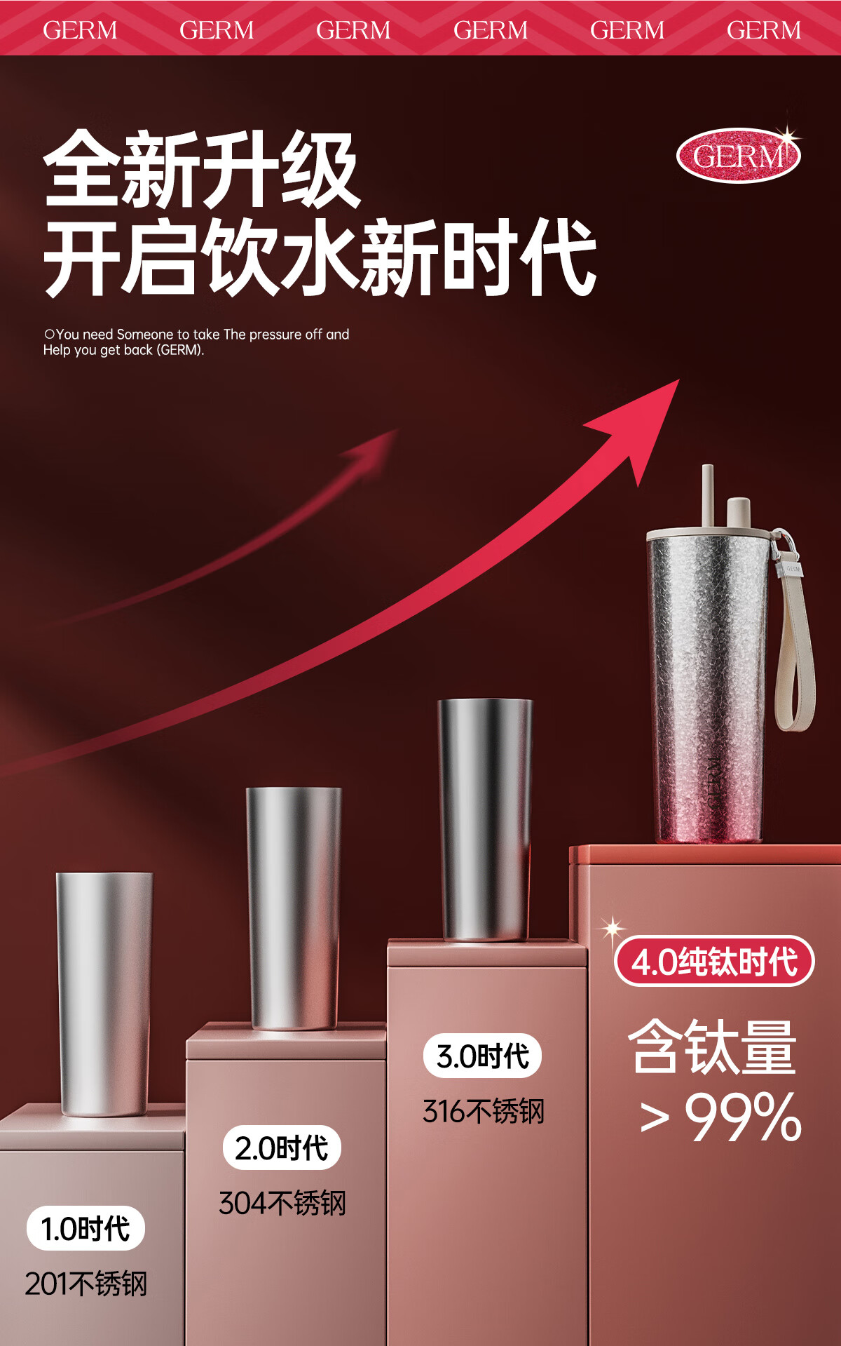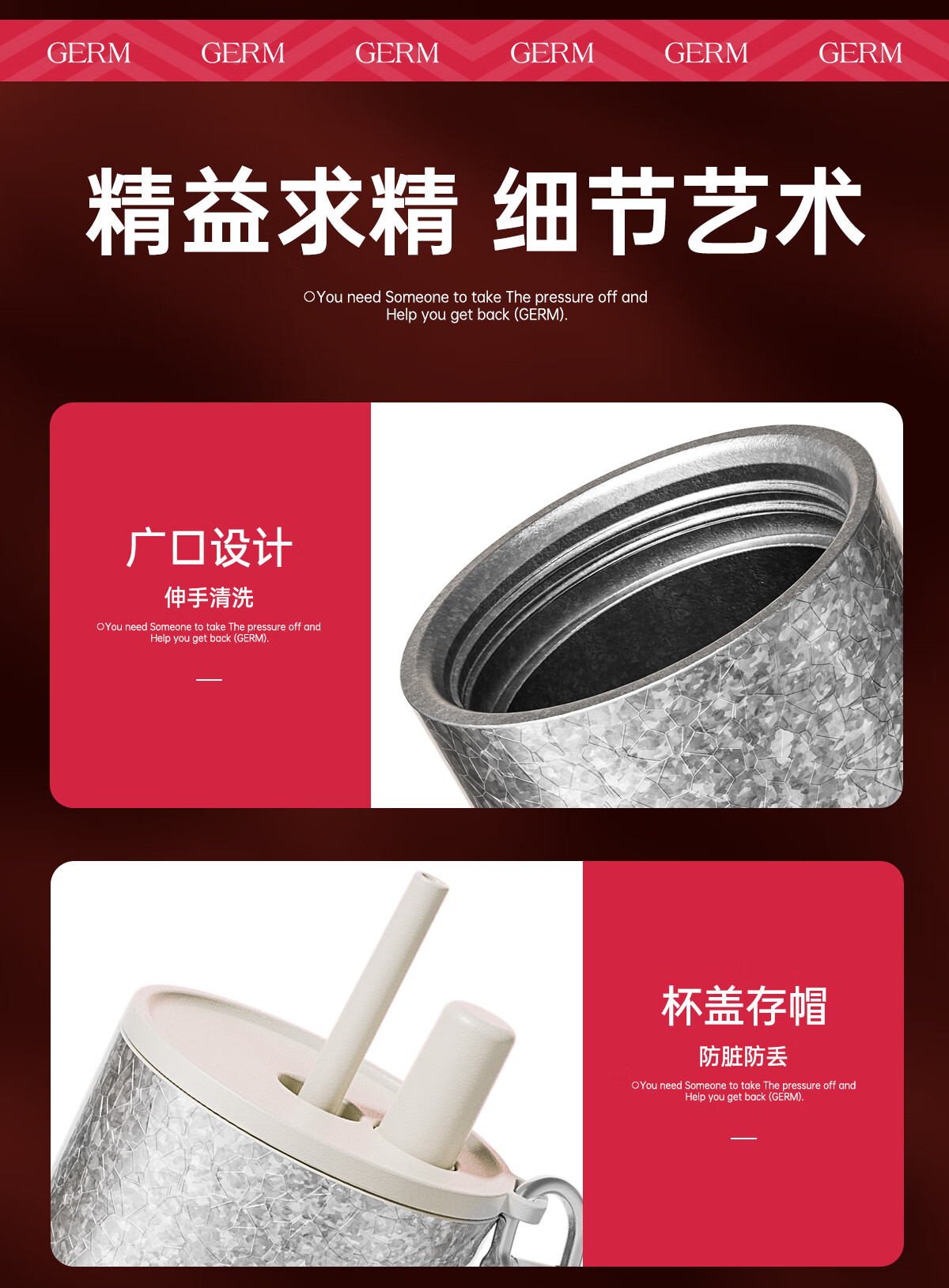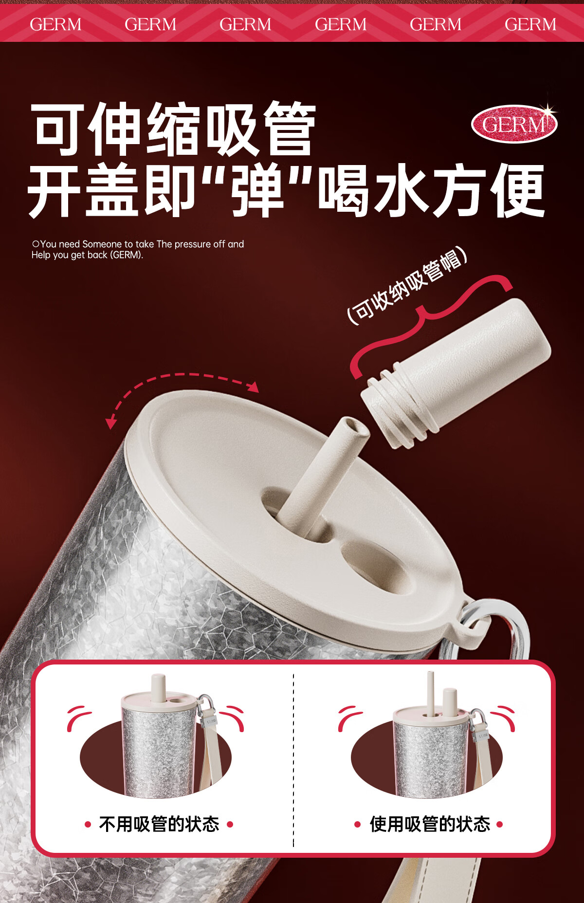 格米(germ)星运双层纯钛吸管保温杯高颜值水杯女士礼物水壶大容量车载杯子 星运钛杯礼盒【月夜暮粉】500ML