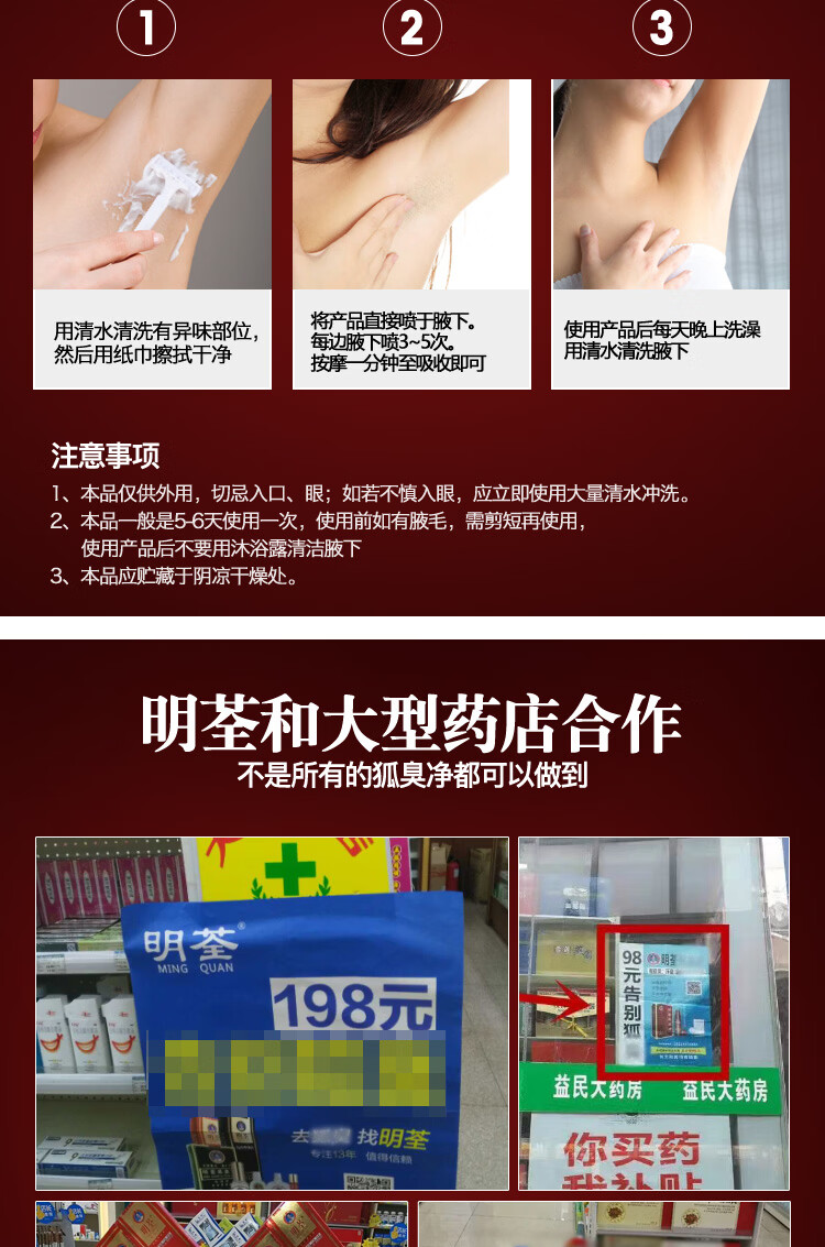 明荃狐臭净遗传重度祛腋下除臭止汗露喷雾剂去孤腋臭净味水异味男女士 三瓶套餐