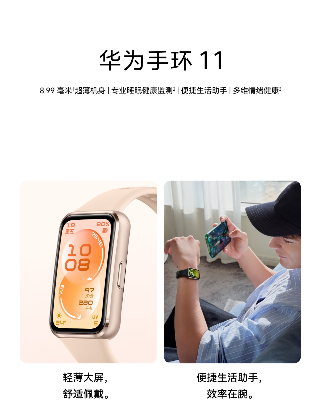 华为手环11 标准版 悦动白铝合金表壳1.62英寸流畅大屏专业睡眠健康监测实况窗信息抬腕即知手环10升级