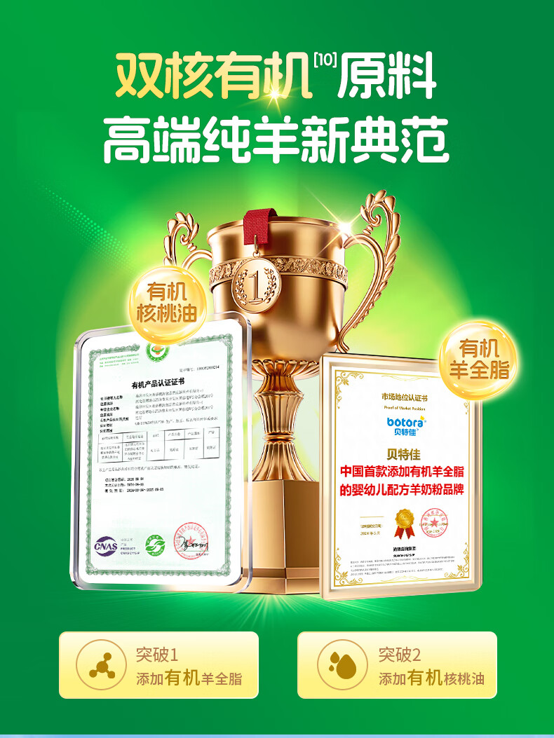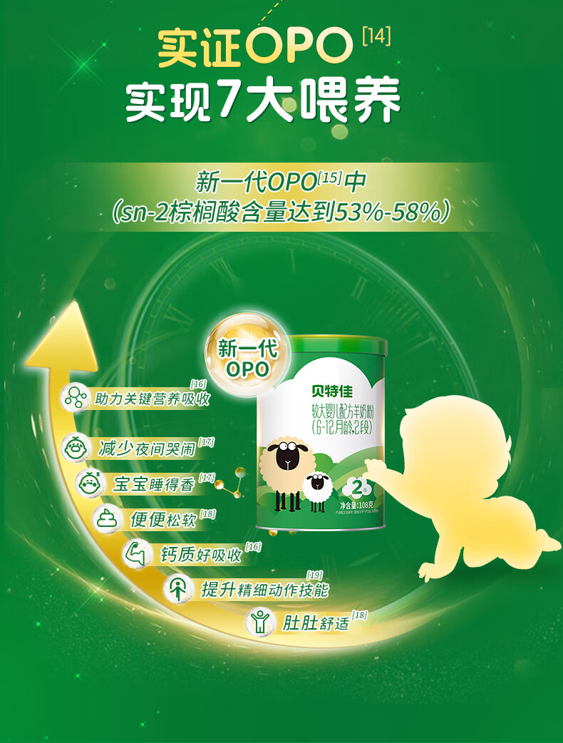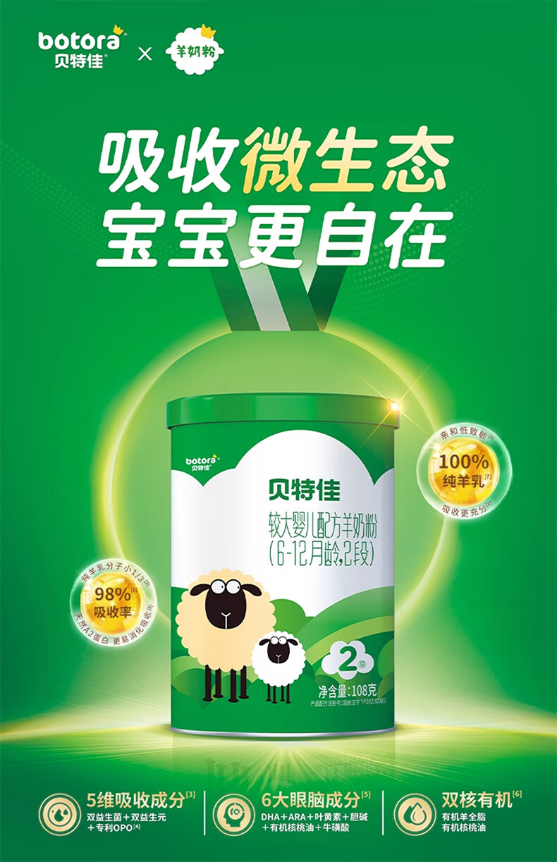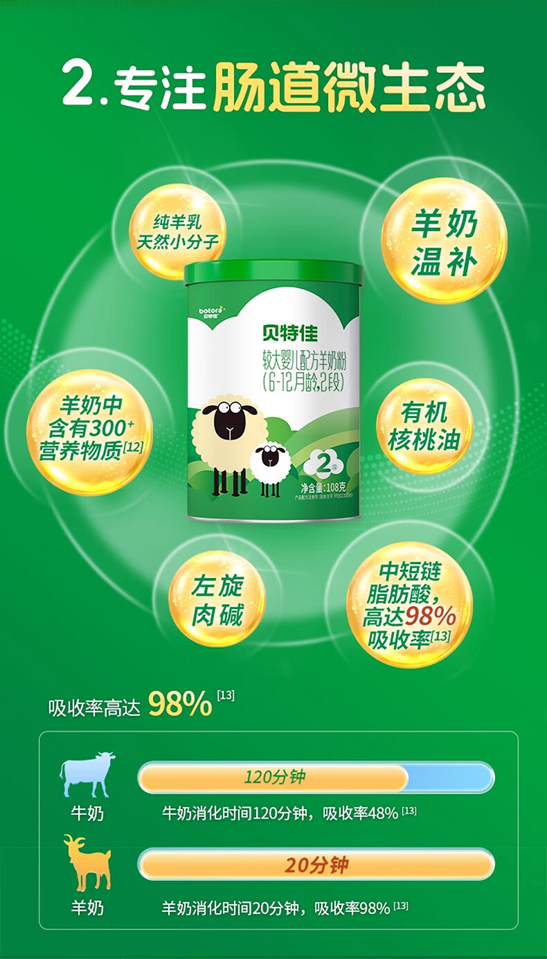 贝特佳羊奶粉较大婴儿配方羊奶粉2段二段(6-12月)罐装新国标奶粉108g