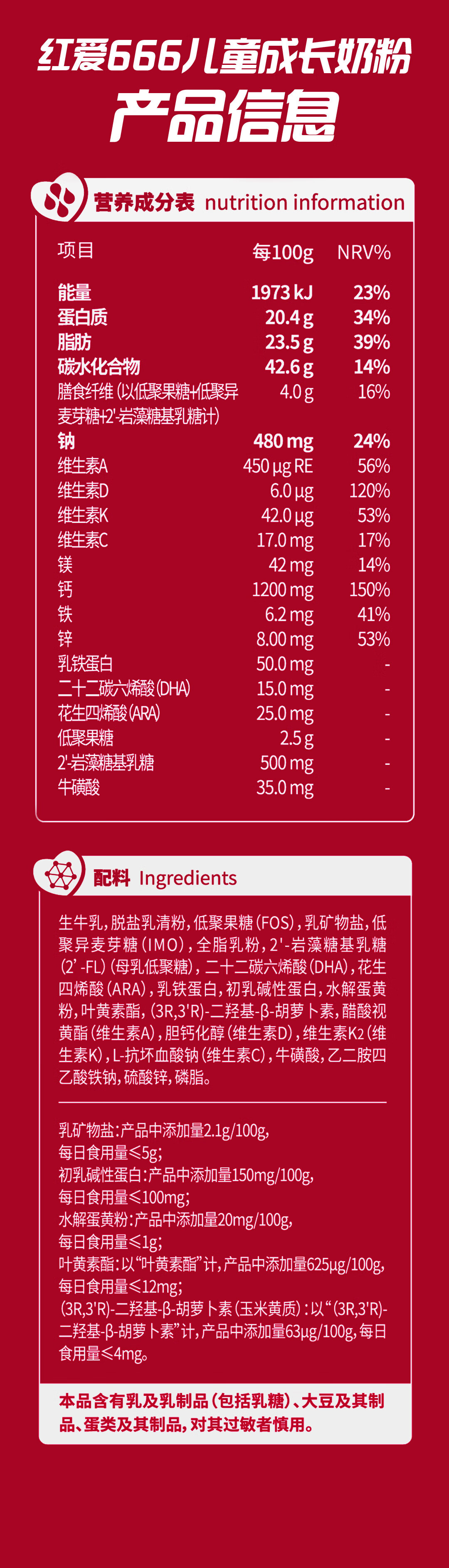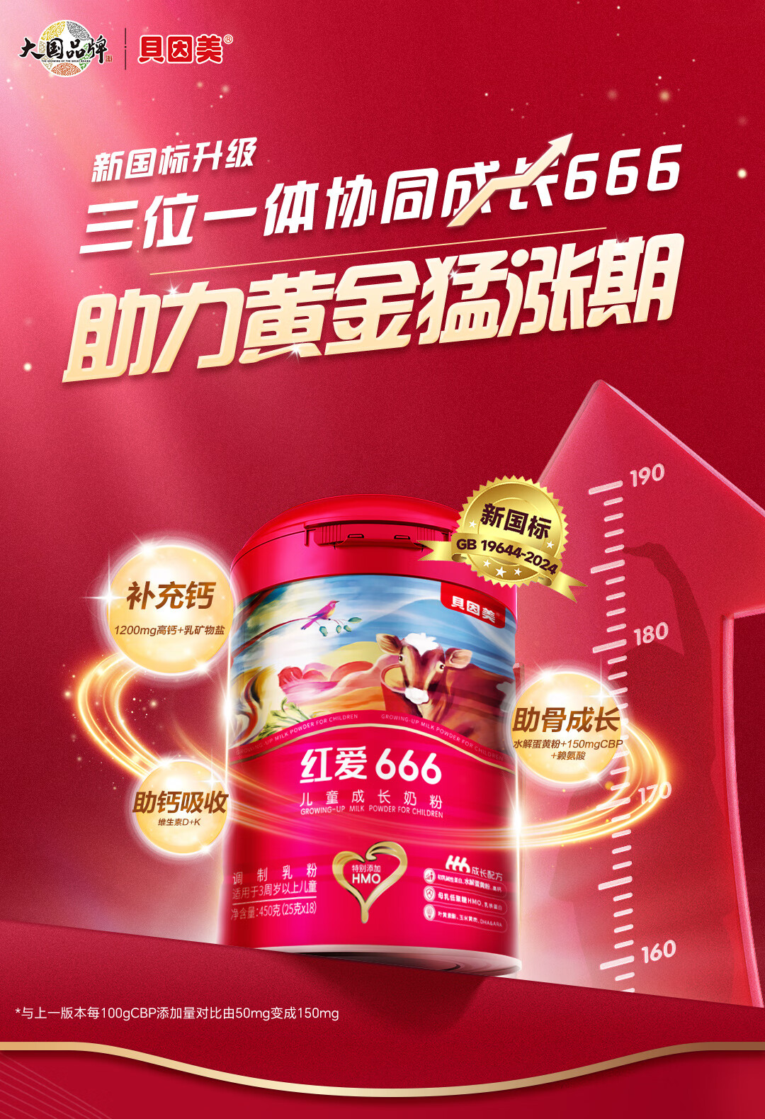 贝因美【老爸抽检】红爱666儿童成长奶粉450g 3-15岁含HMO+CBP