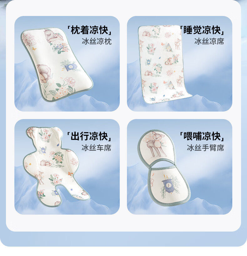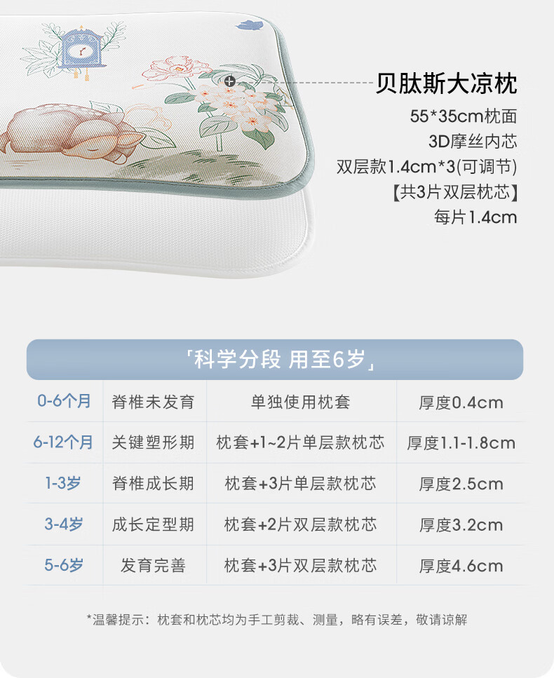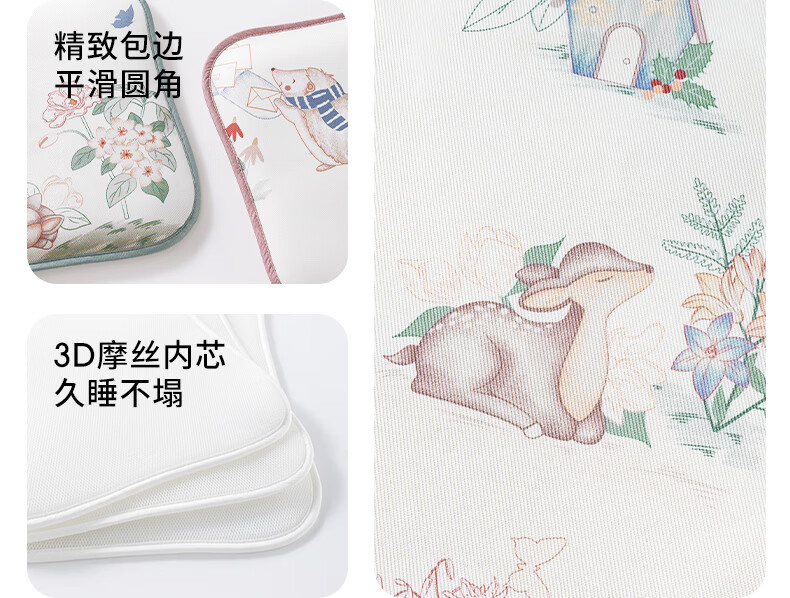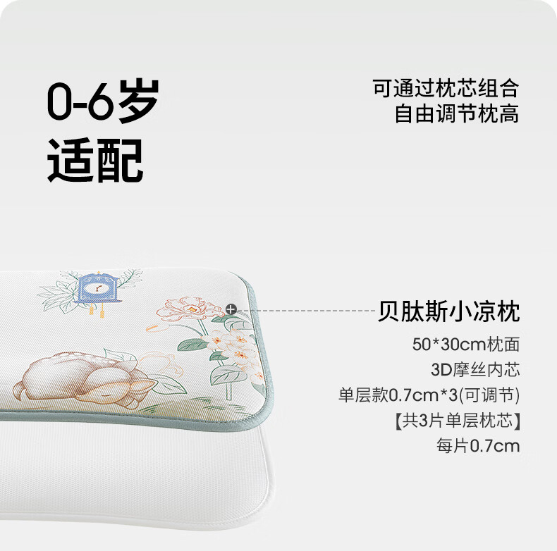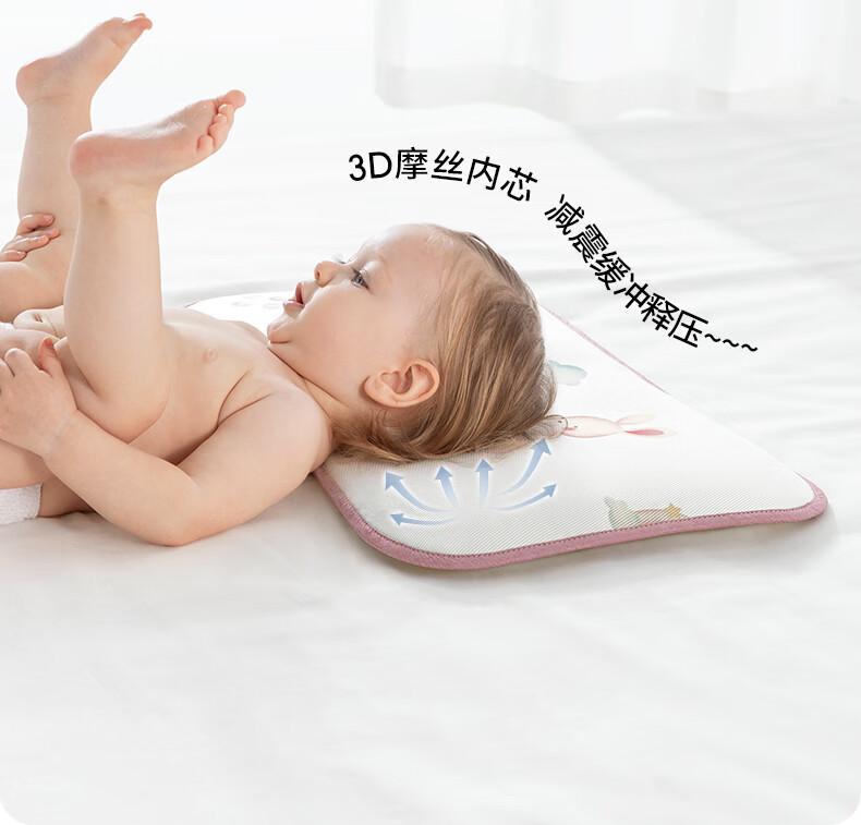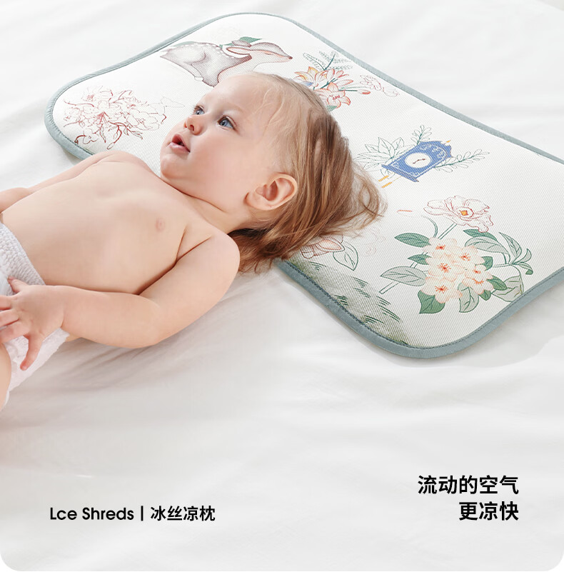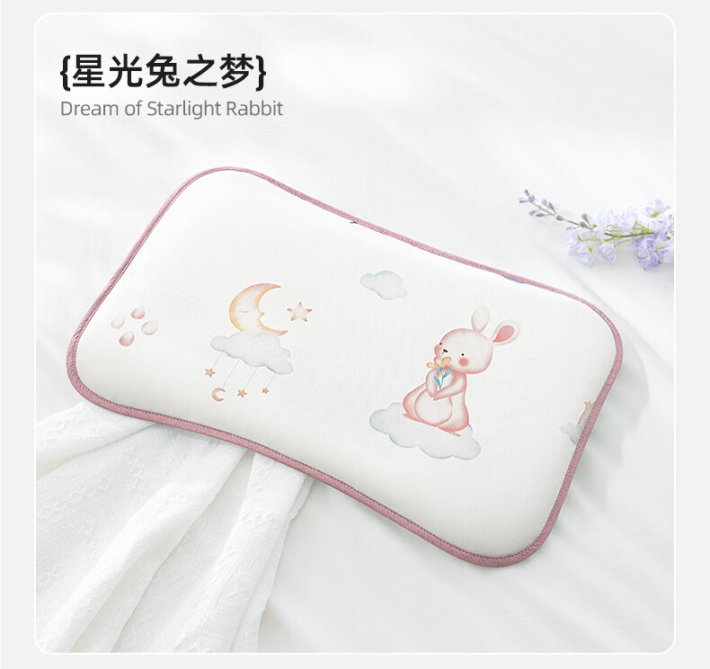 贝肽斯婴儿枕头夏季冰丝凉枕护颈透气0-3-6岁儿童枕头新生宝宝 星光兔之梦【0-3岁】【50*30cm】