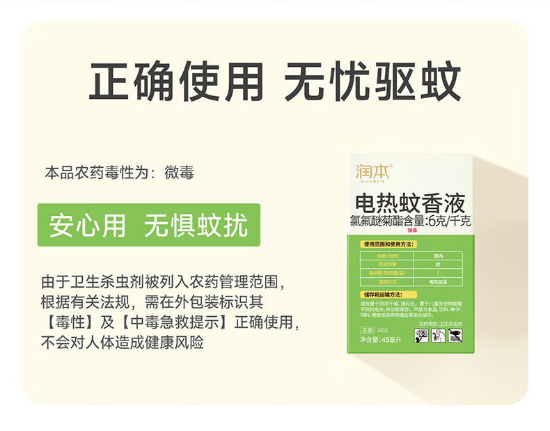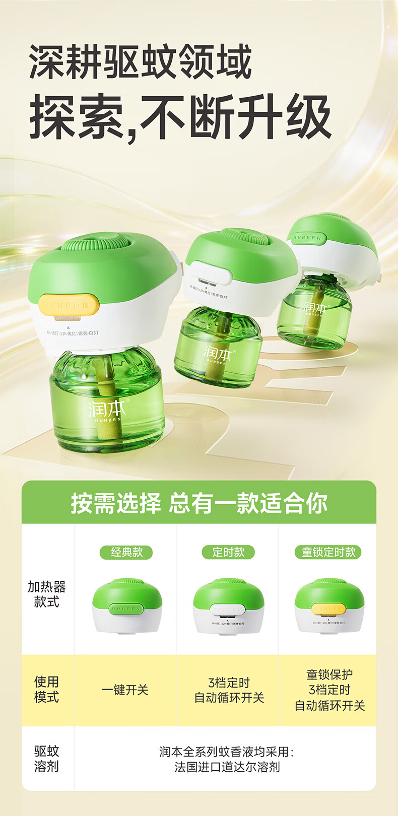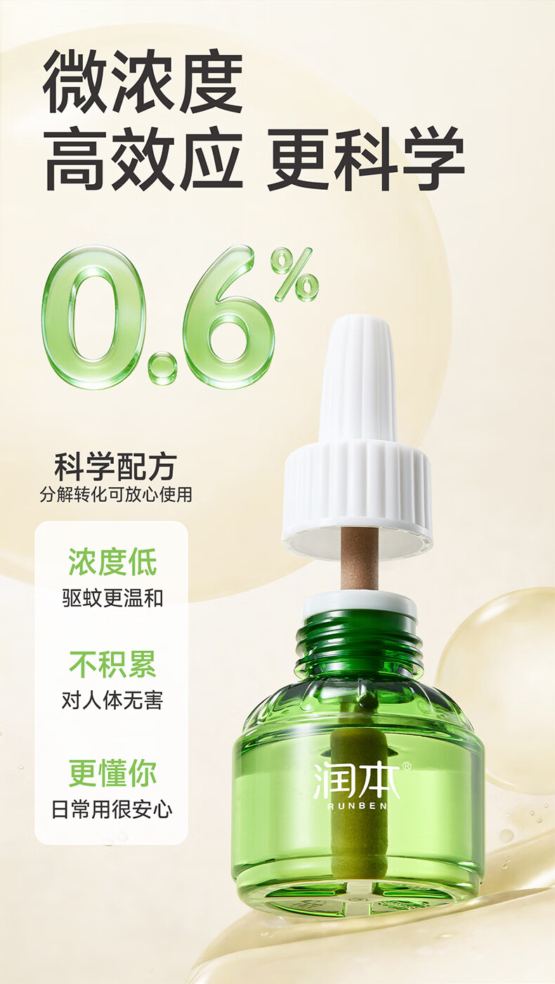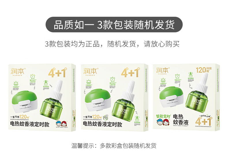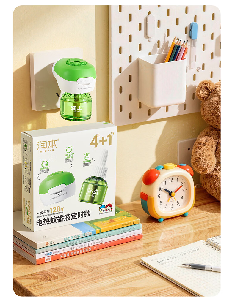润本蚊香液电蚊香液驱蚊液45ml*4瓶+1个定时加热器驱蚊防蚊蚊香无香型