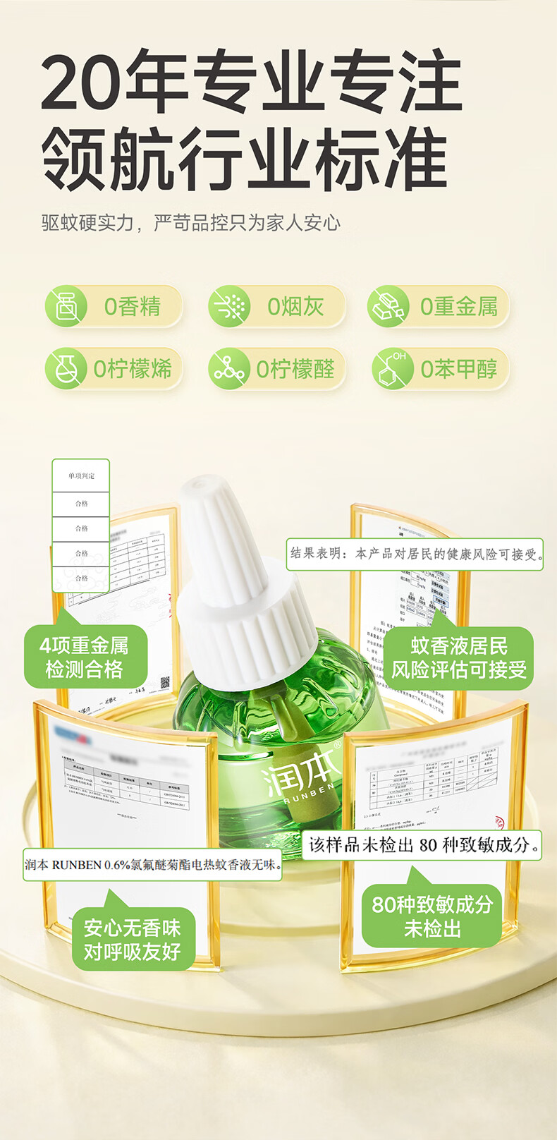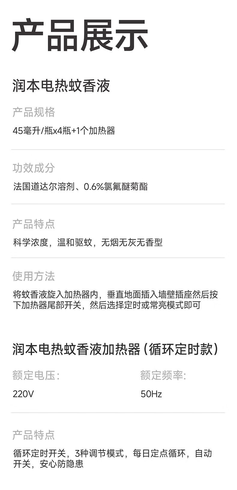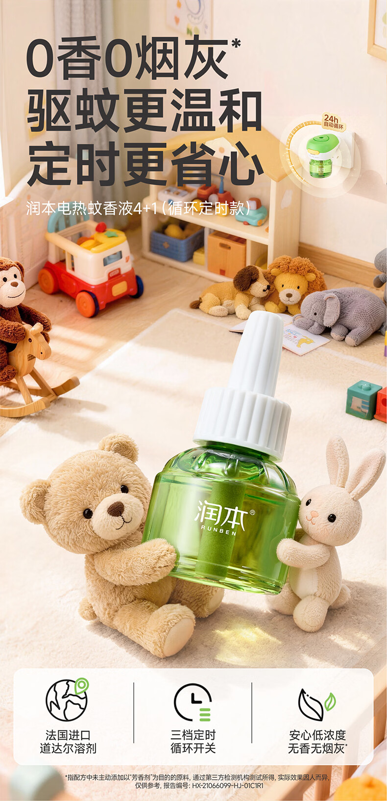 润本蚊香液电蚊香液驱蚊液45ml*4瓶+1个定时加热器驱蚊防蚊蚊香无香型