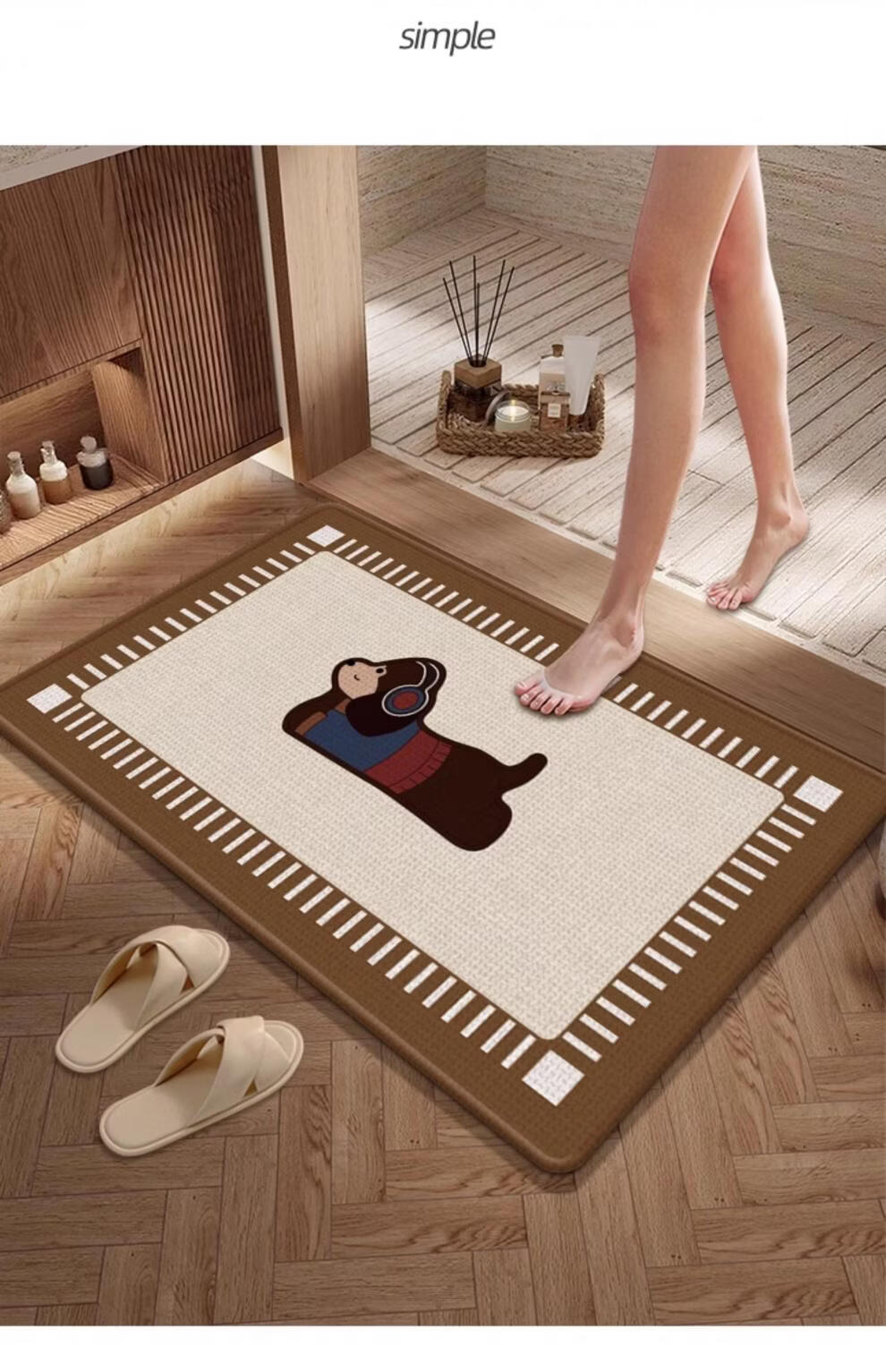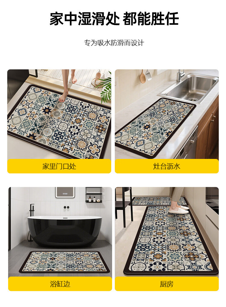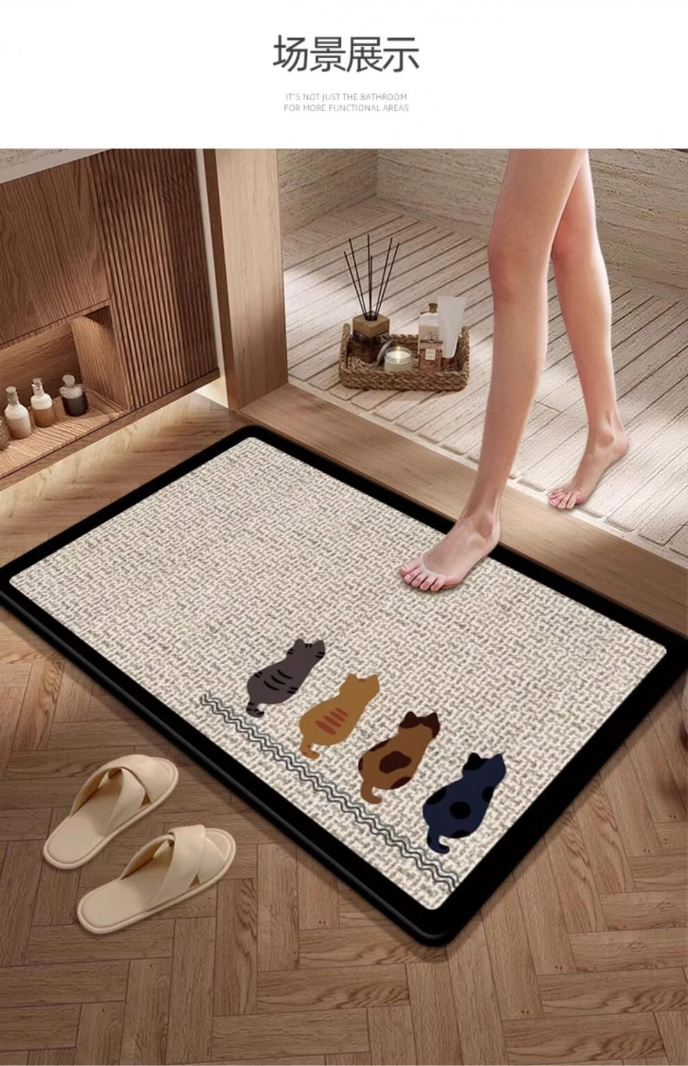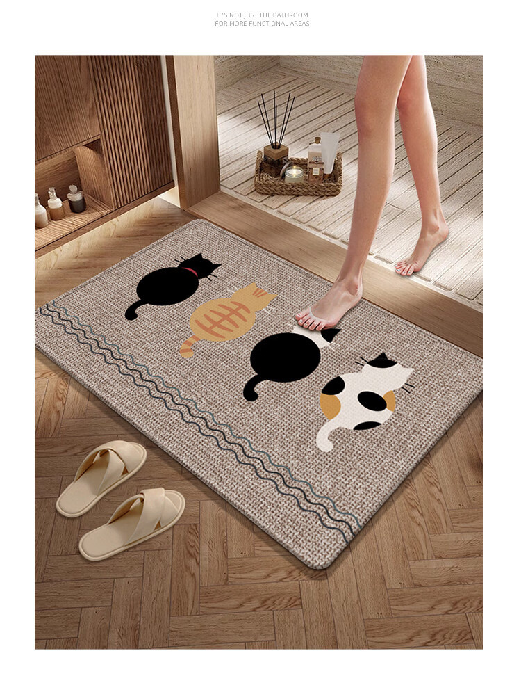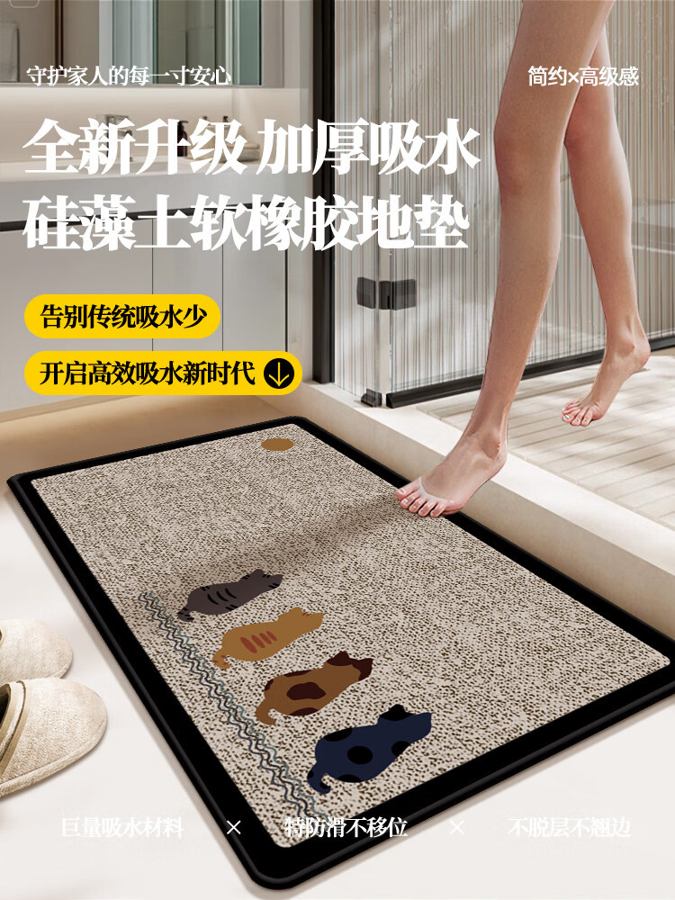 DONOYA 多罗亚硅藻泥卫生间地垫浴室门口吸水地垫卫生间门口吸水防滑垫脚垫可裁 长方形-卫-望月猫 40cm*60cm 厚4mm【包边+海量吸水】升级款