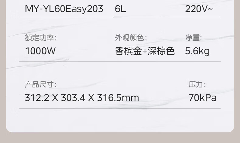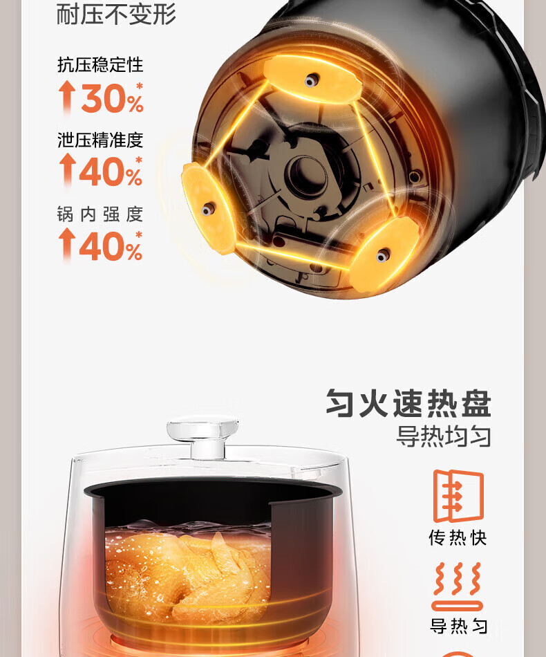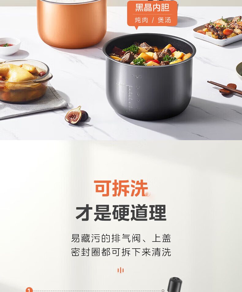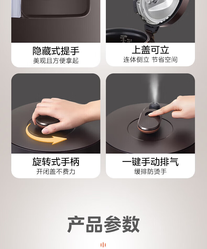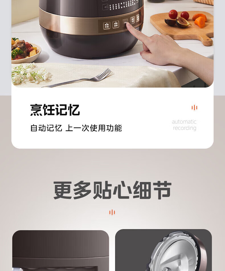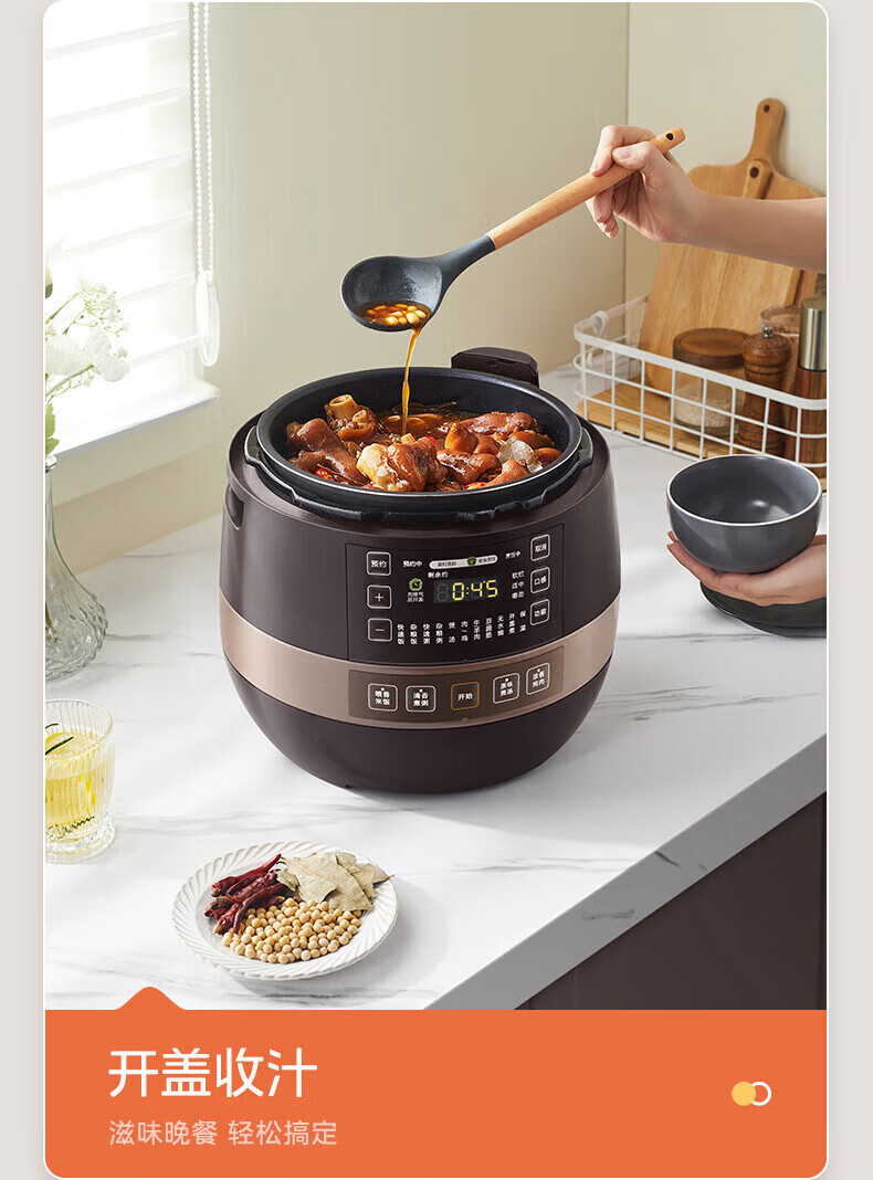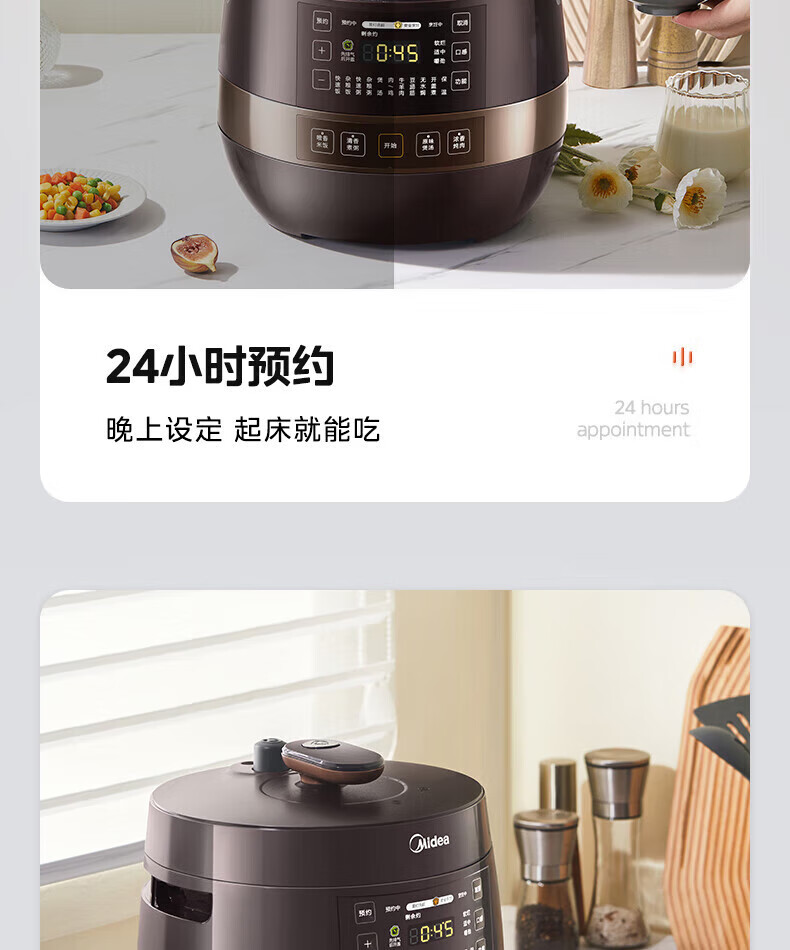 美的(Midea)电压力锅电高压锅6升大容量5-6-10人家用电饭煲高压电饭锅电压力蒸锅炖蒸煮一体一锅双胆煲汤锅 6升【70Kpa高压】口感可调 6L
