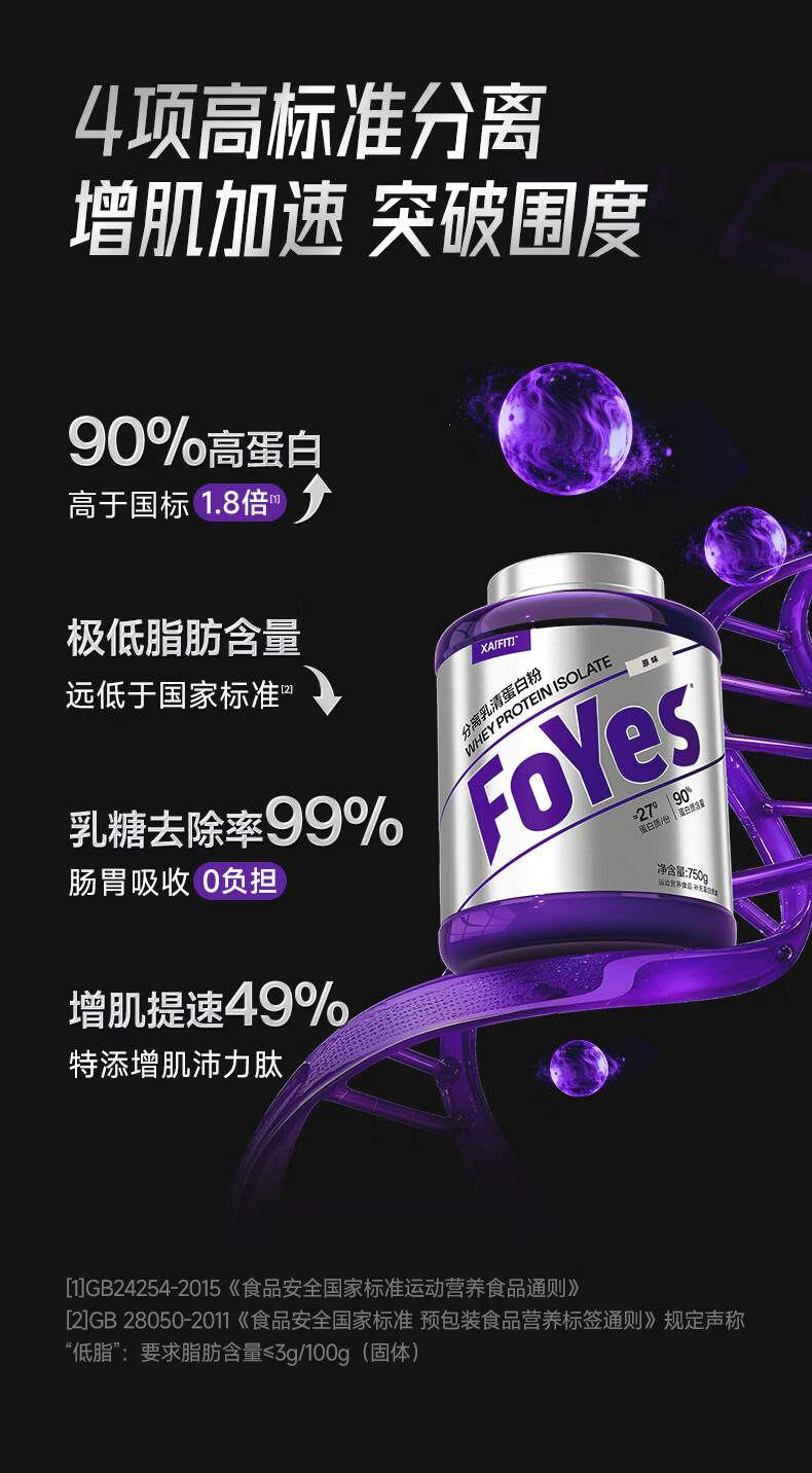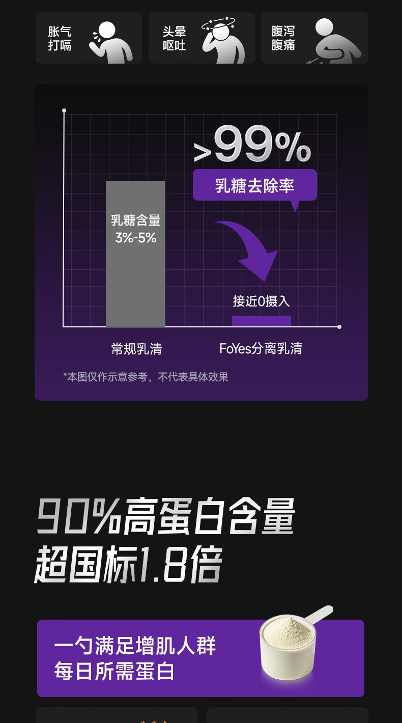 Foyes精准分离乳清蛋白粉90%高蛋白低乳糖不耐运动健身增肌蛋白粉