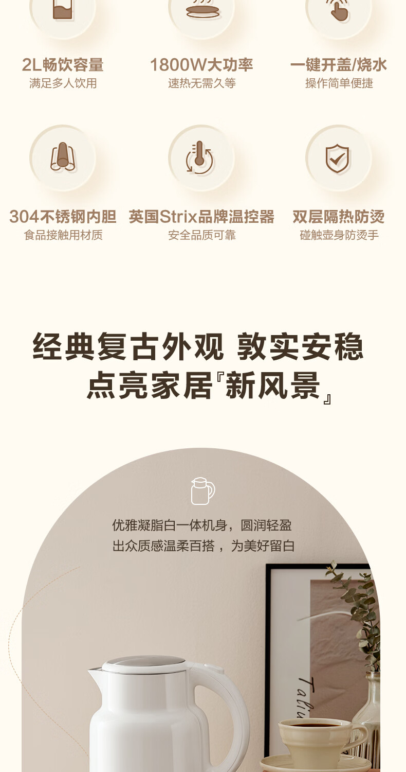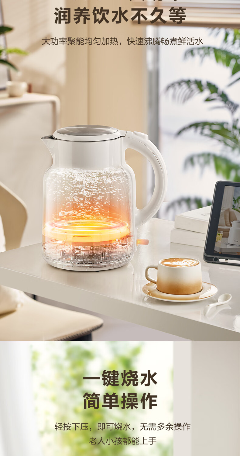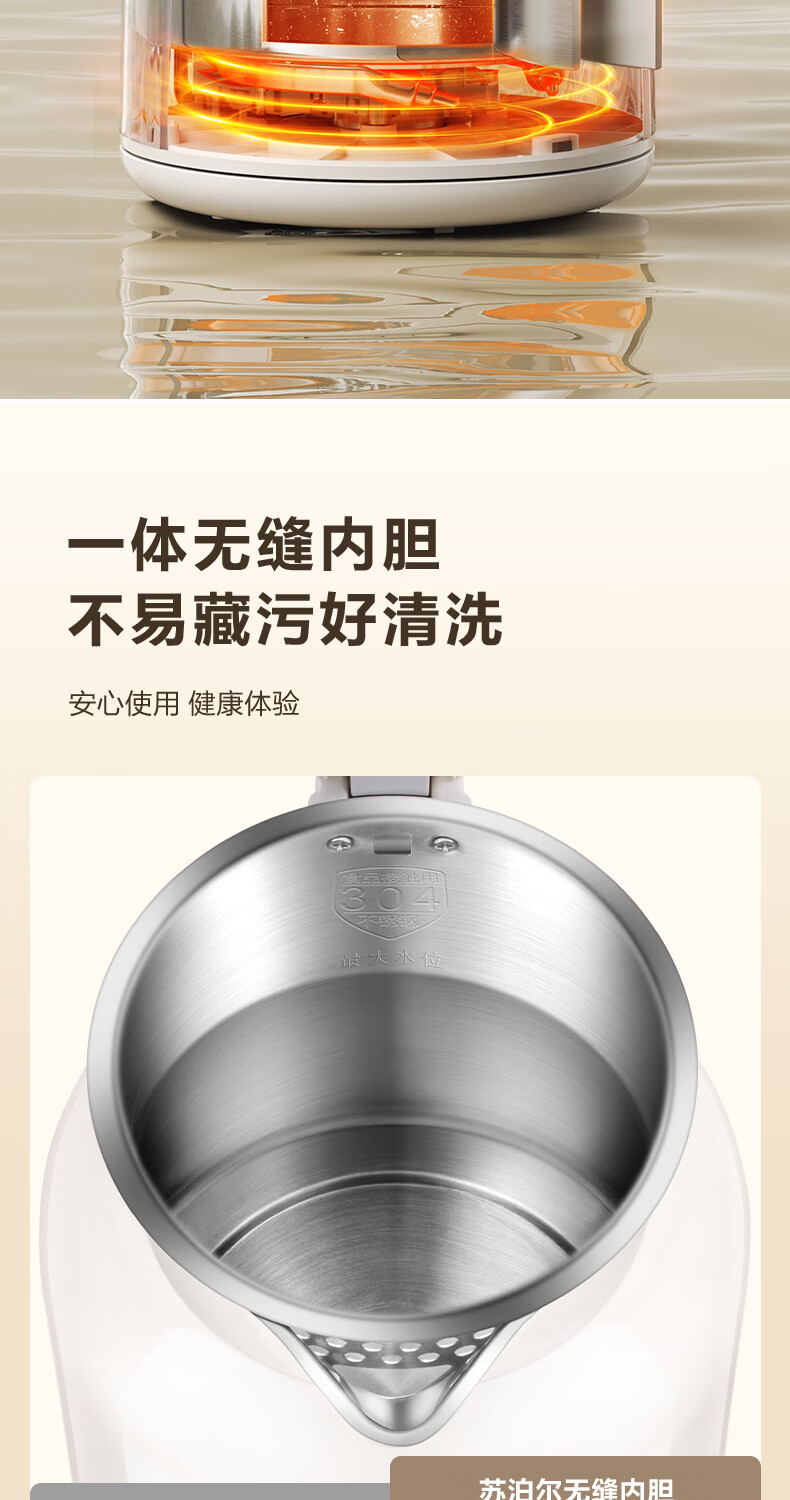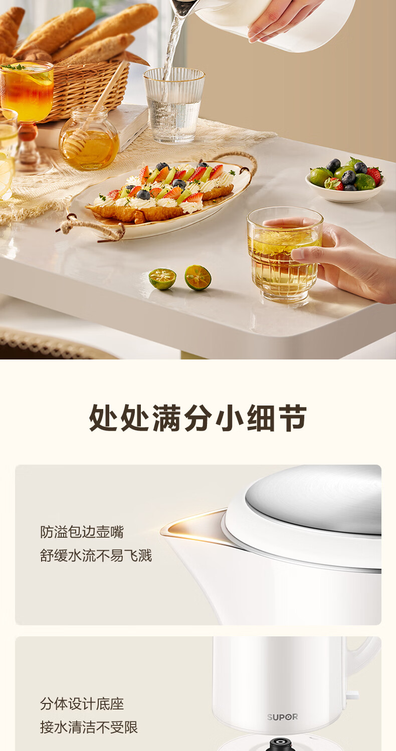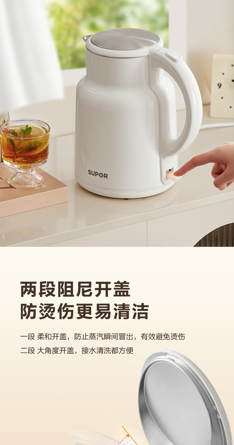 苏泊尔(SUPOR)吨吨大容量电水壶热水壶 2L大容量全钢无缝电热水壶 304不锈钢烧水壶 SW-20T06A