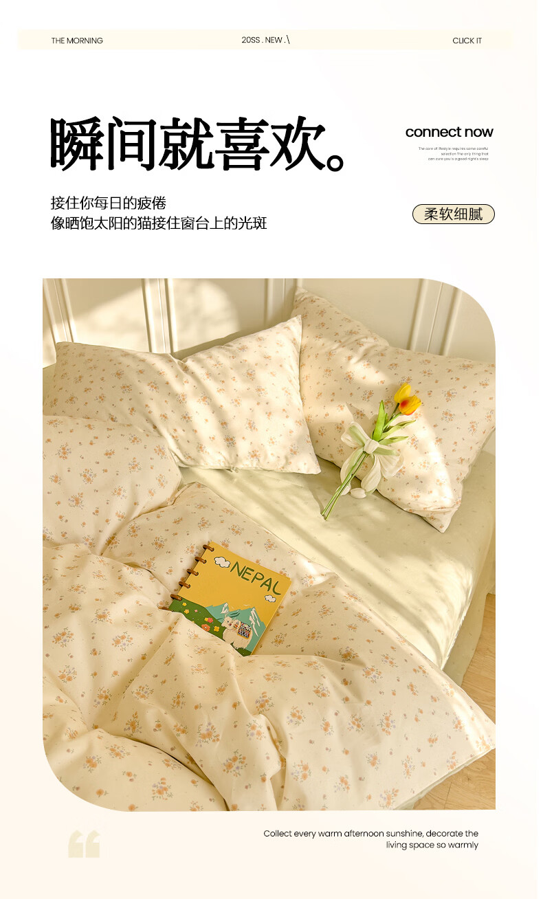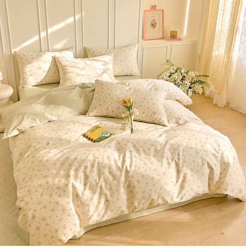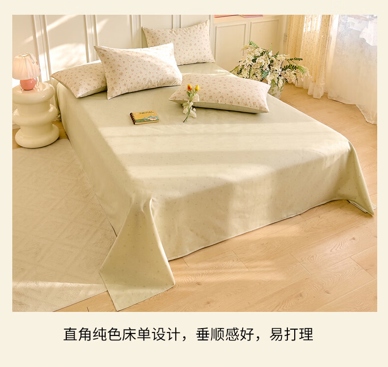 无印良品小清新纯棉床品套件四件套全棉2026新款被套床笠床单款宿舍三件套 樱草恋歌【全棉面料 柔软细腻】 1.8m 床单款 四件套-被套200x230cm