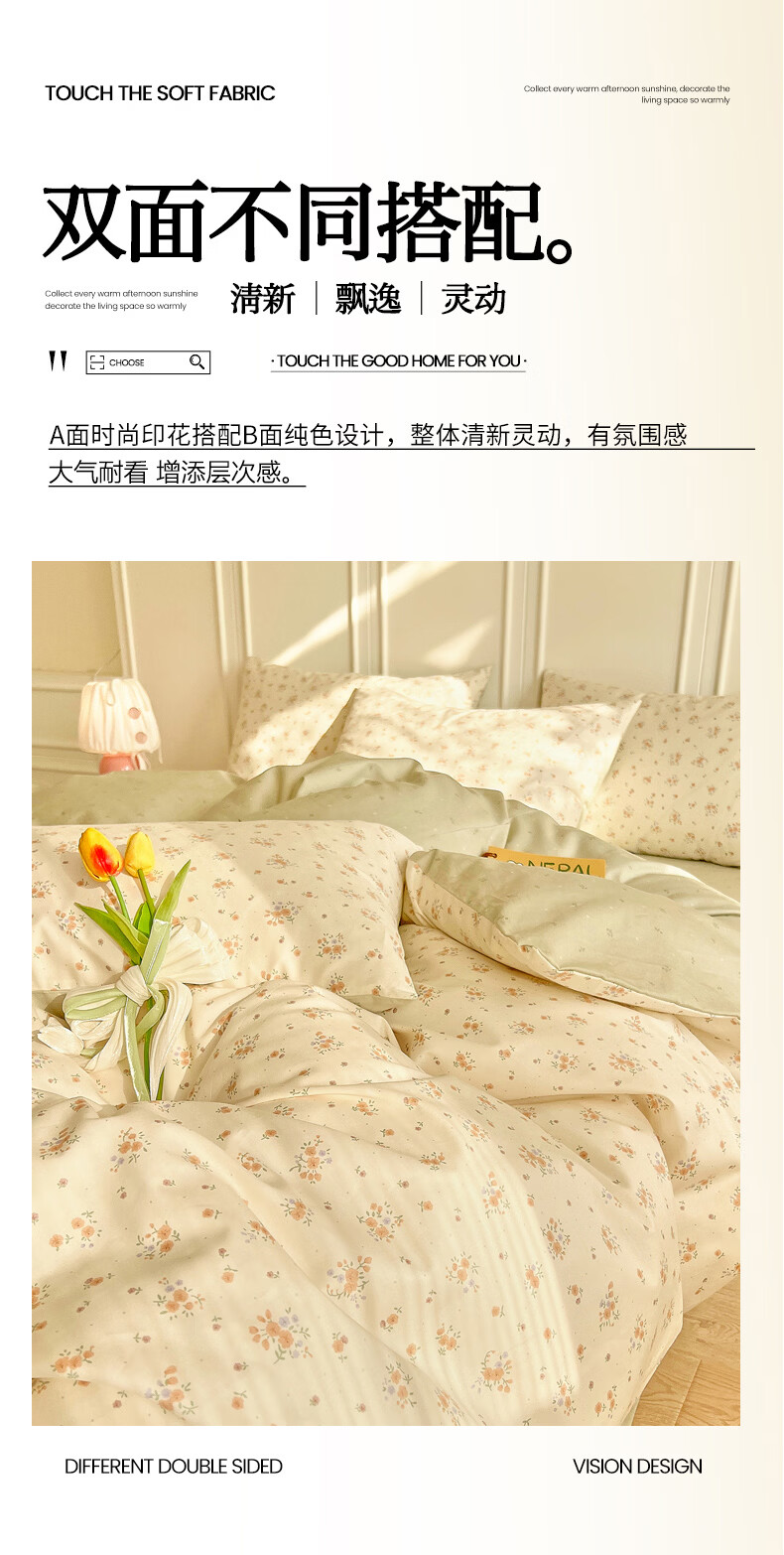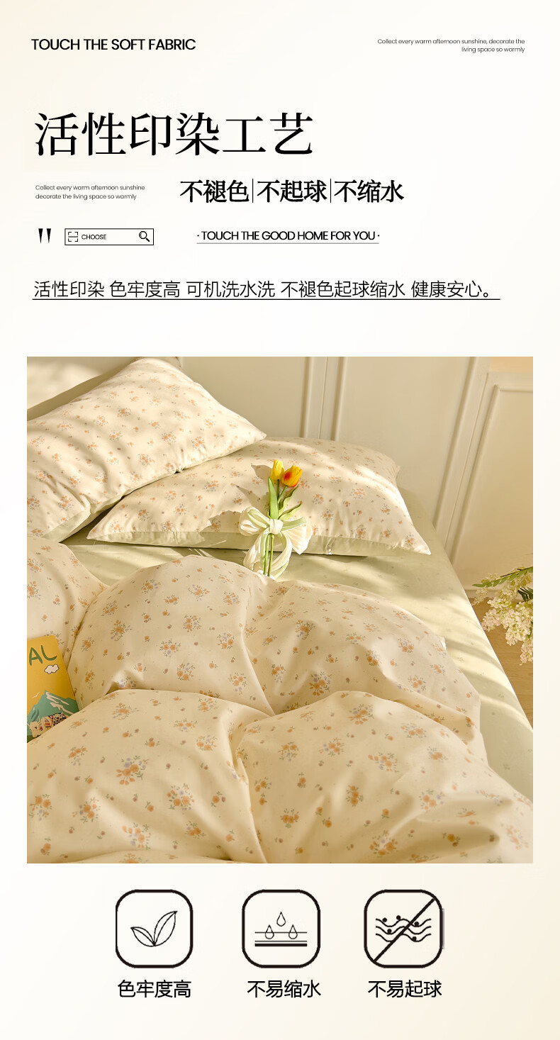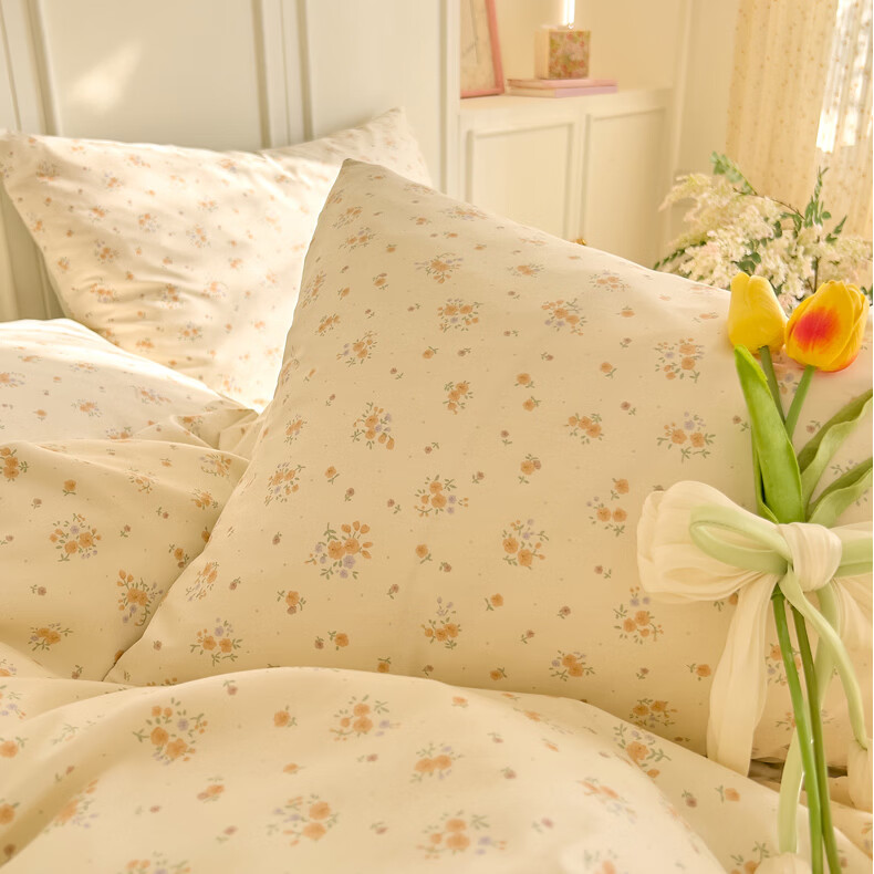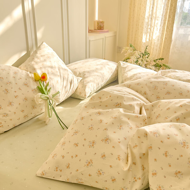 无印良品全棉床品四件套纯棉100%小清新花卉风单双人四季通用可裸睡三件套 苏屿【全棉面料 清新印花】 1.8m 床单款 被套200*230cm