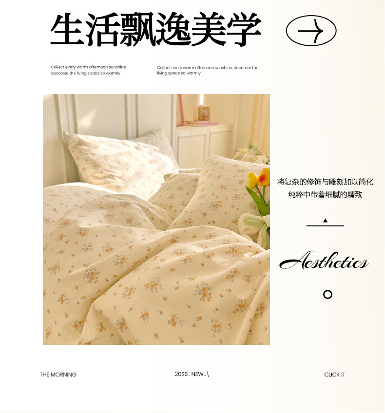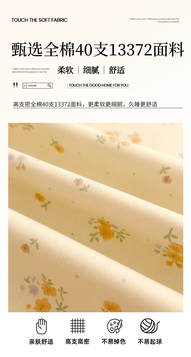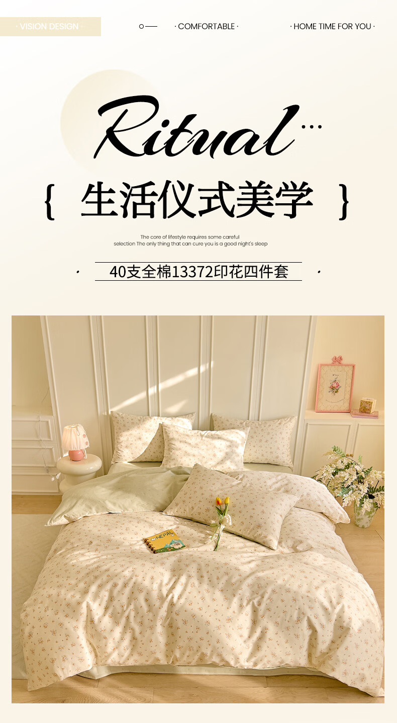 无印良品全棉床品四件套纯棉100%小清新花卉风单双人四季通用可裸睡三件套 苏屿【全棉面料 清新印花】 1.8m 床单款 被套200*230cm