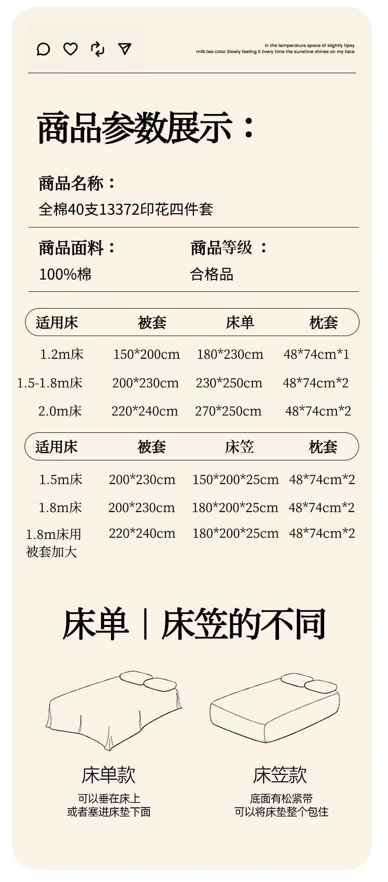 名创优品(MINISO)纯棉床笠1.8米x2米 全棉床笠罩床垫保护套被单枕套三件套 全棉-香槟 90cm*200cm 单床笠