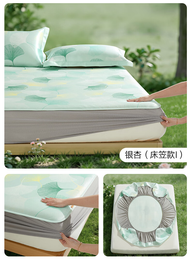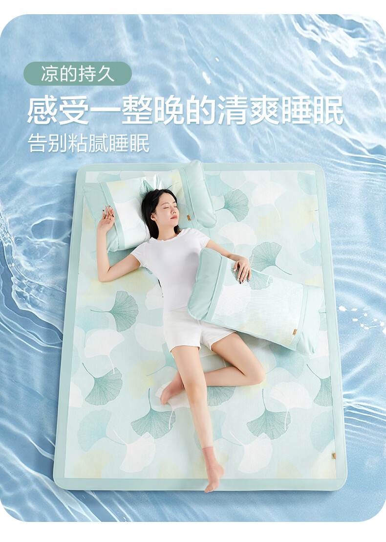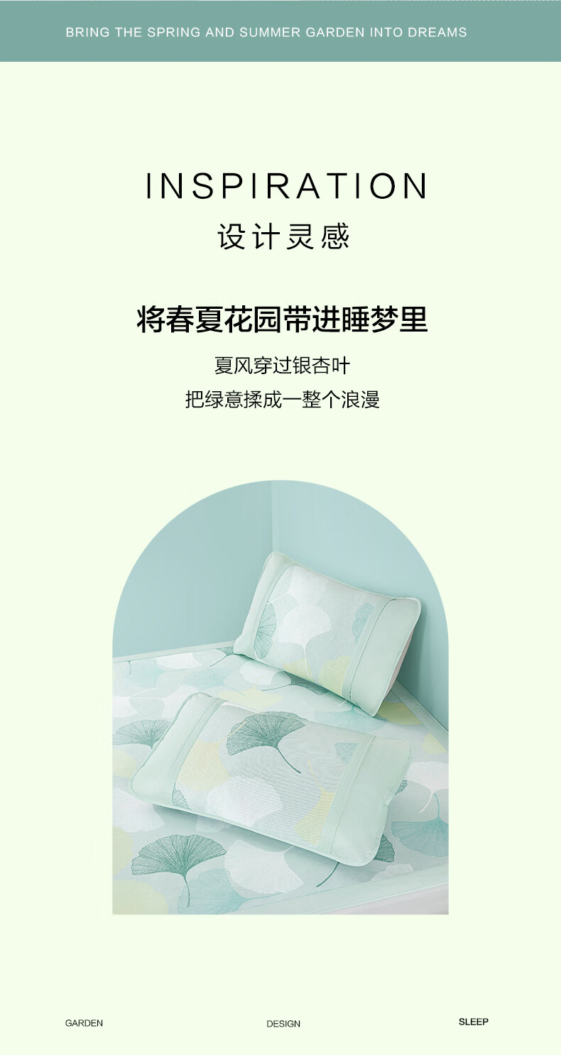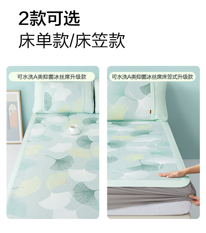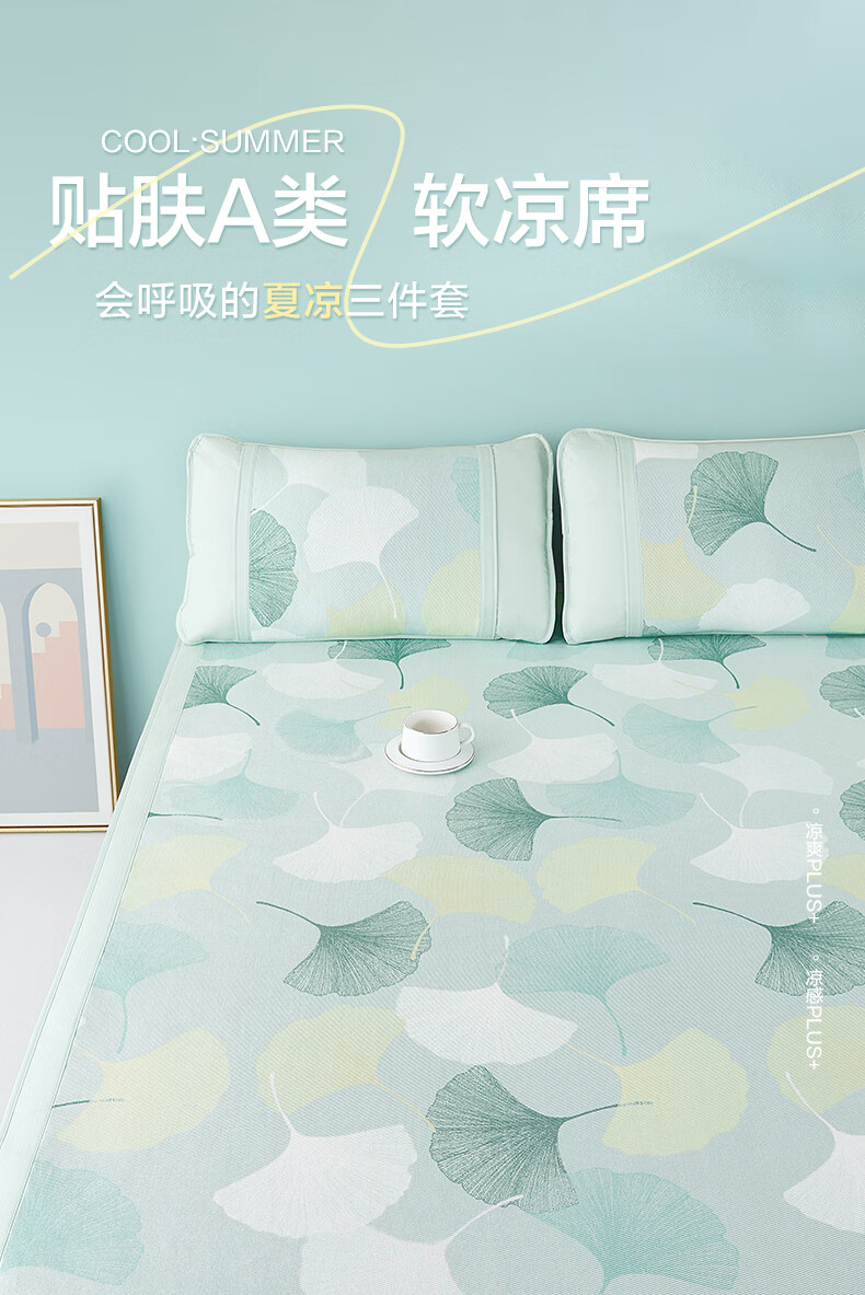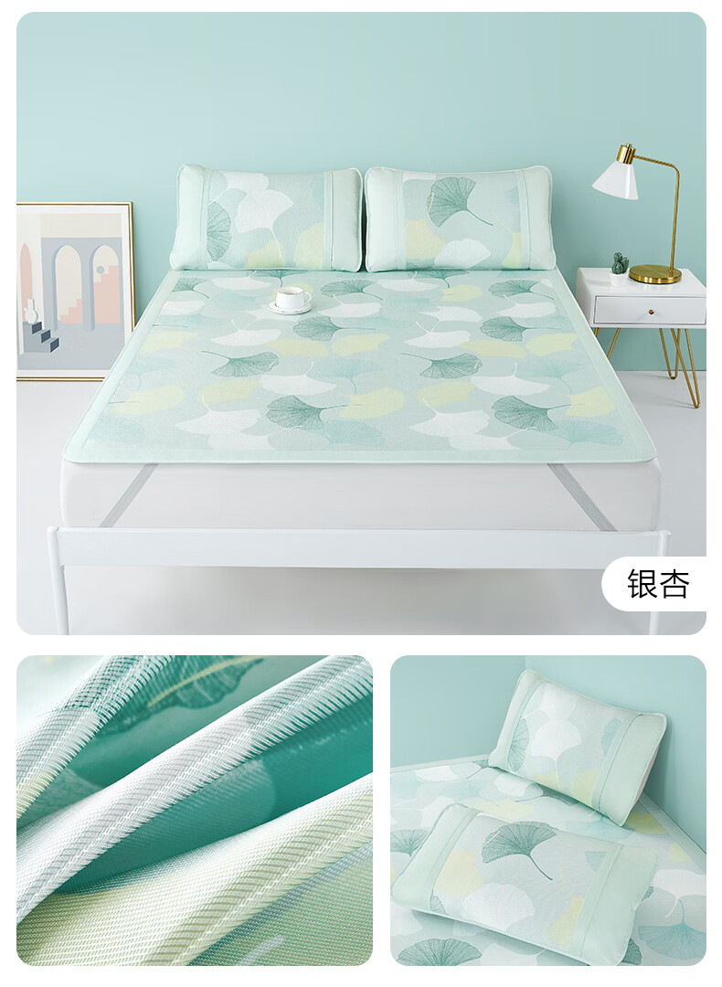 博洋(BEYOND)博洋印花可水洗冰丝席子夏软凉席二三件套可折叠冰丝席单双人夏季 【可水洗+A类】凉感软凉席-银杏 90*200cm