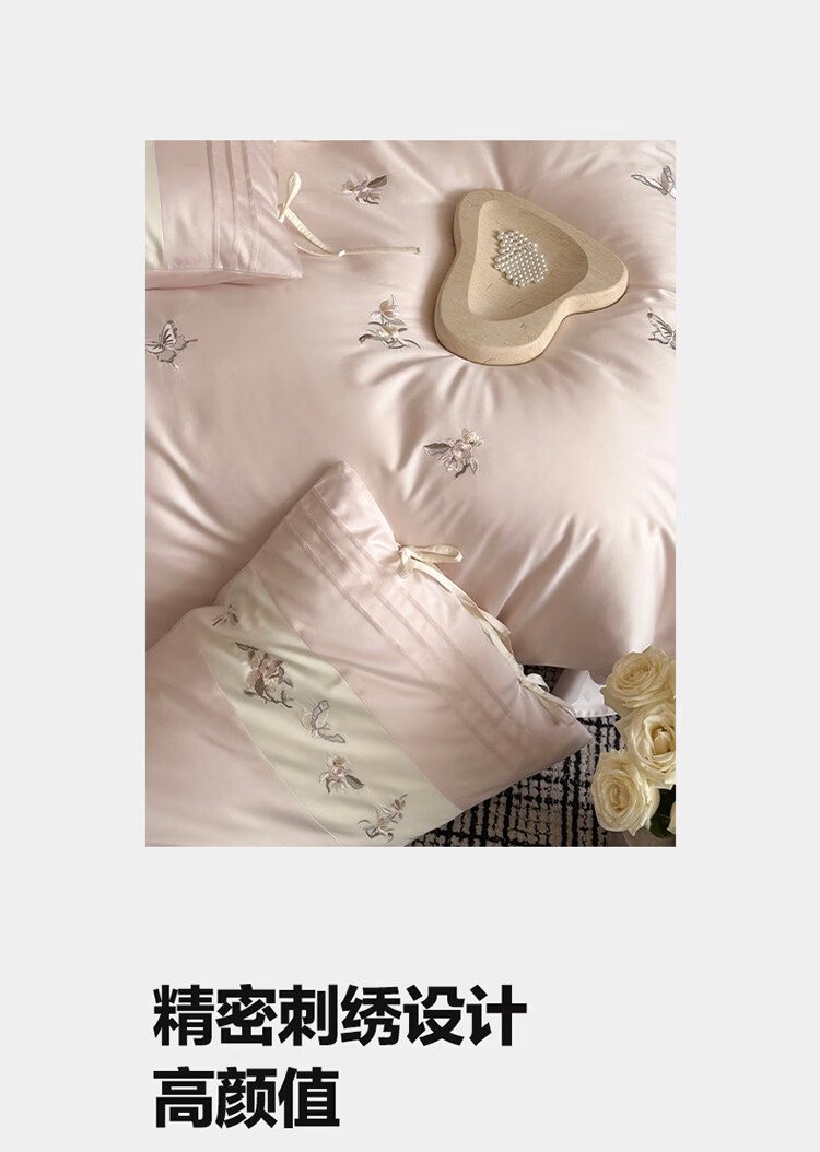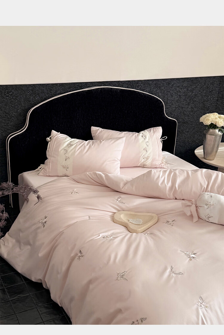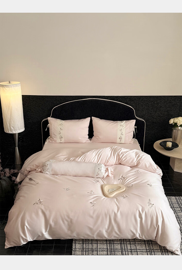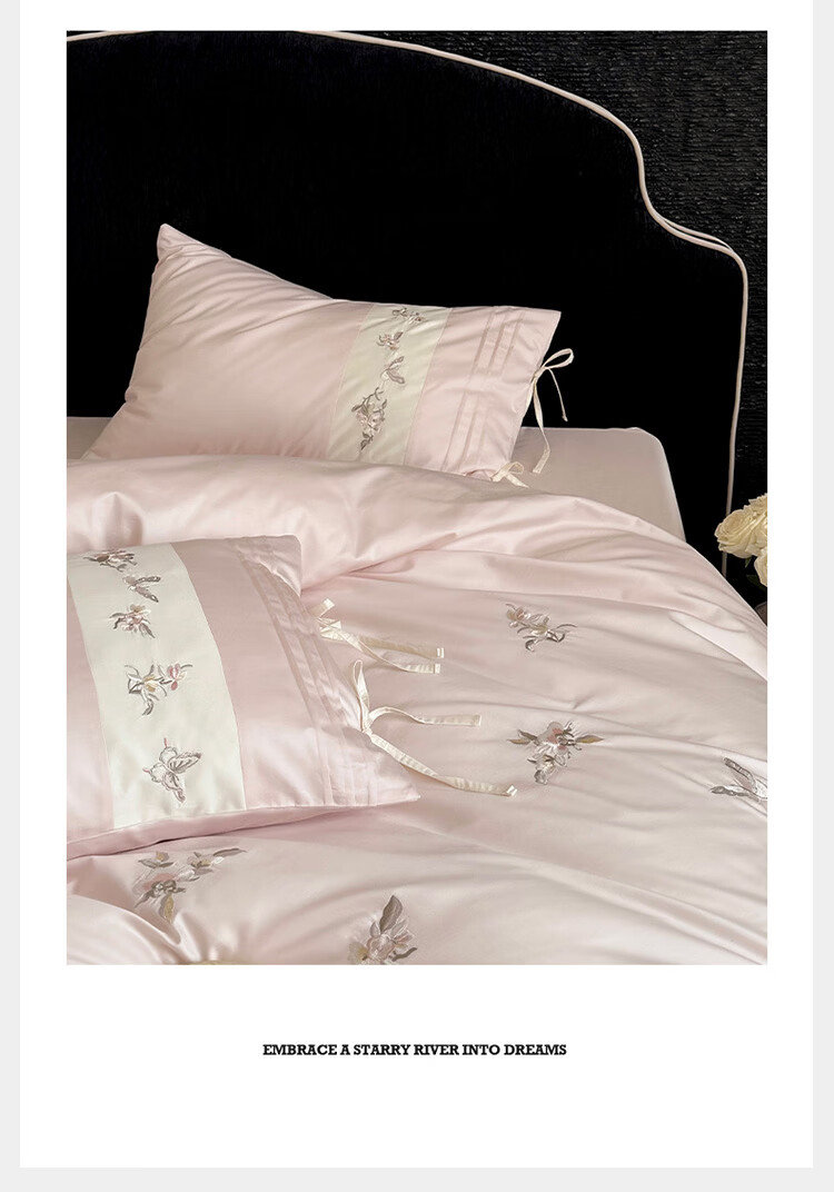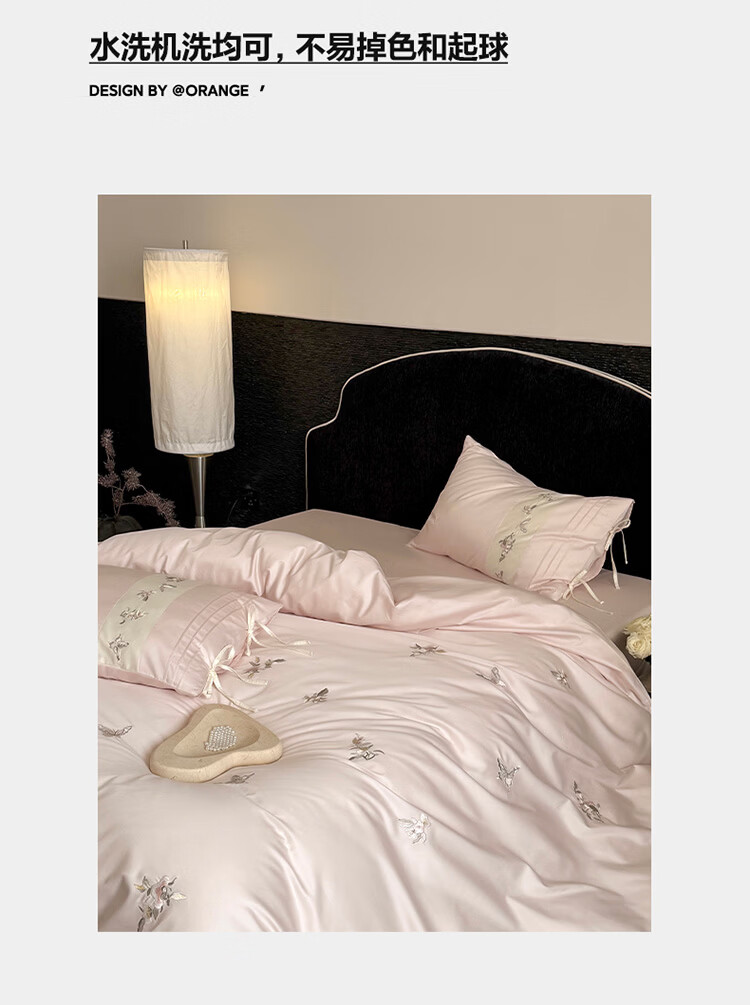 ROLAND LIVE春季新款长绒棉床上用品四件套精密刺绣全棉被套床单枕套三件套 LB 长绒棉刺绣套件-境花辞粉色 1.2米床 床单款 【被套150*200cm】