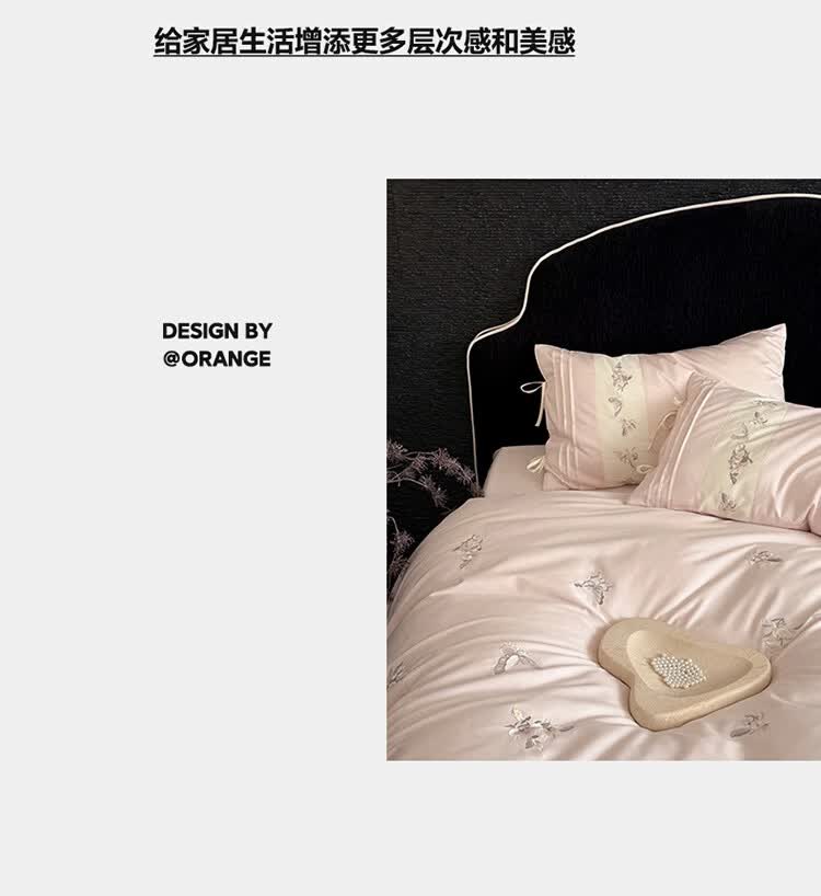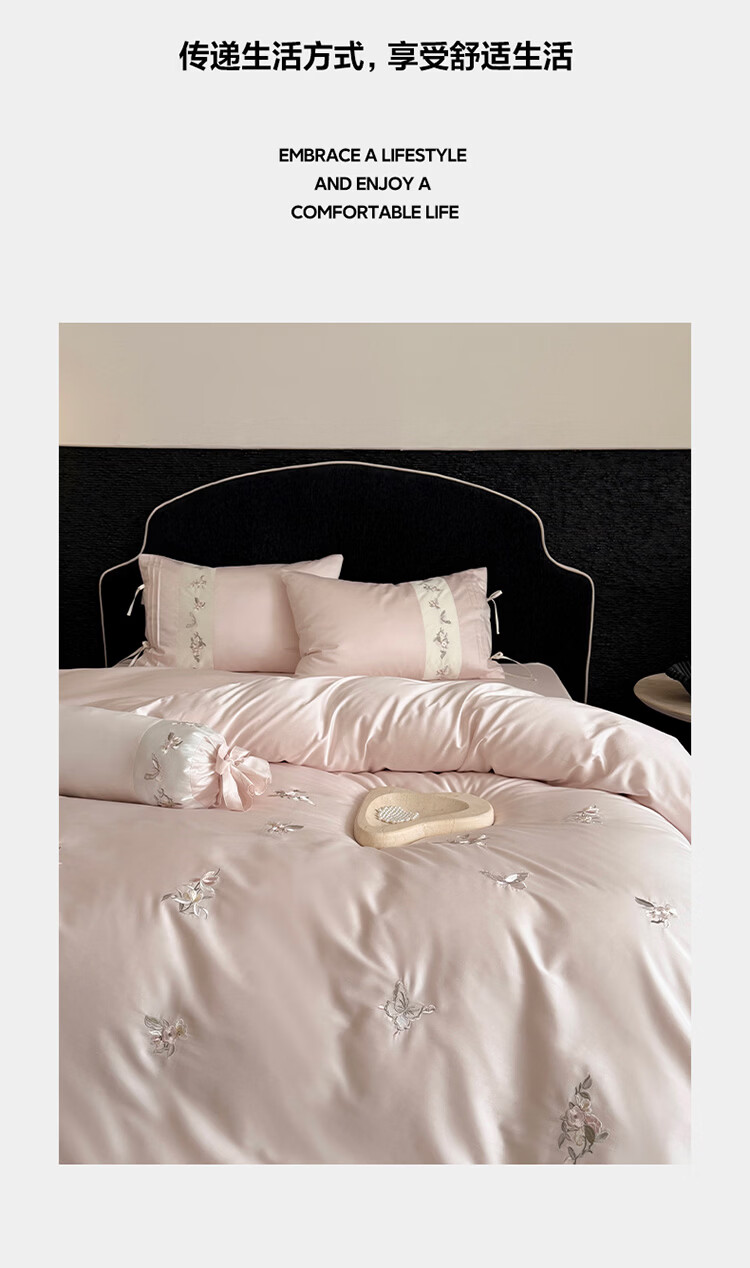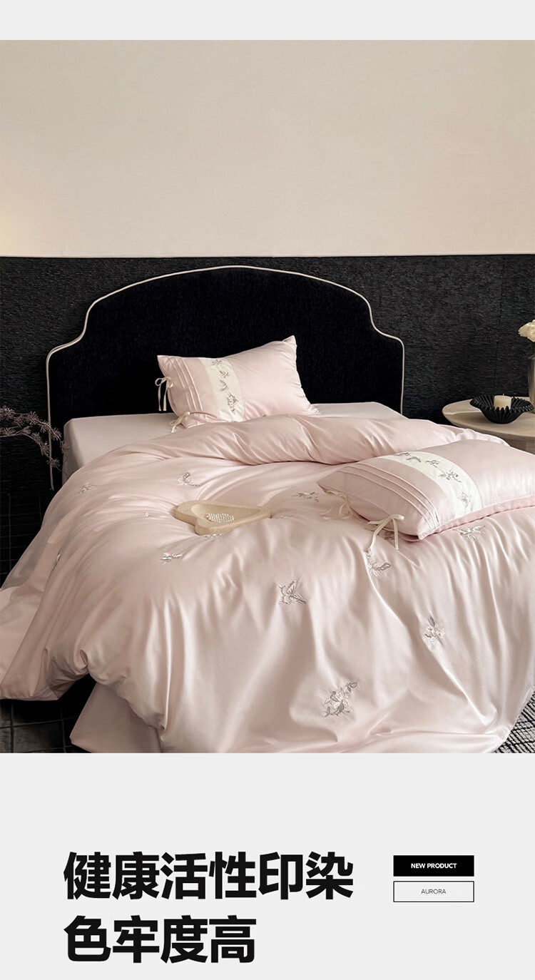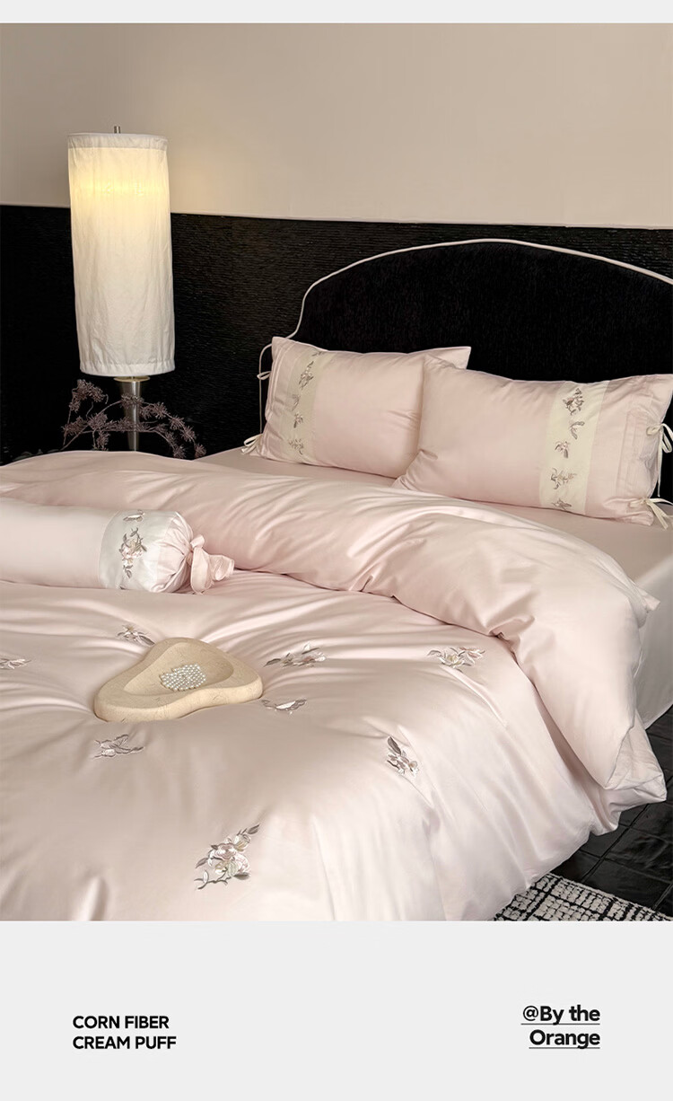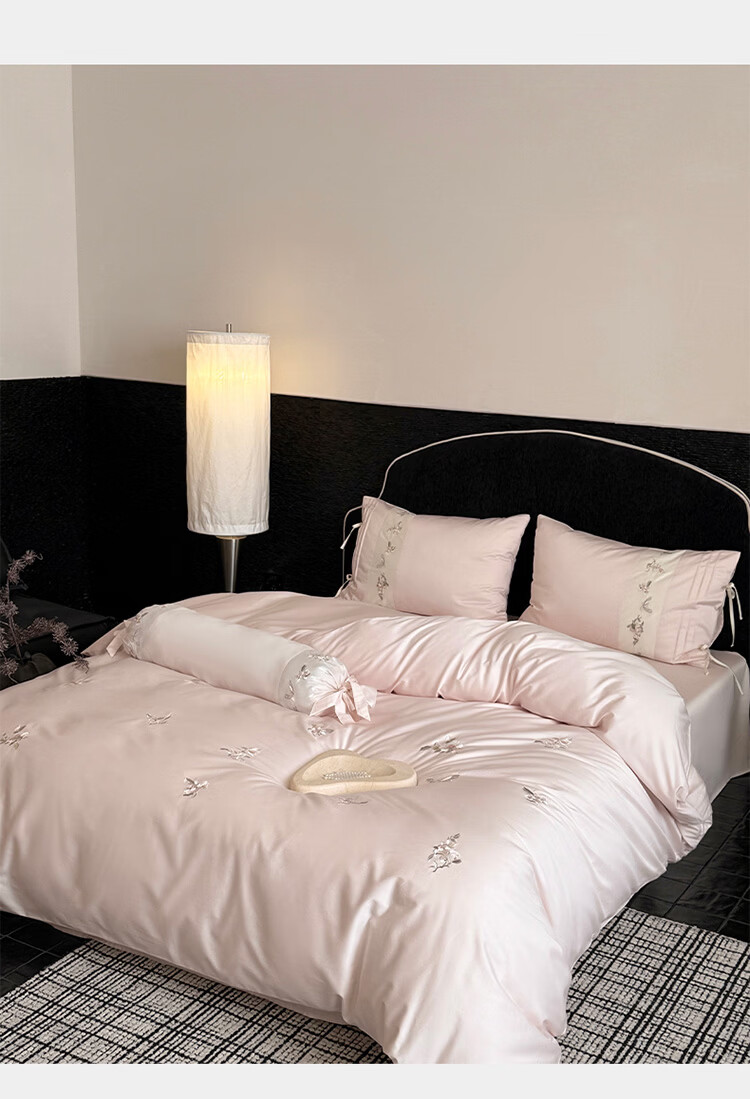 ROLAND LIVE春季新款长绒棉床上用品四件套精密刺绣全棉被套床单枕套三件套 LB 长绒棉刺绣套件-境花辞粉色 1.2米床 床单款 【被套150*200cm】